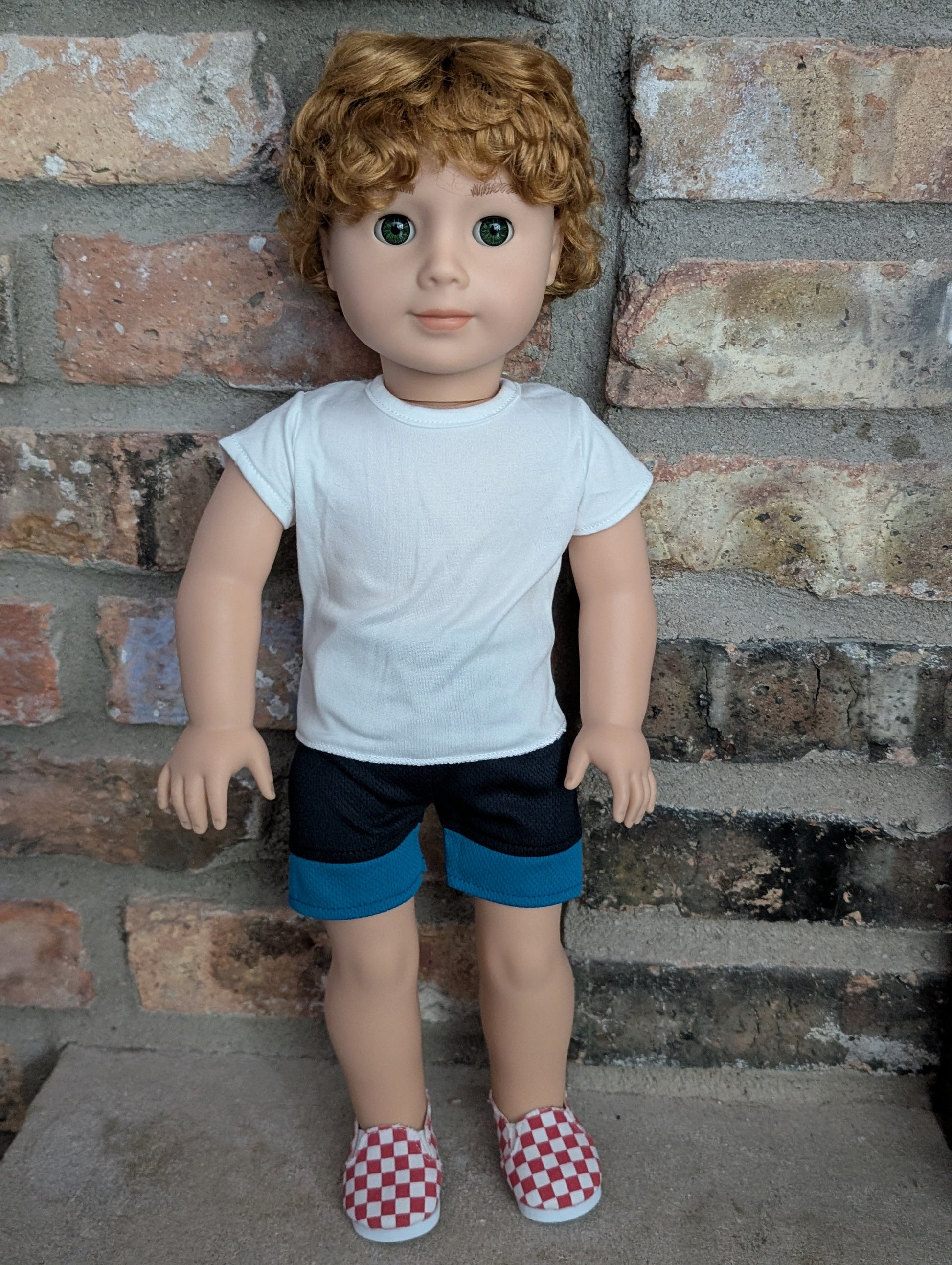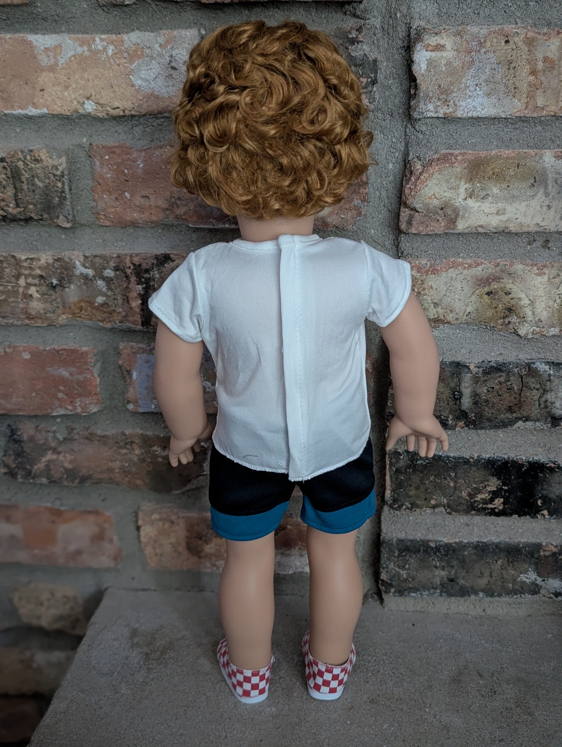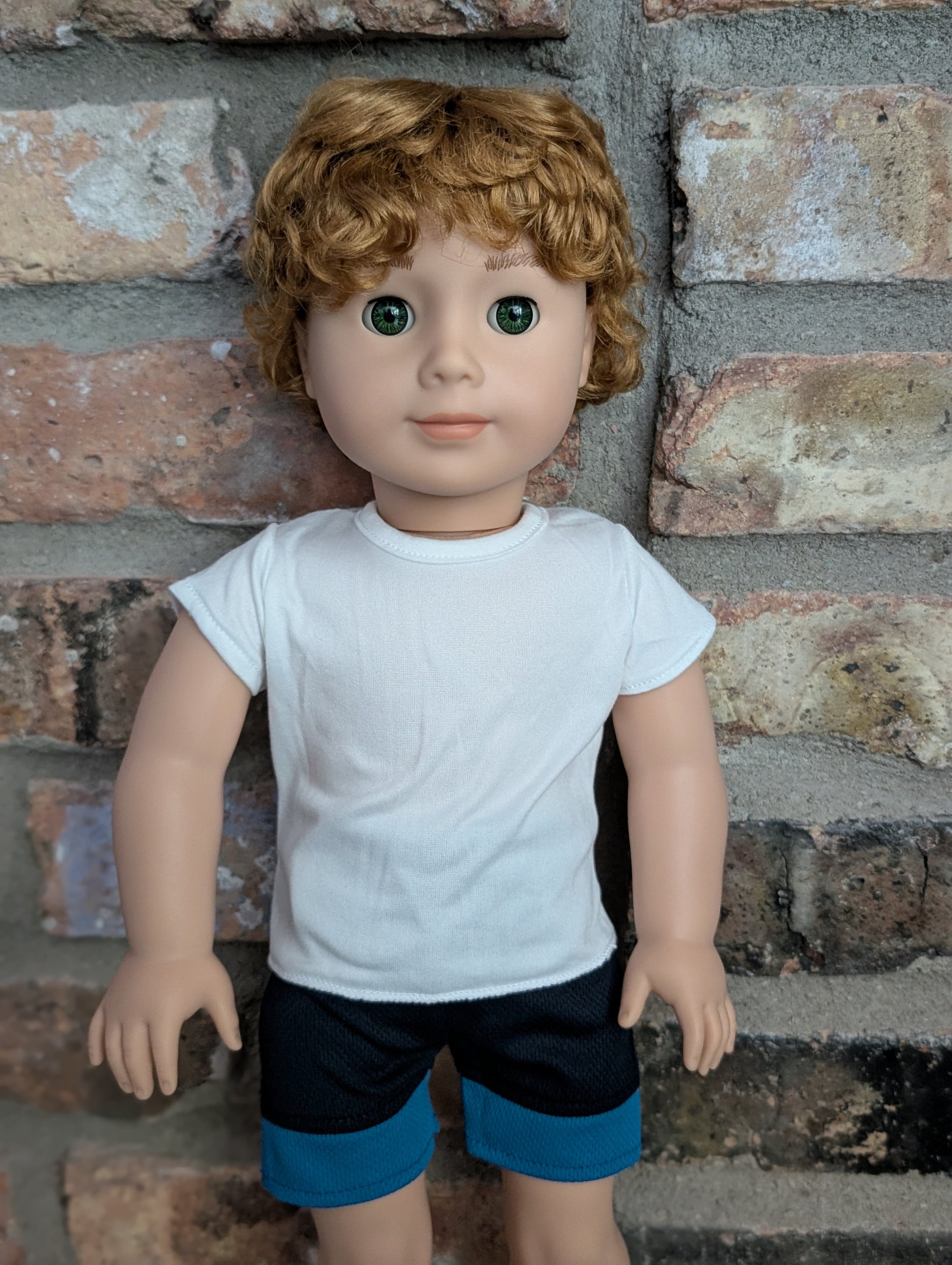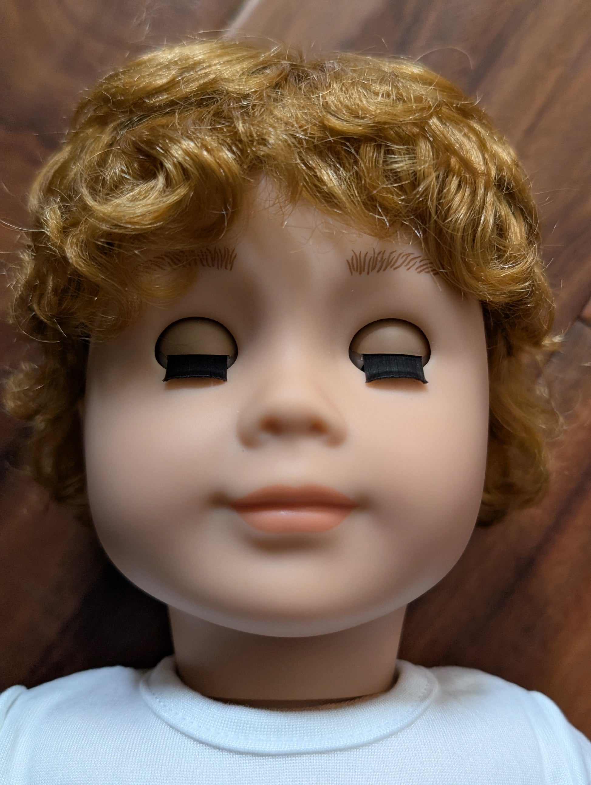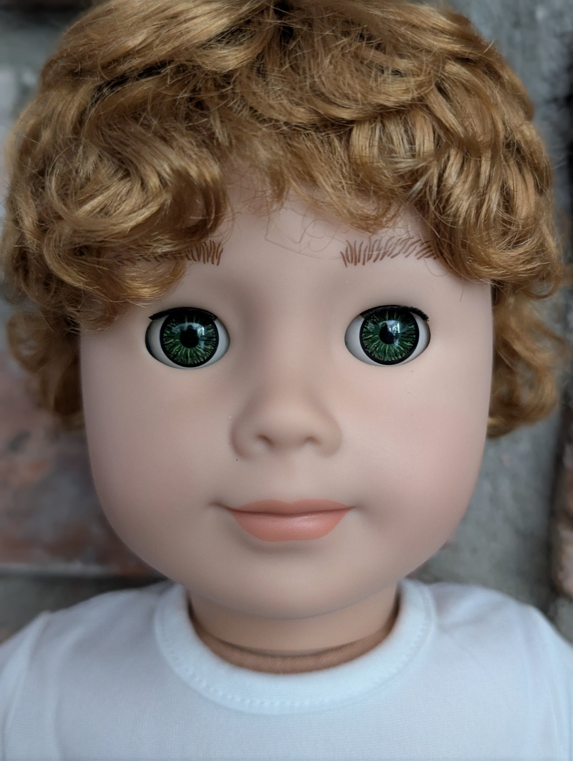 This one of a kind OOAK custom boy American Girl doll was created with a brand new doll, a red wig, and green from a BeForever Felicity. He may have some minor shine marks from handling. He comes with the outfit pictured.