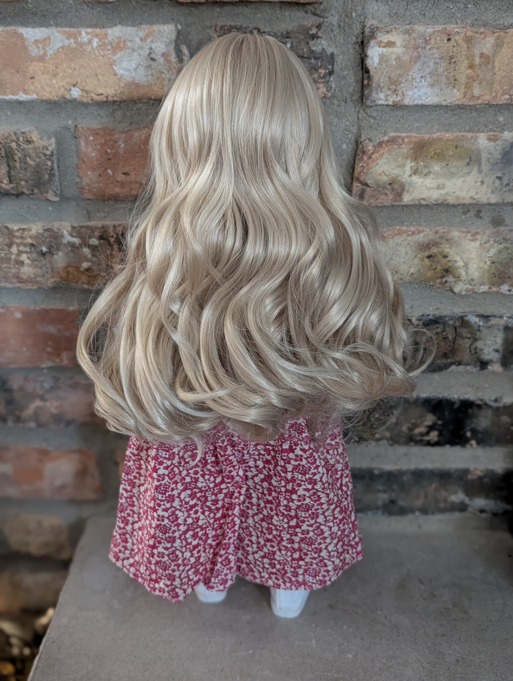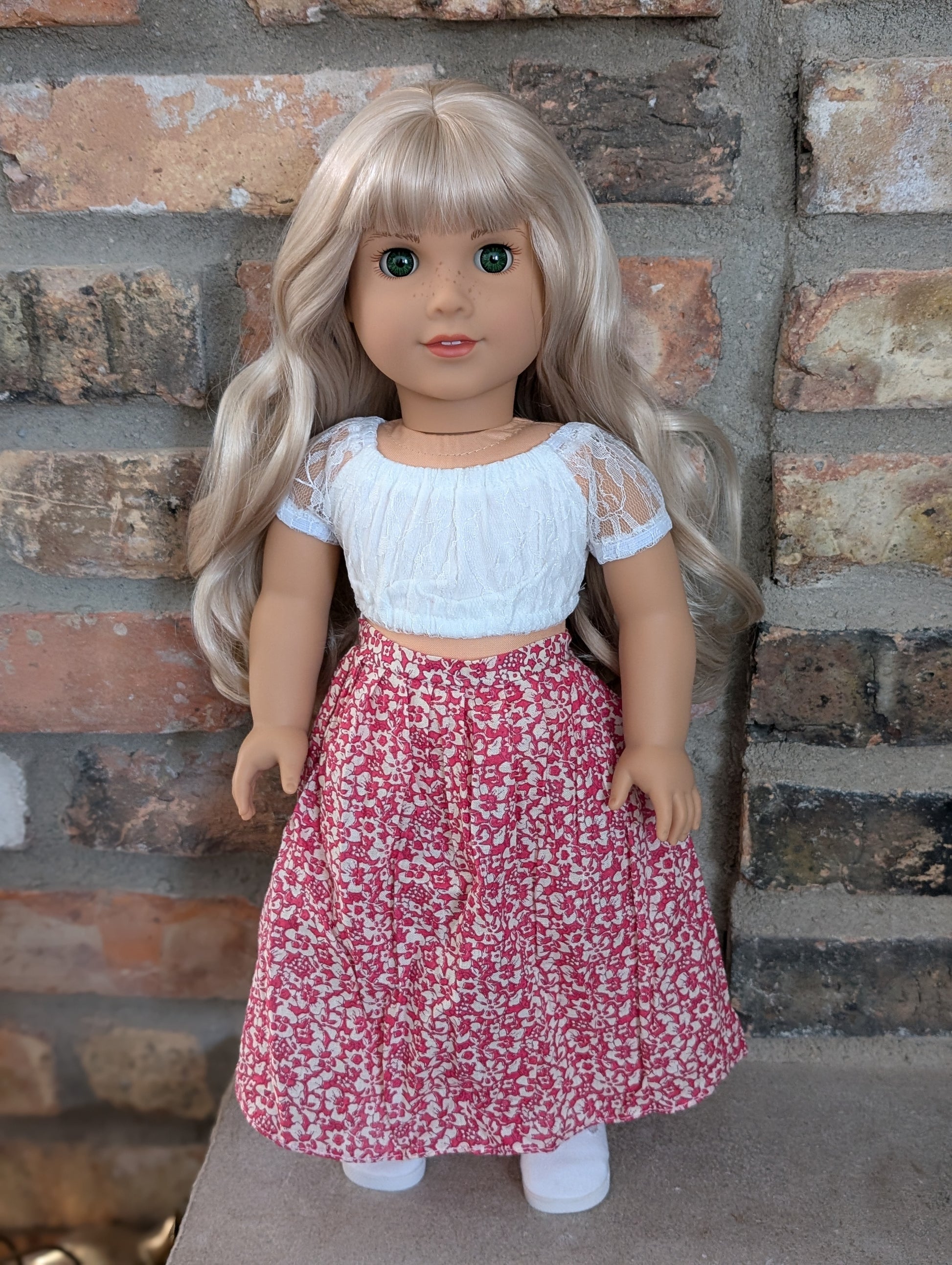 This one of a kind OOAK custom American Girl doll was created with a brand new doll, a blonde wig, and green eyes from a BeForever Felicity doll. She has freckles that were hand painted and sealed. She may have some minor shine marks from handling. She comes with the outfit pictured.