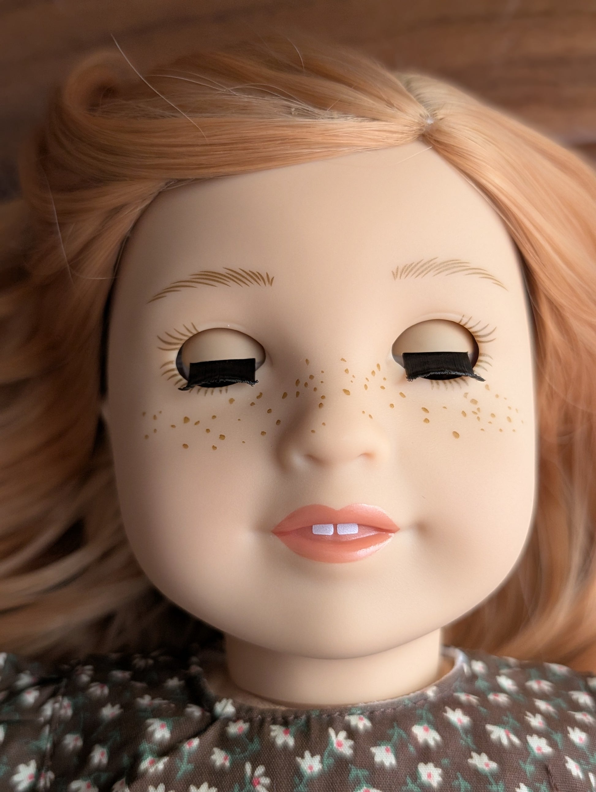 Agnes - light red hair, brown eyes, lightest skin tone, Jess face mold, freckles
