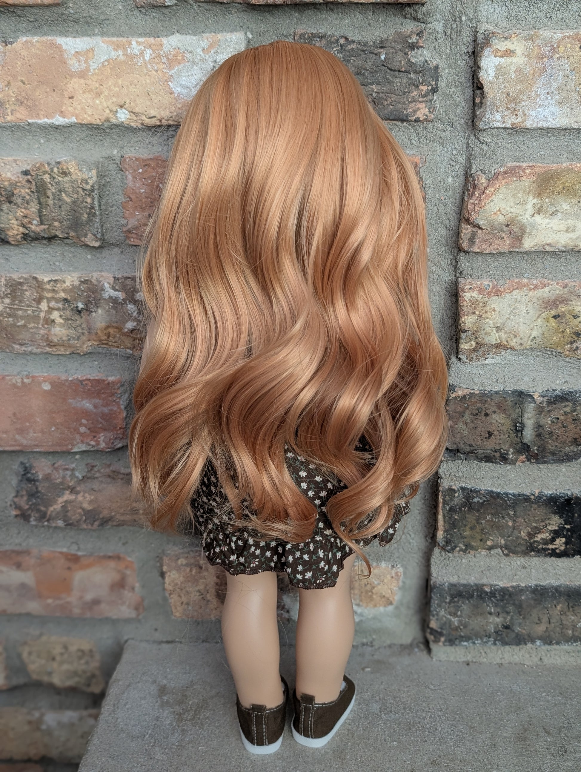 This one of a kind OOAK custom American Girl doll was created with a brand new doll, a light red wig, and brown eyes. She has lip gloss that was hand painted and sealed. She may have some minor shine marks from handling. She comes with the outfit pictured.