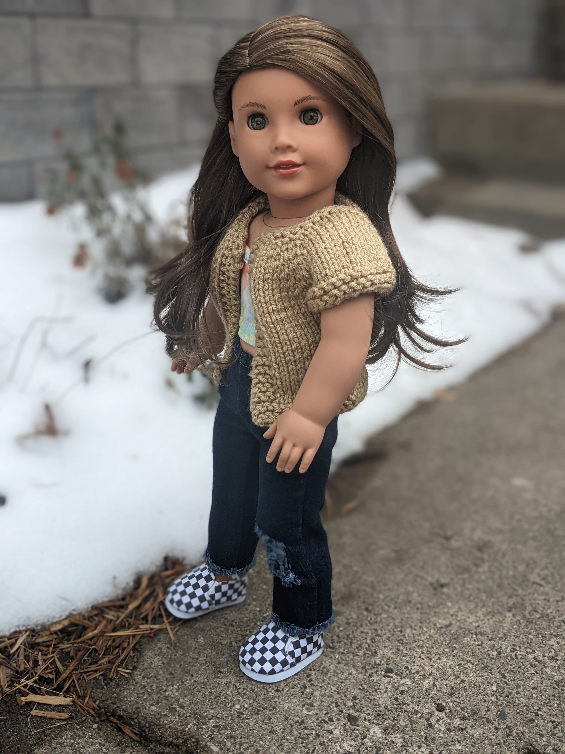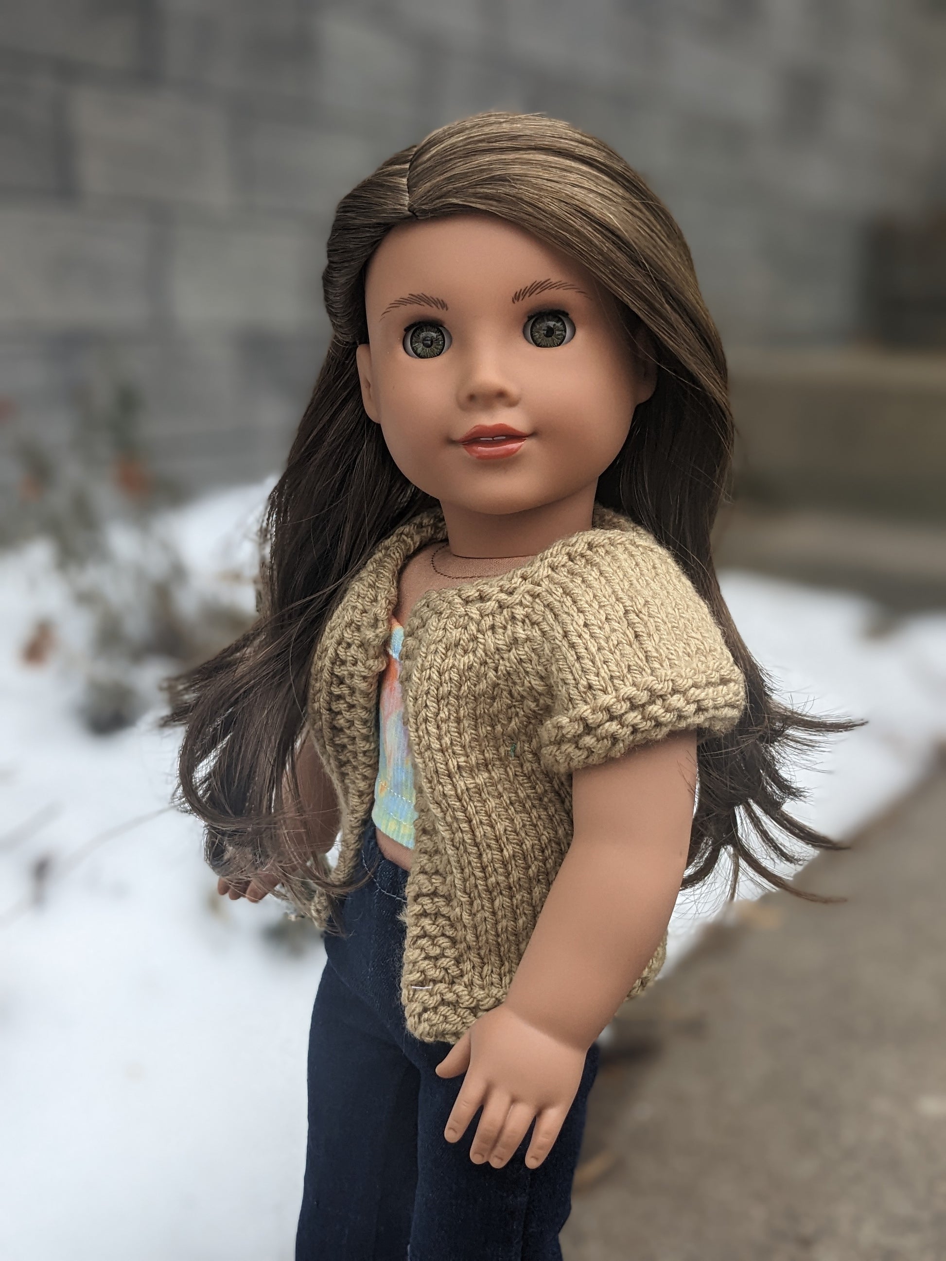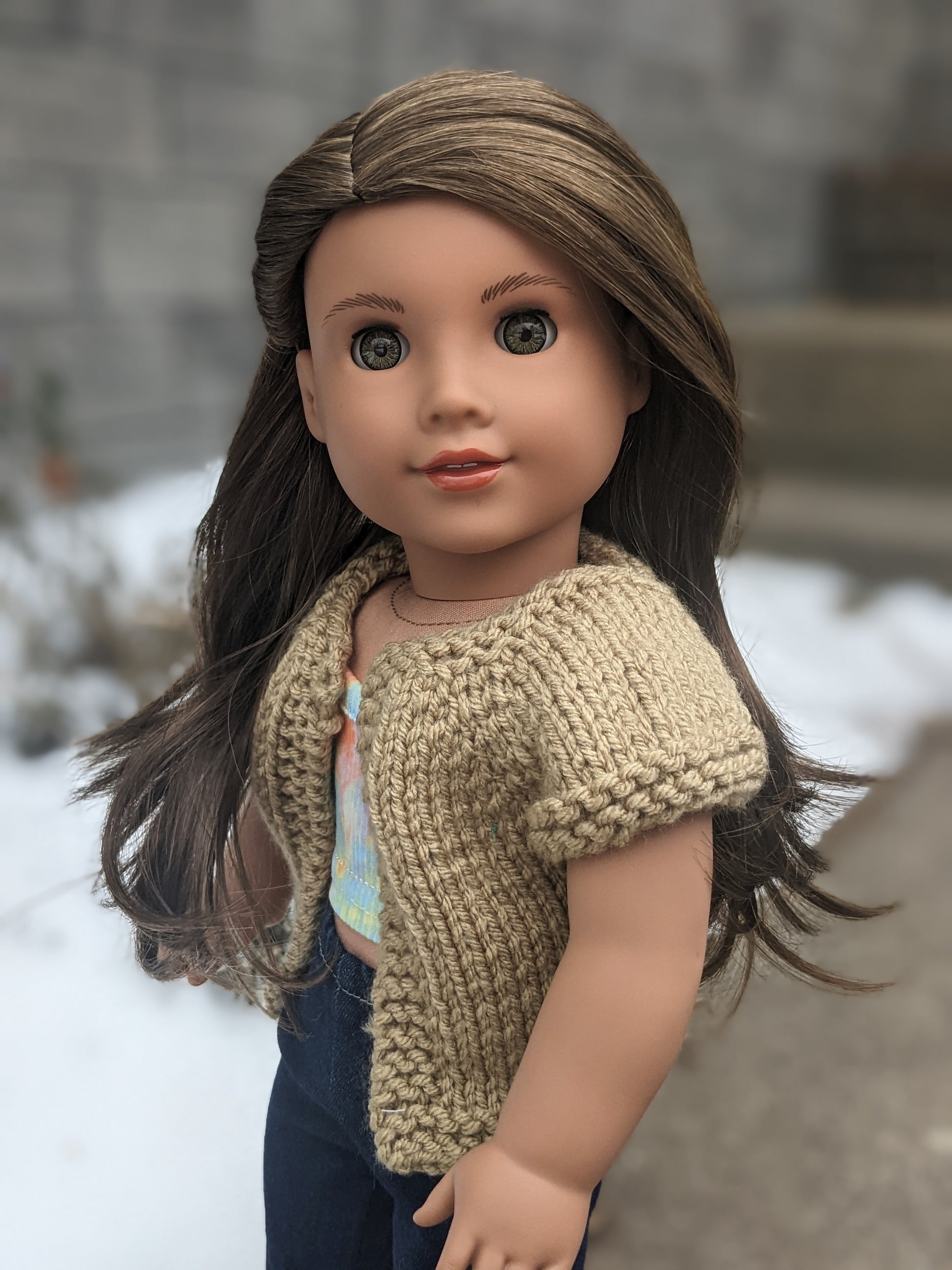 This one of a kind OOAK custom American Girl doll was created with a brand new Maritza doll, a brown wig from a new Joss doll, and light hazel eyes. She has lip gloss that was hand painted and sealed. She may have some minor shine marks from handling. She comes with the outfit pictured. Her painted on eyelashes have been removed.