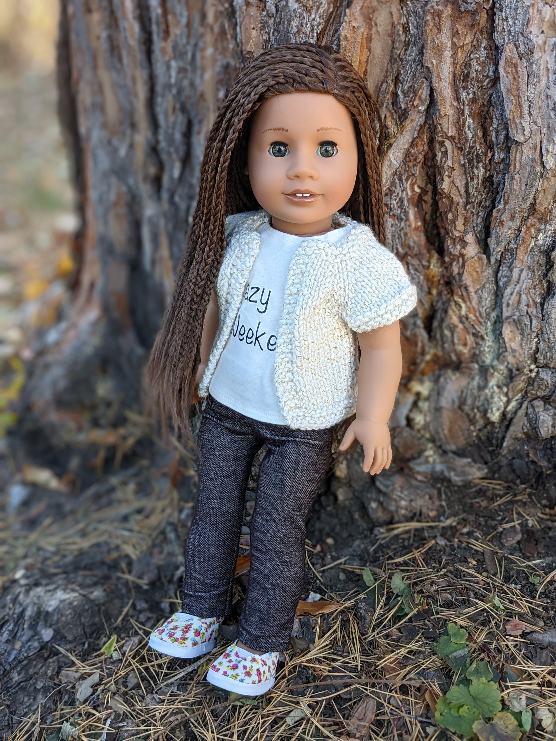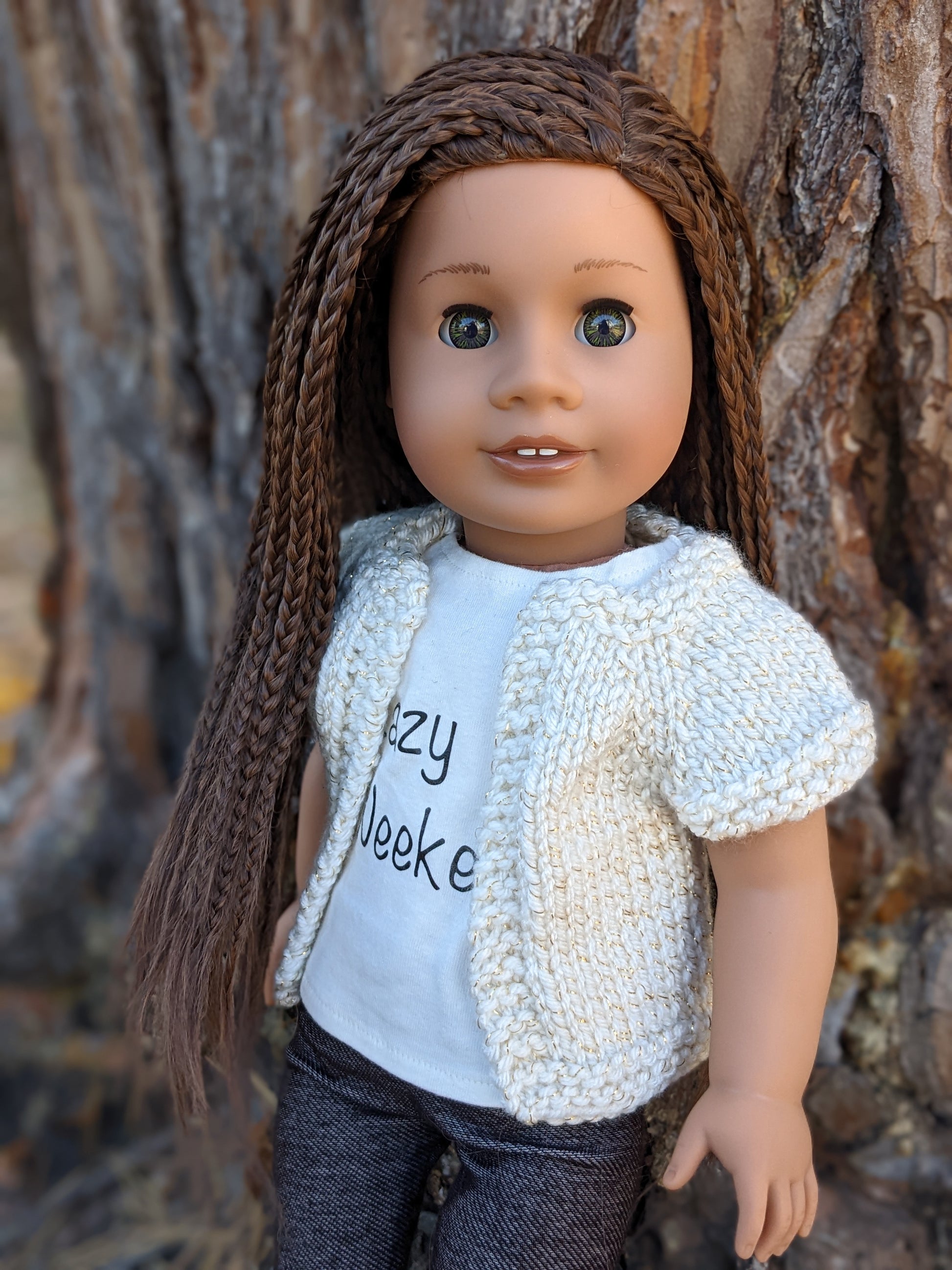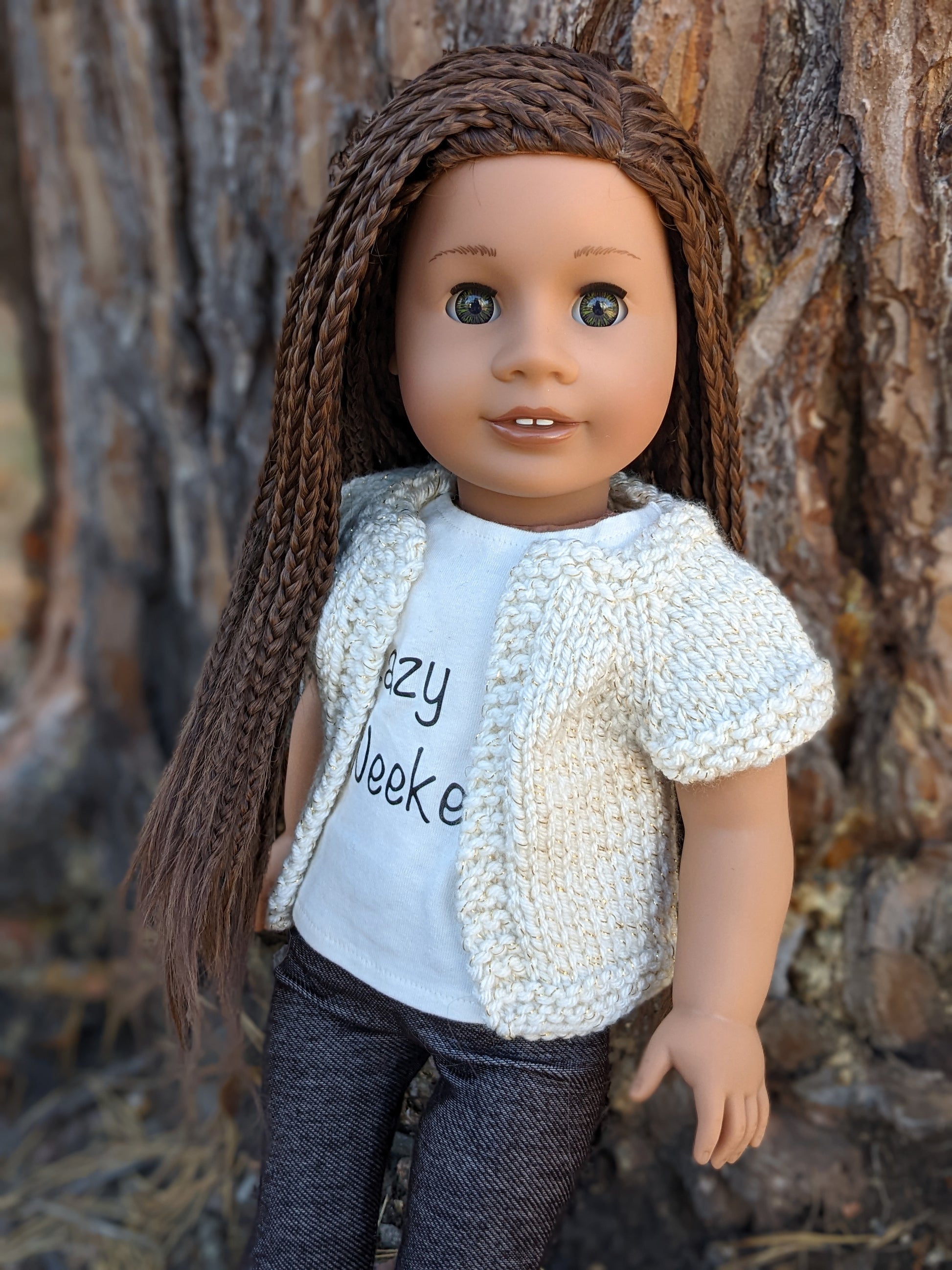 This one of a kind OOAK custom American Girl doll was created with a brand new Truly Me 26 doll, a brown braided wig, and hazel eyes. She has lip gloss that was hand painted and sealed. She may have some minor shine marks from handling. She comes with the outfit pictured. She has the microfiber cloth body with permapanties and a tiny x on her bum.