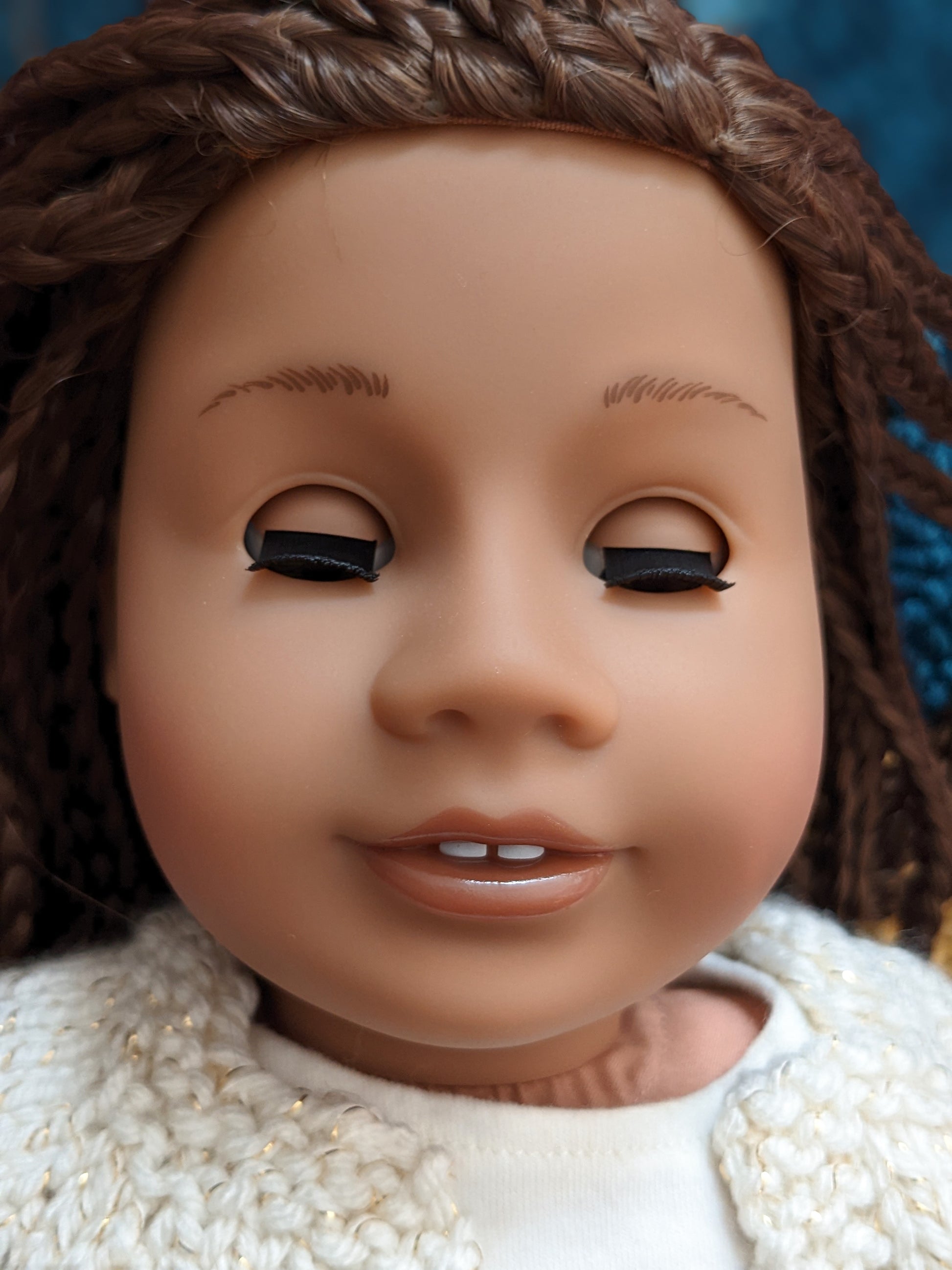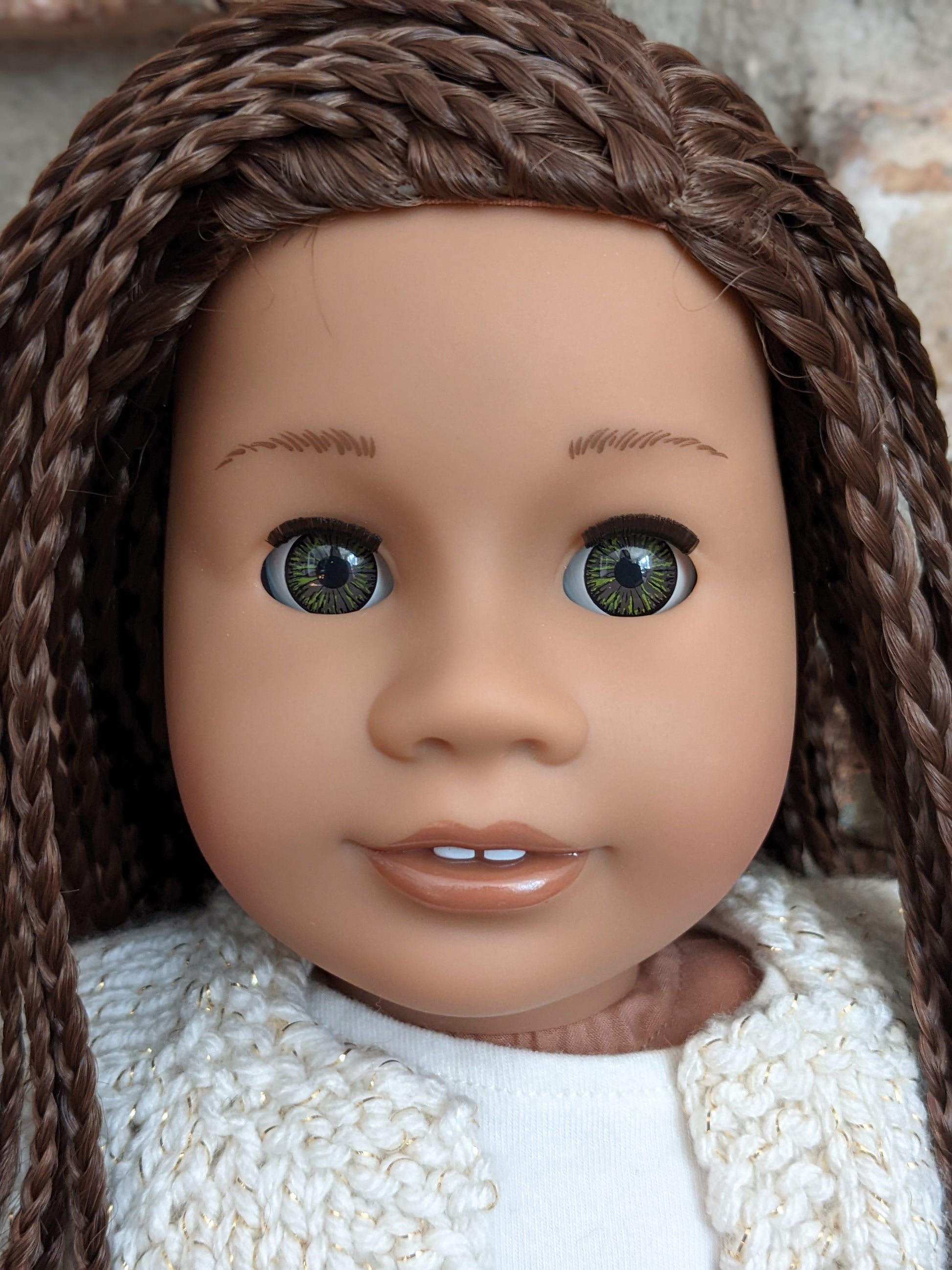 Amina - brown braided hair, hazel eyes, medium skin tone, Addy face mold