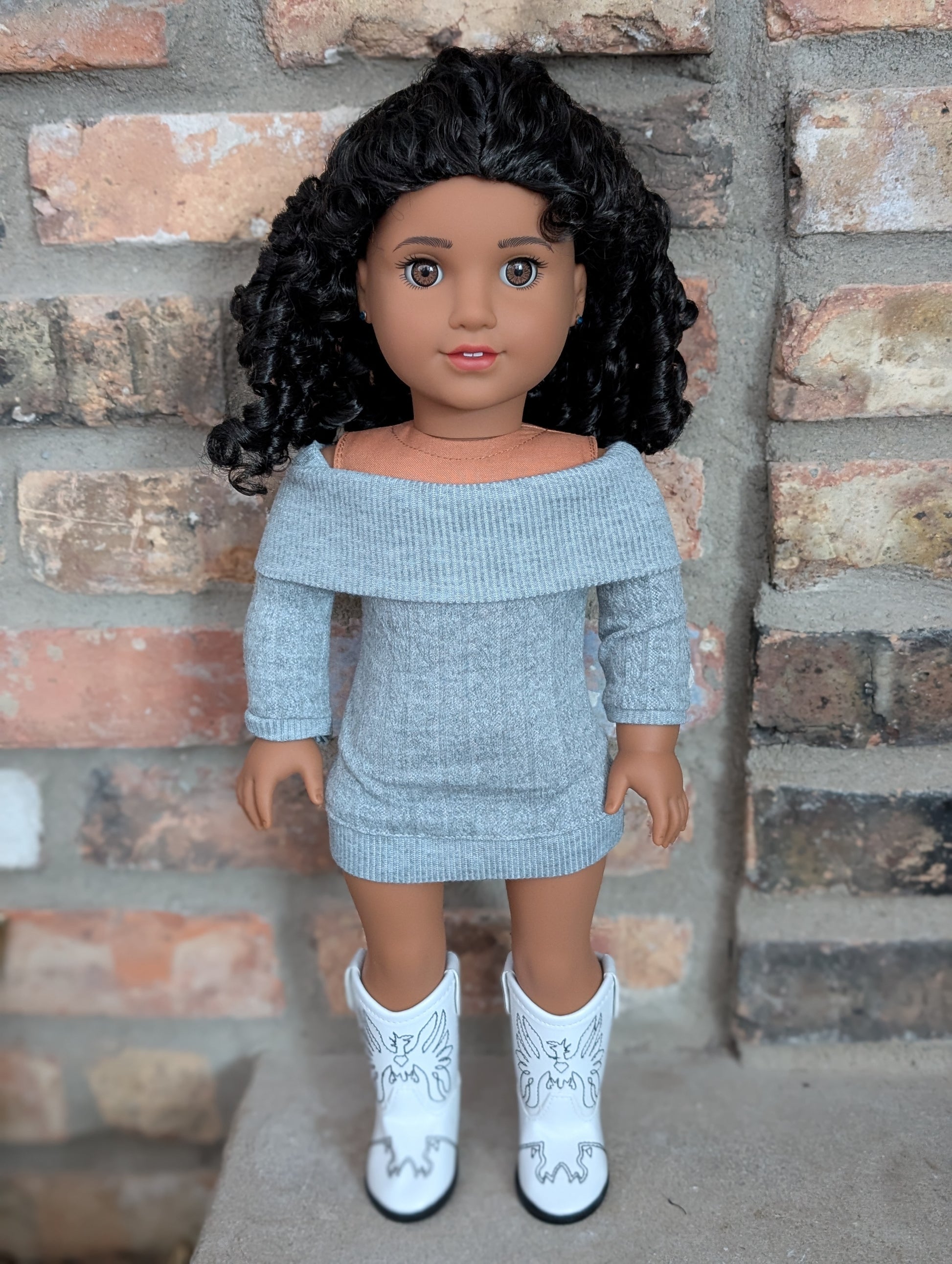 Andie - black hair, light brown eyes, medium dark skin tone, Josefina face mold