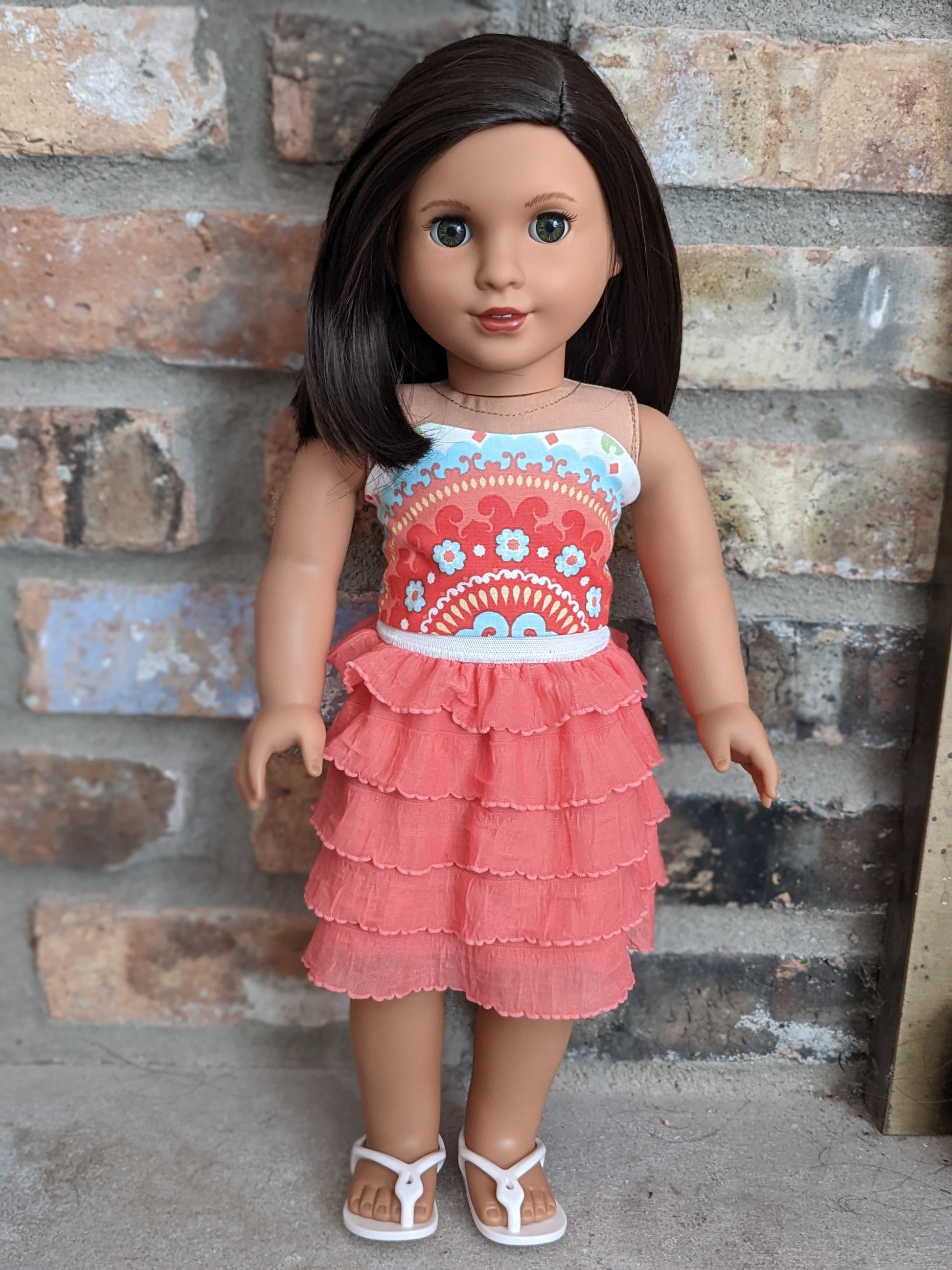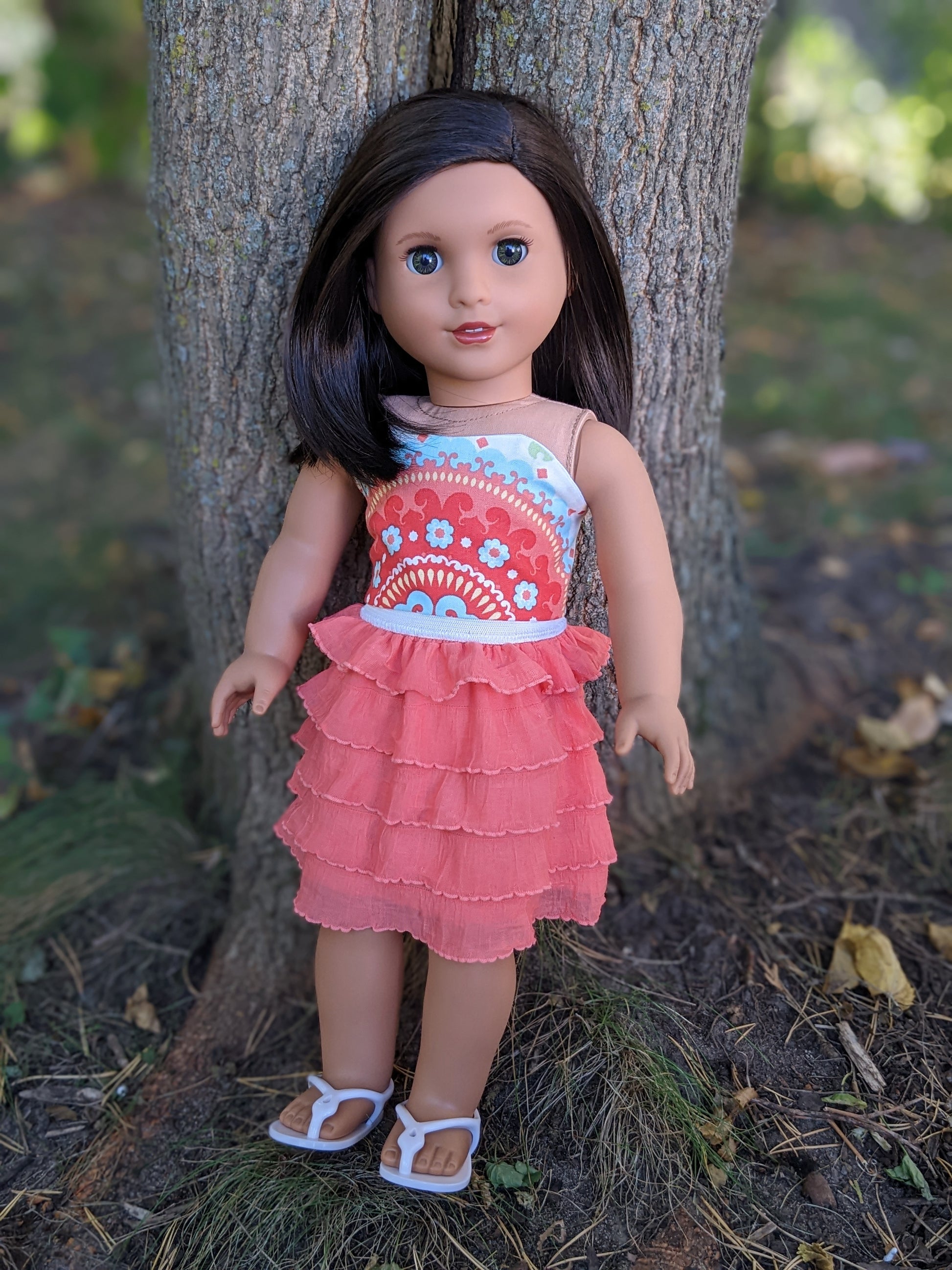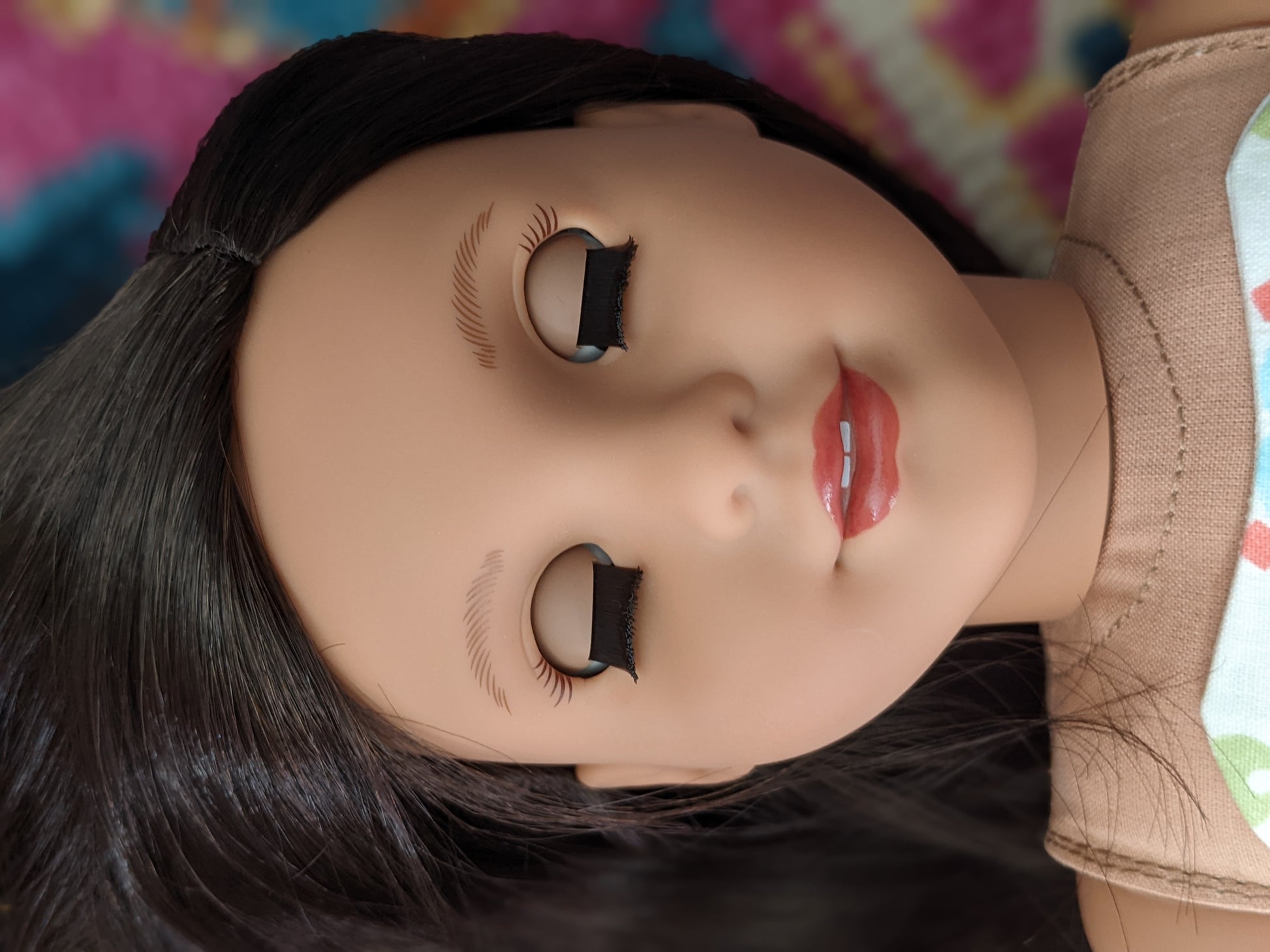 This one of a kind OOAK custom American Girl doll was created with a brand new Truly Me doll, a dark brown black wig, and hazel eyes. She has lip gloss that was hand painted and sealed. She may have some minor shine marks from handling. She comes with the outfit pictured. Her bottom painted on eyelashes have been removed.