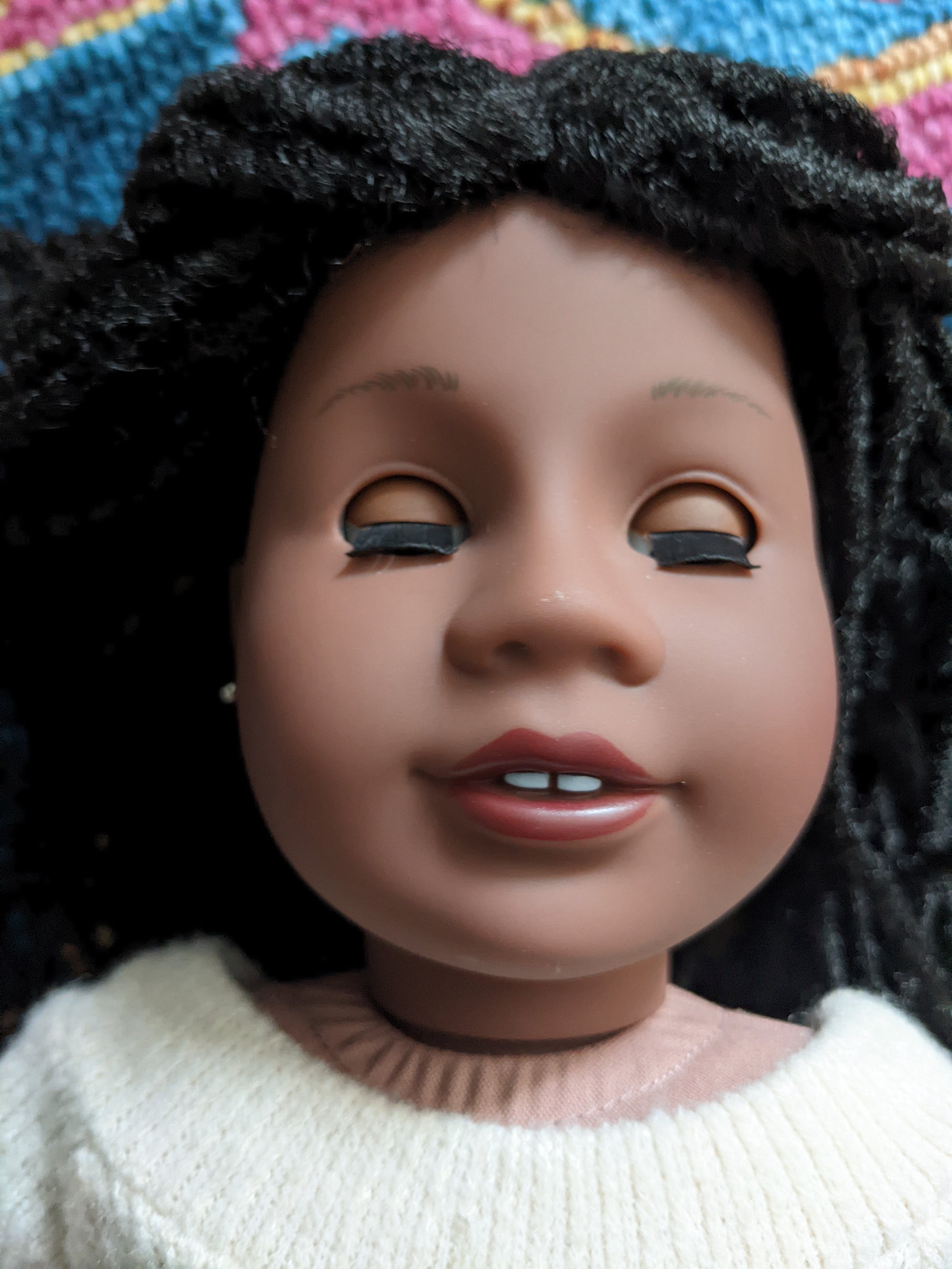 Brandy - black hair, hazel eyes, dark skin tone, Addy face mold
