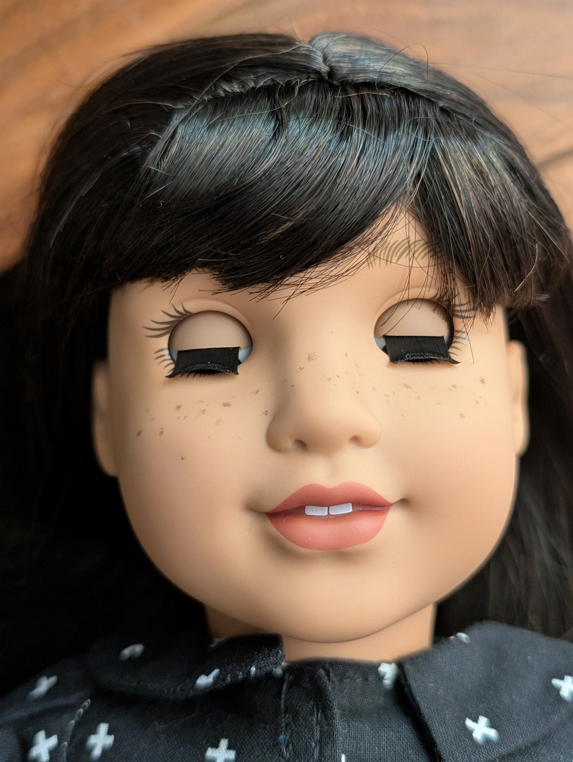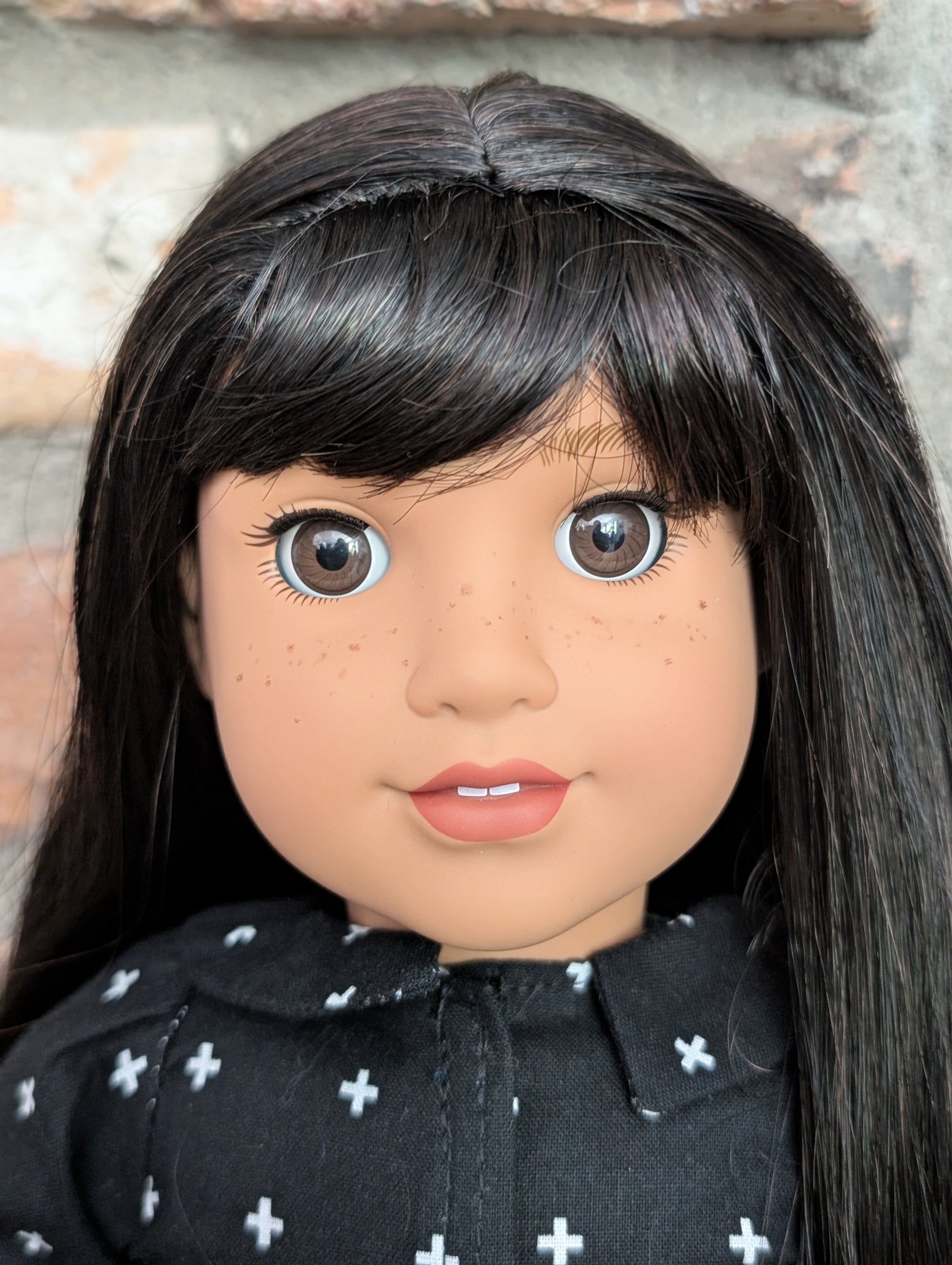 Demetria - black hair, brown eyes, medium skin tone, Josefina face mold, freckles