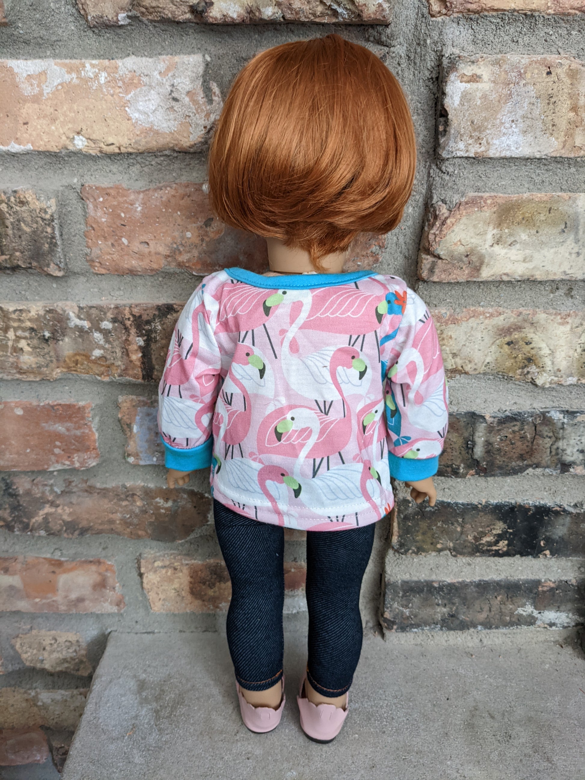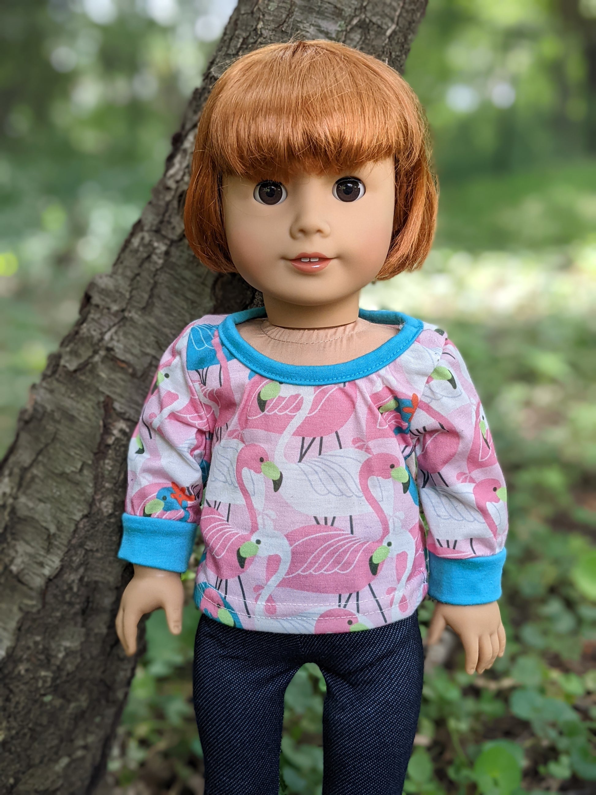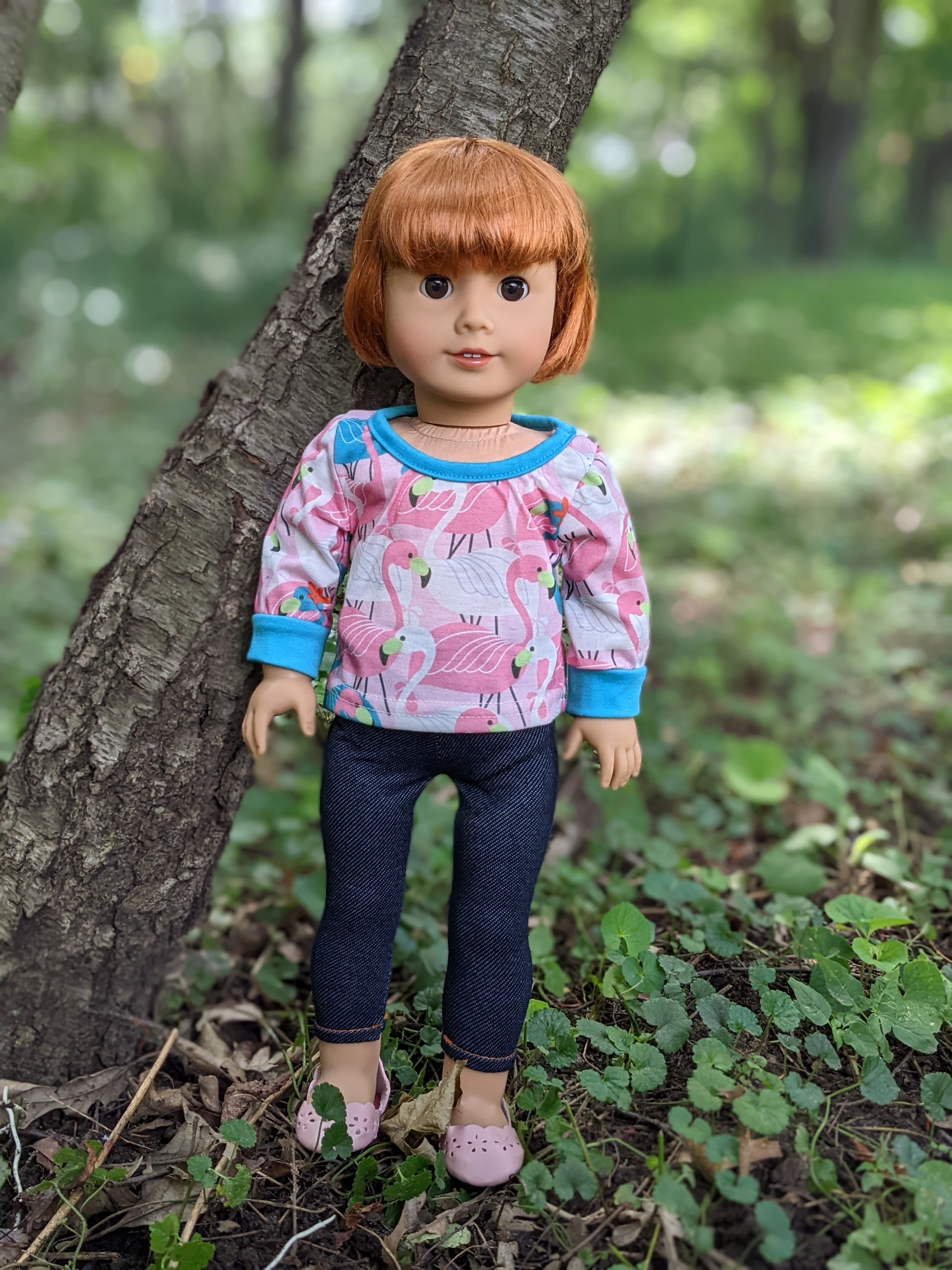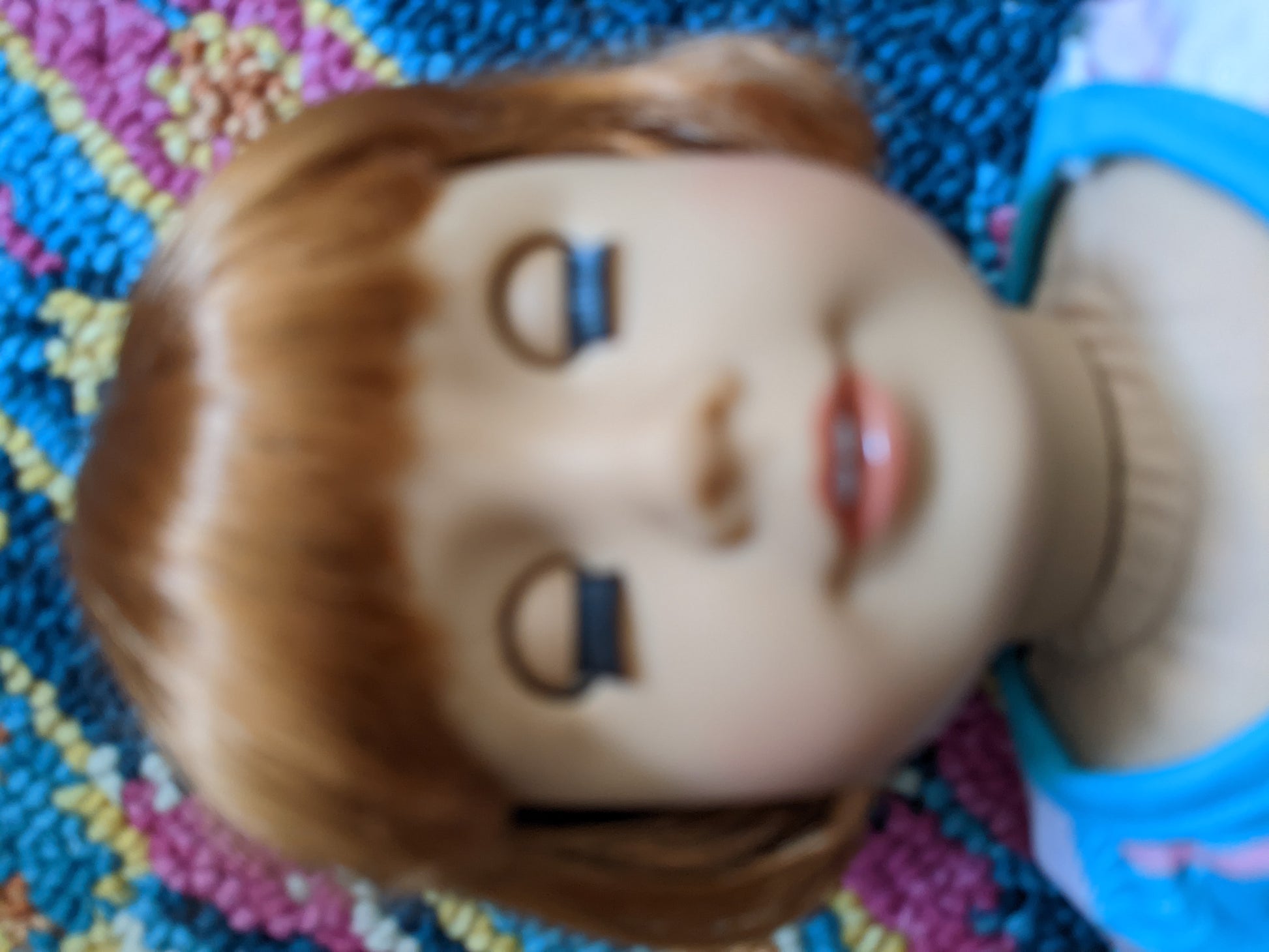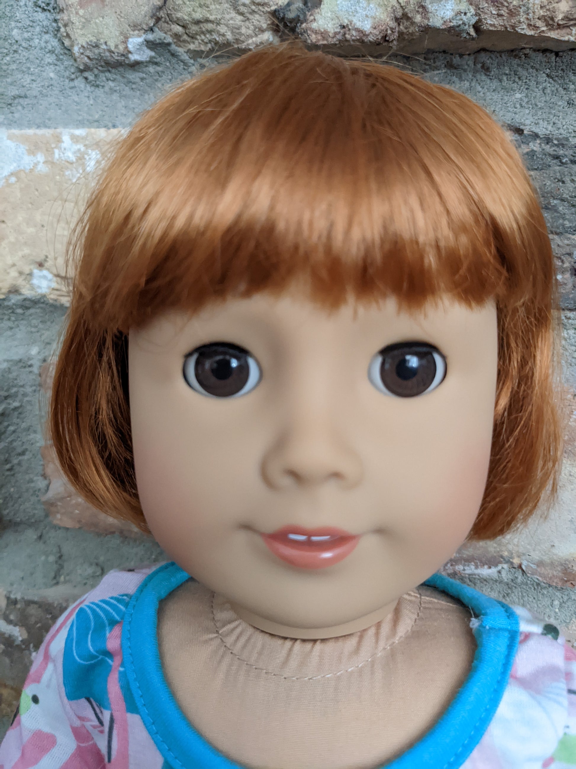 This one of a kind OOAK custom American Girl doll was created with a new Truly Me doll, a red vegan mohair wig, and brown eyes. She has lip gloss that was hand painted and sealed. She may have some minor shine marks from handling. She comes with the outfit pictured. She has a microfiber cloth body with permapanties and a tiny x on her bum.