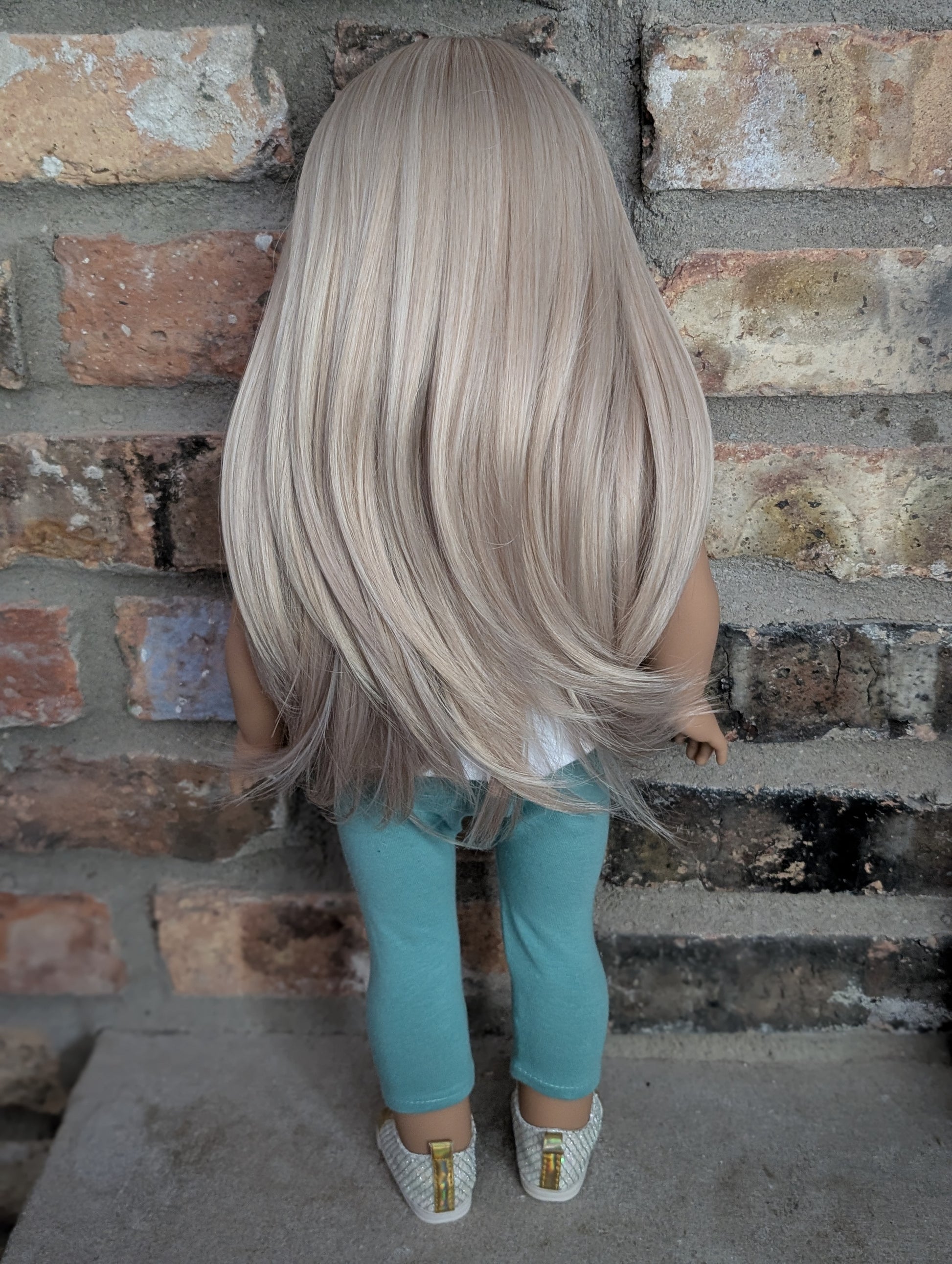 This one of a kind OOAK custom American Girl doll was created with a brand new doll, a blonde wig, and grey eyes. She has lip gloss that was hand painted and sealed. She may have some minor shine marks from handling. She comes with the outfit pictured.