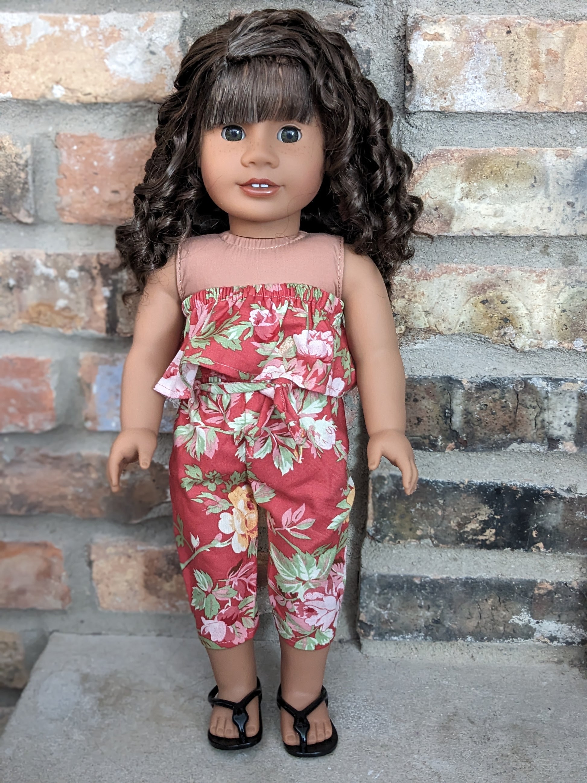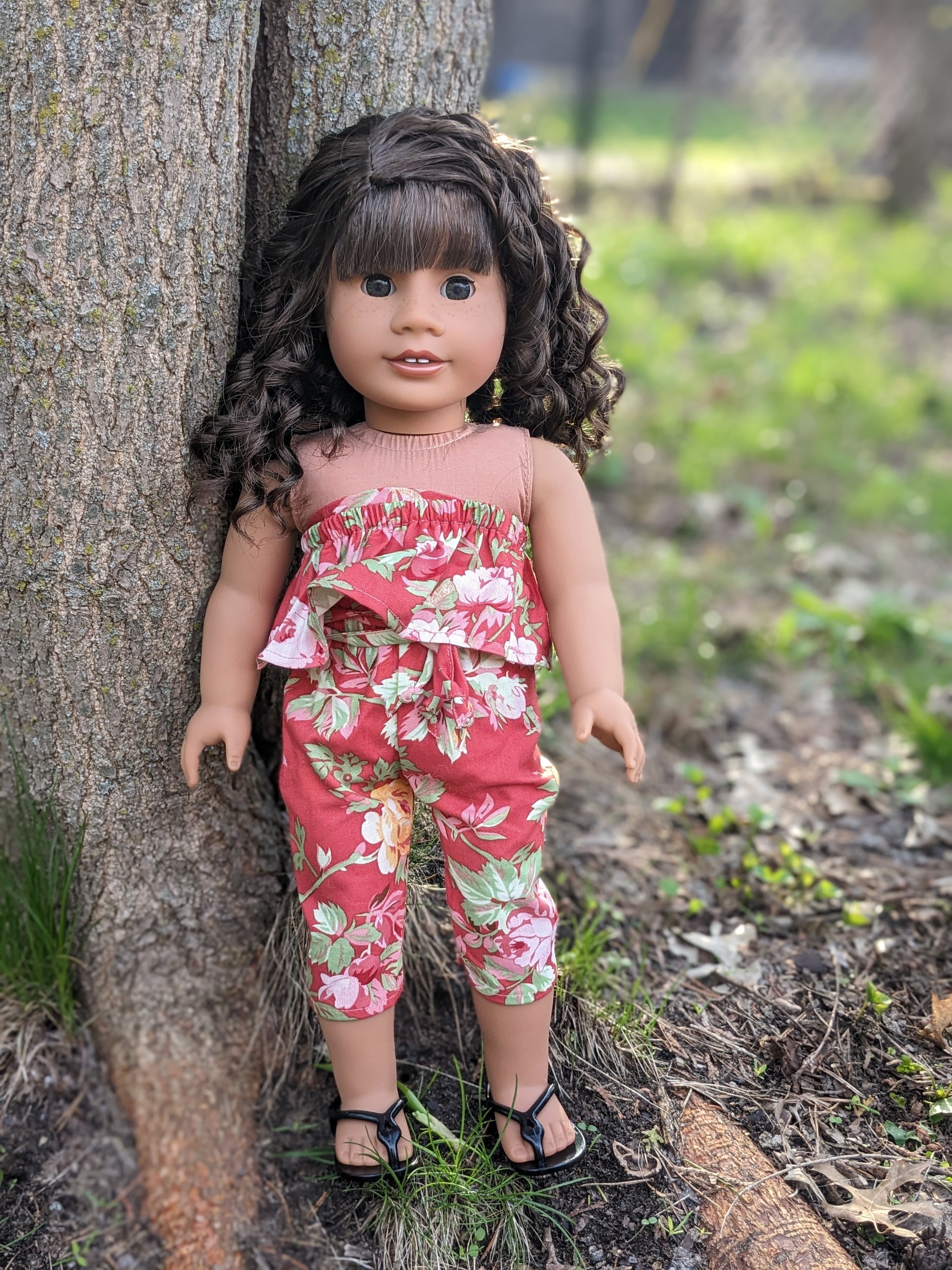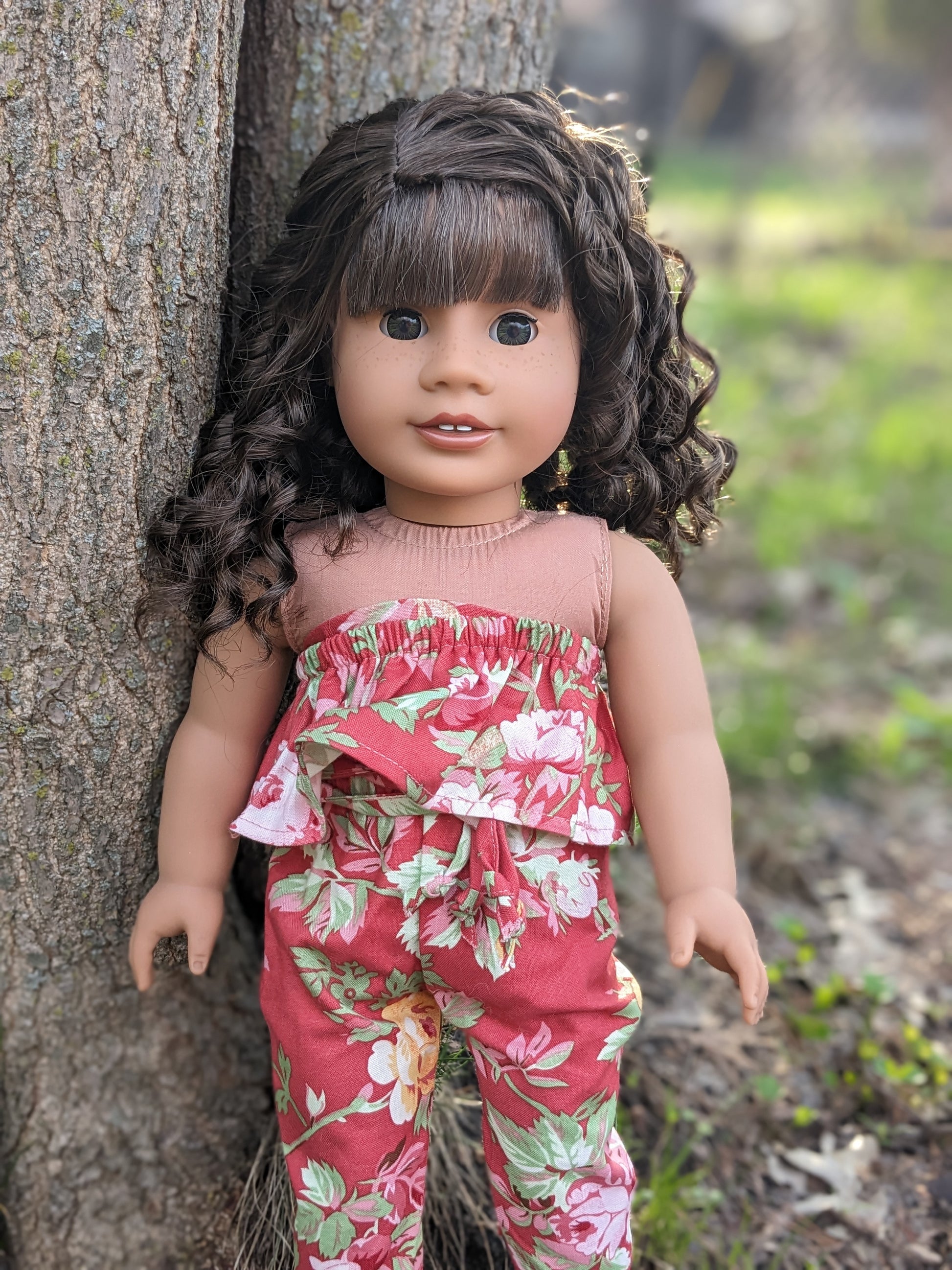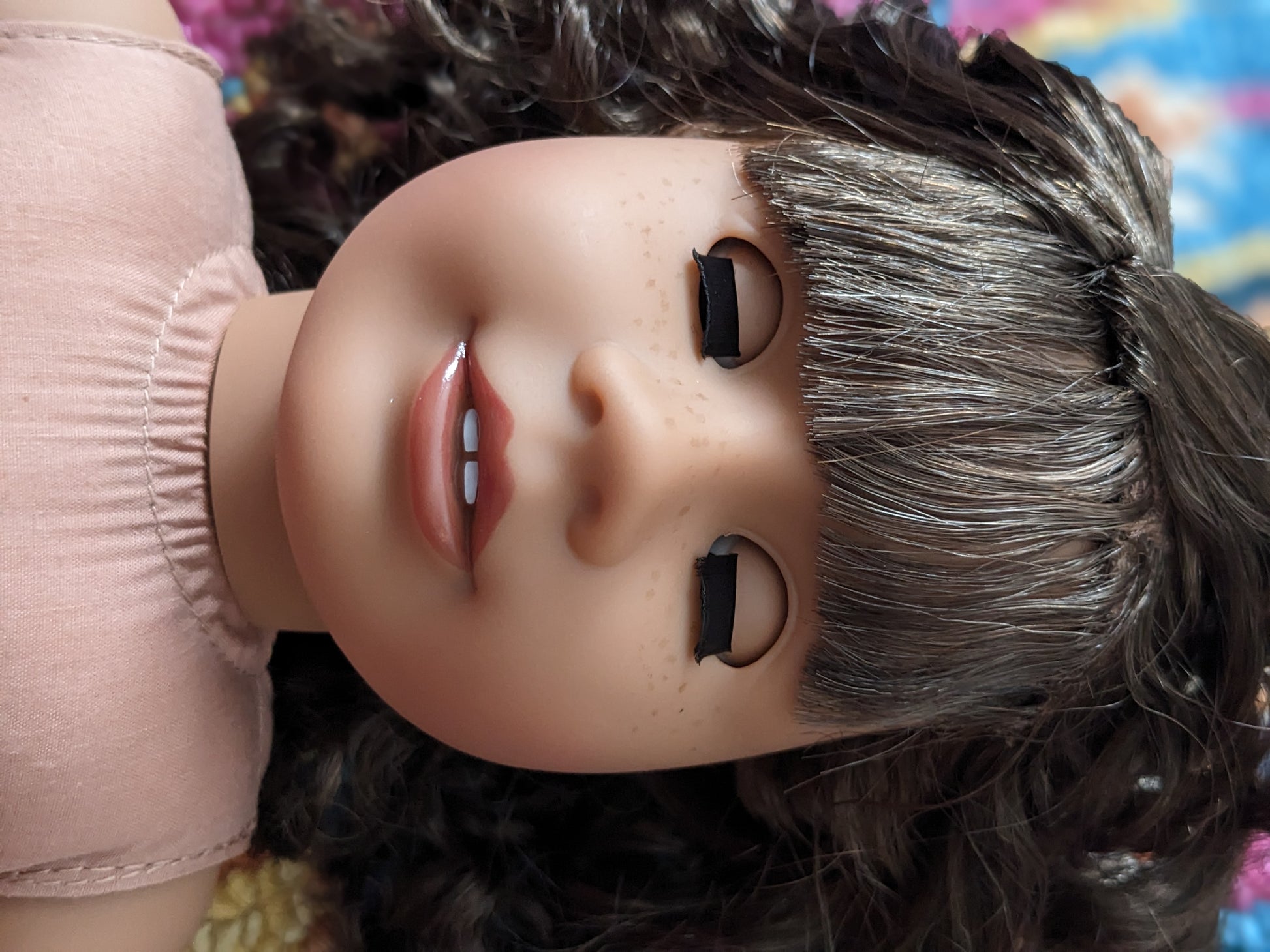 This one of a kind OOAK custom American Girl doll was created with a new doll, her original with which I've modified to add bangs, and hazel eyes. She has lip gloss and freckles that were hand painted and sealed. She may have some minor shine marks from handling. She comes with the outfit pictured. She has the microfiber cloth body with a tiny x on her bum.