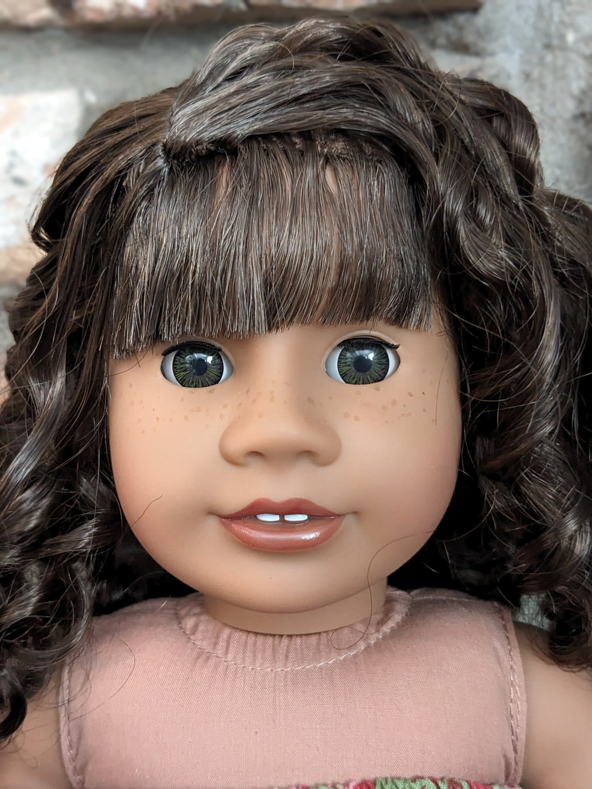 Ina - brown hair with bangs, hazel eyes, medium skin tone, Addy face mold