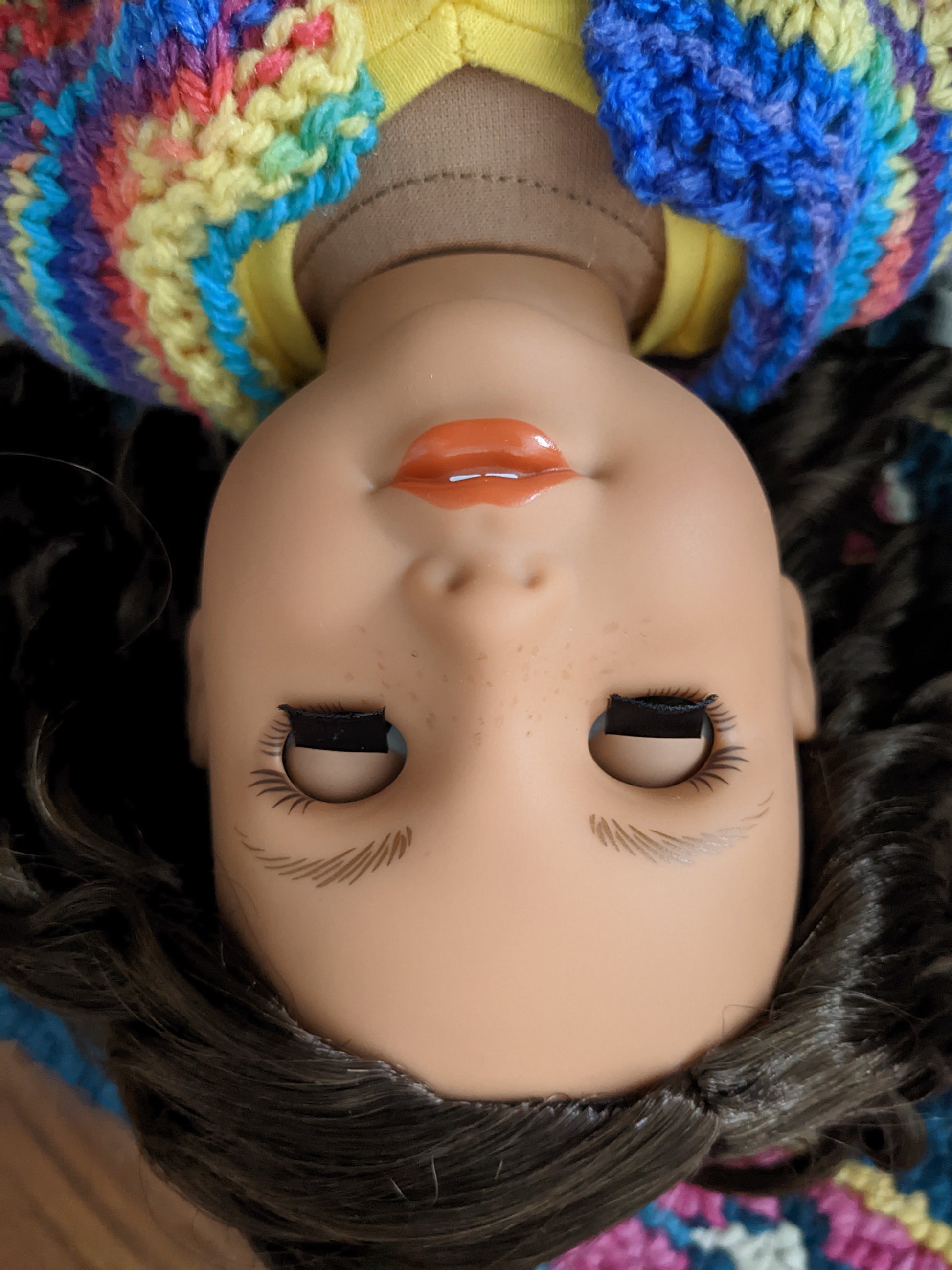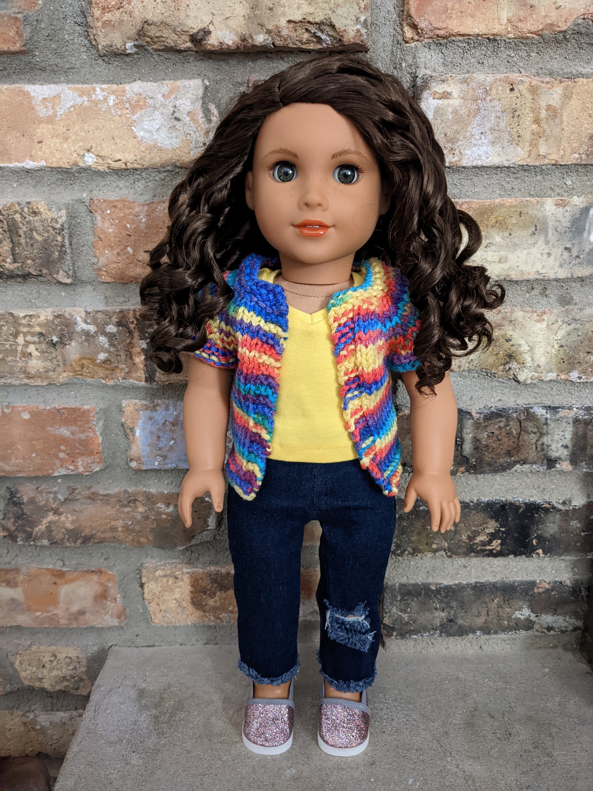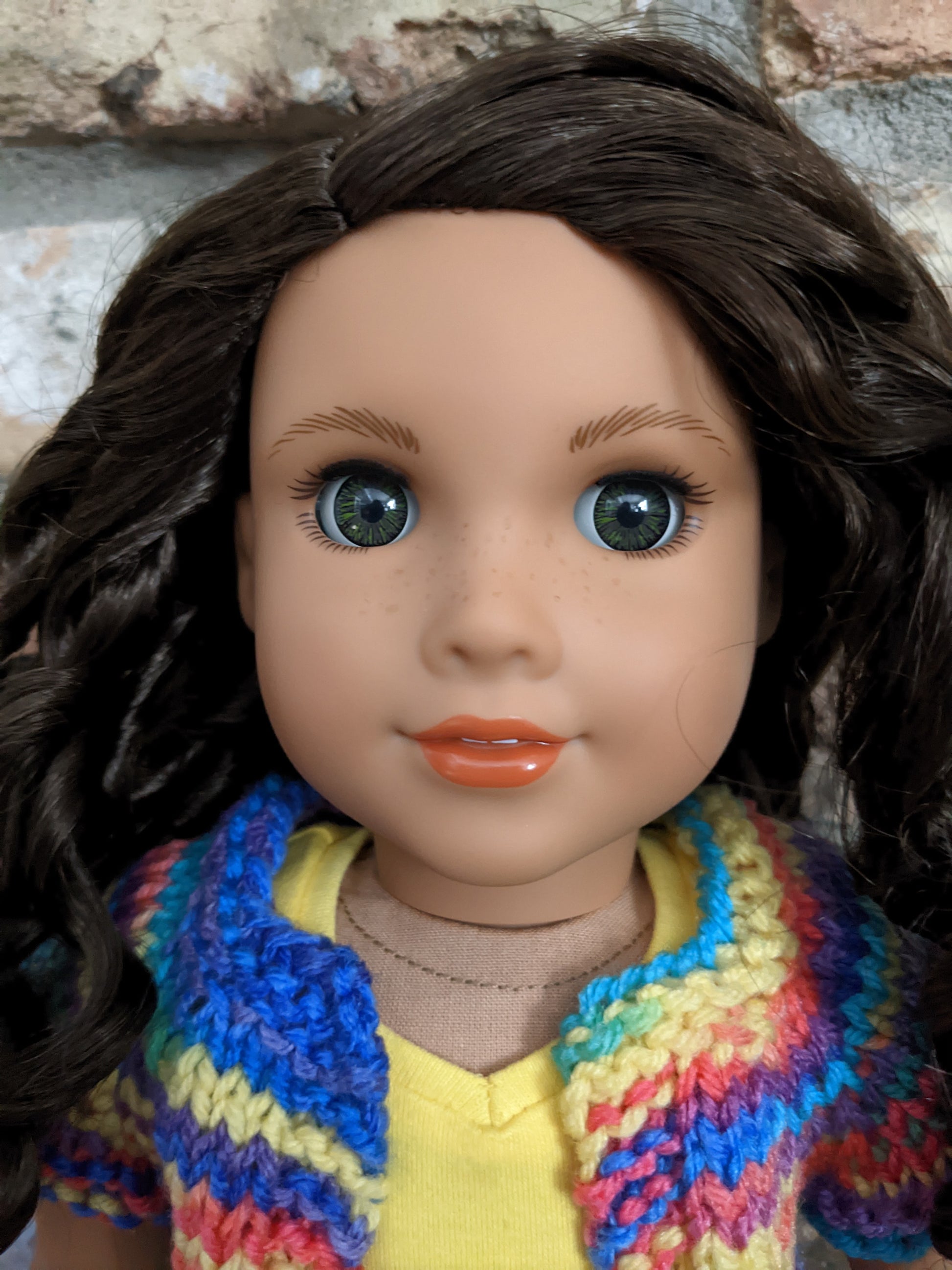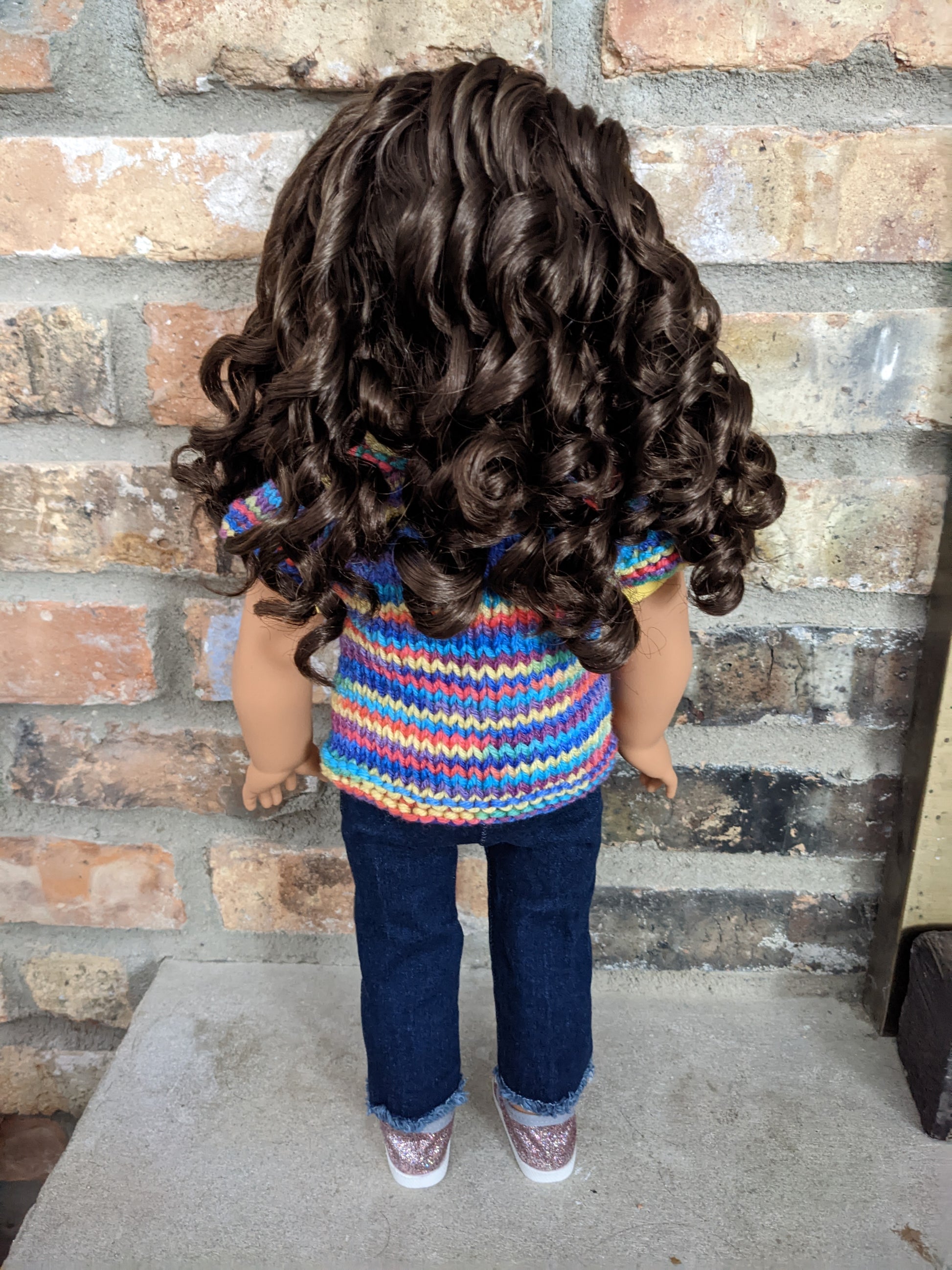 This one of a kind OOAK custom American Girl doll was created with a brand new Maritza doll, a dark brown wig from a new Gabriela doll, and hazel eyes. She has lip gloss and freckles that were hand painted and sealed. She may have some minor shine marks from handling. She comes with the outfit pictured.