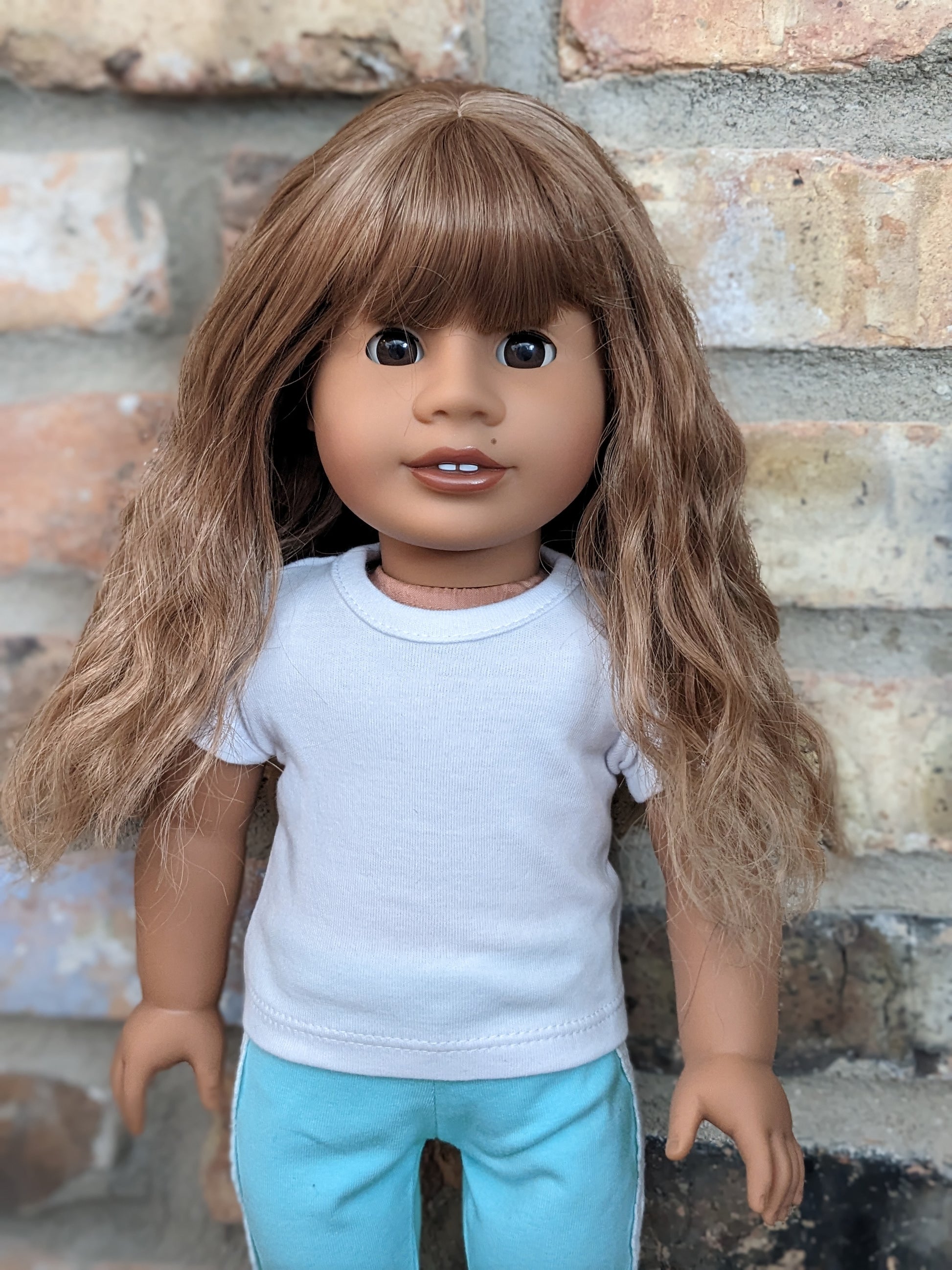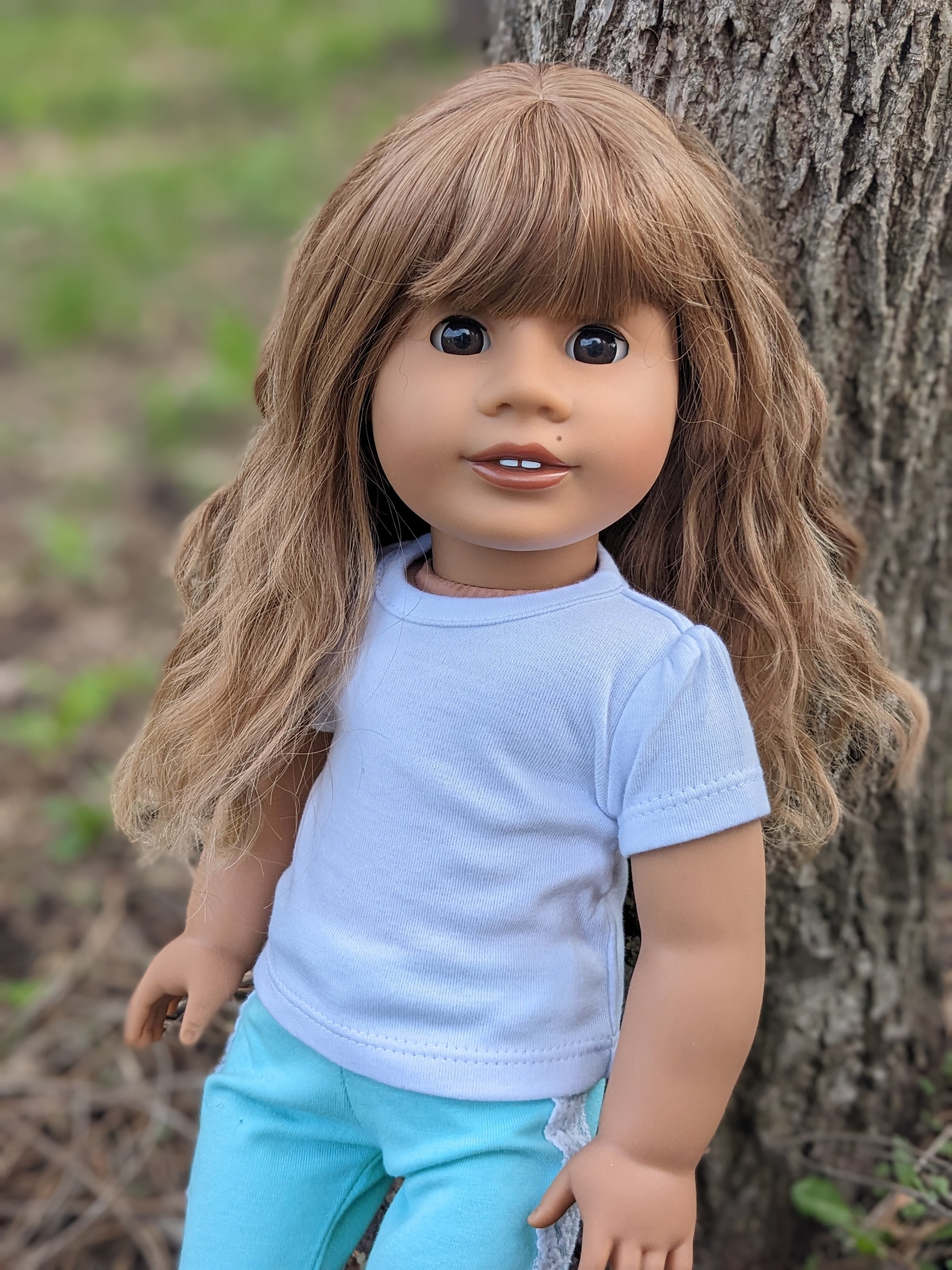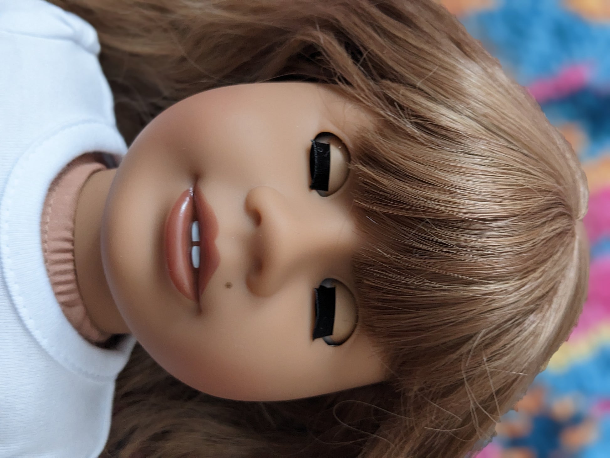 This one of a kind OOAK custom American Girl doll was created with a new doll, a brown wig, and brown eyes. She has lip gloss and a beauty mark that was hand painted and sealed. She may have some minor shine marks from handling. She comes with the outfit pictured. She has the microfiber cloth body with permapanties and a tiny x on her bum.