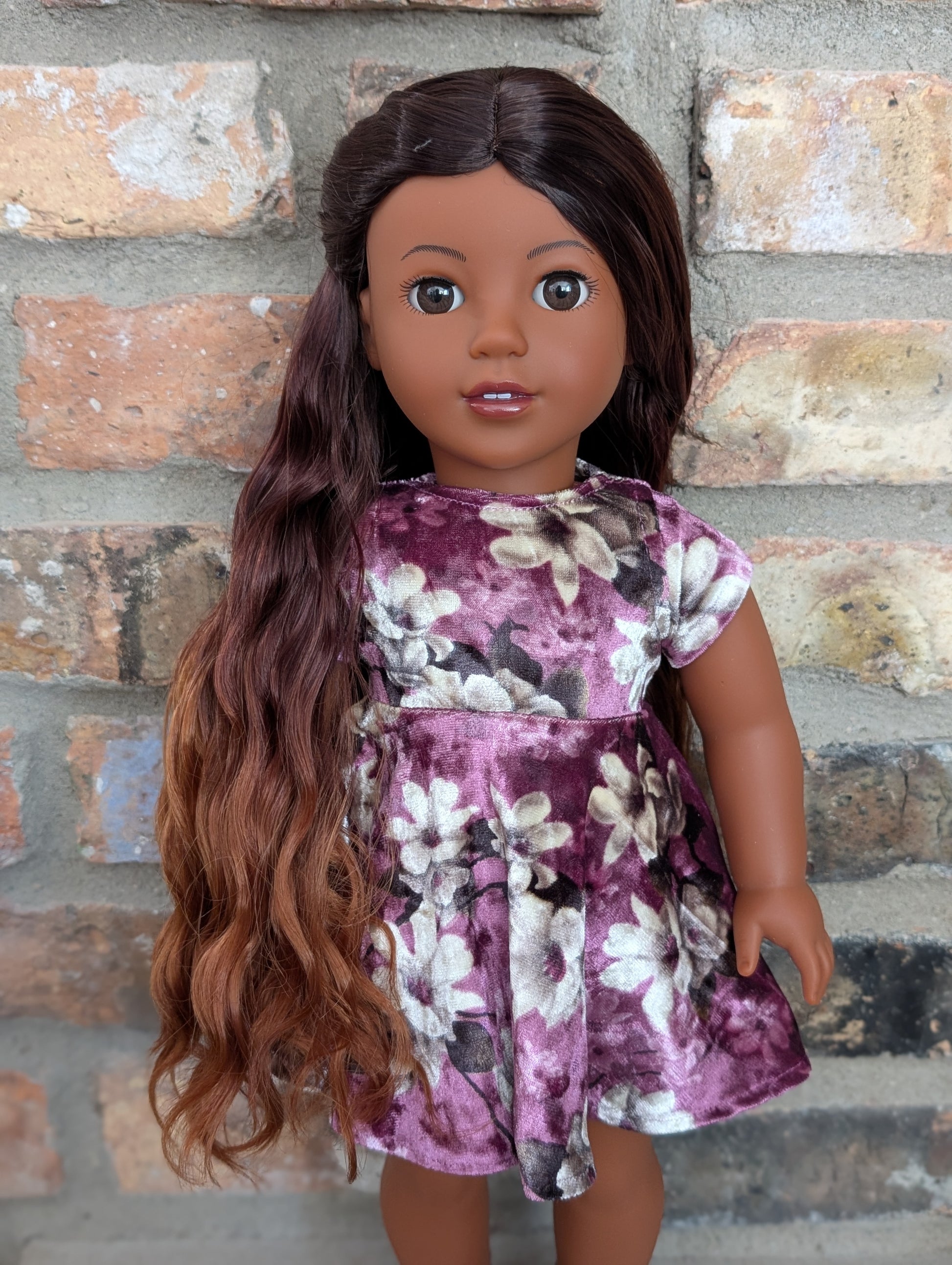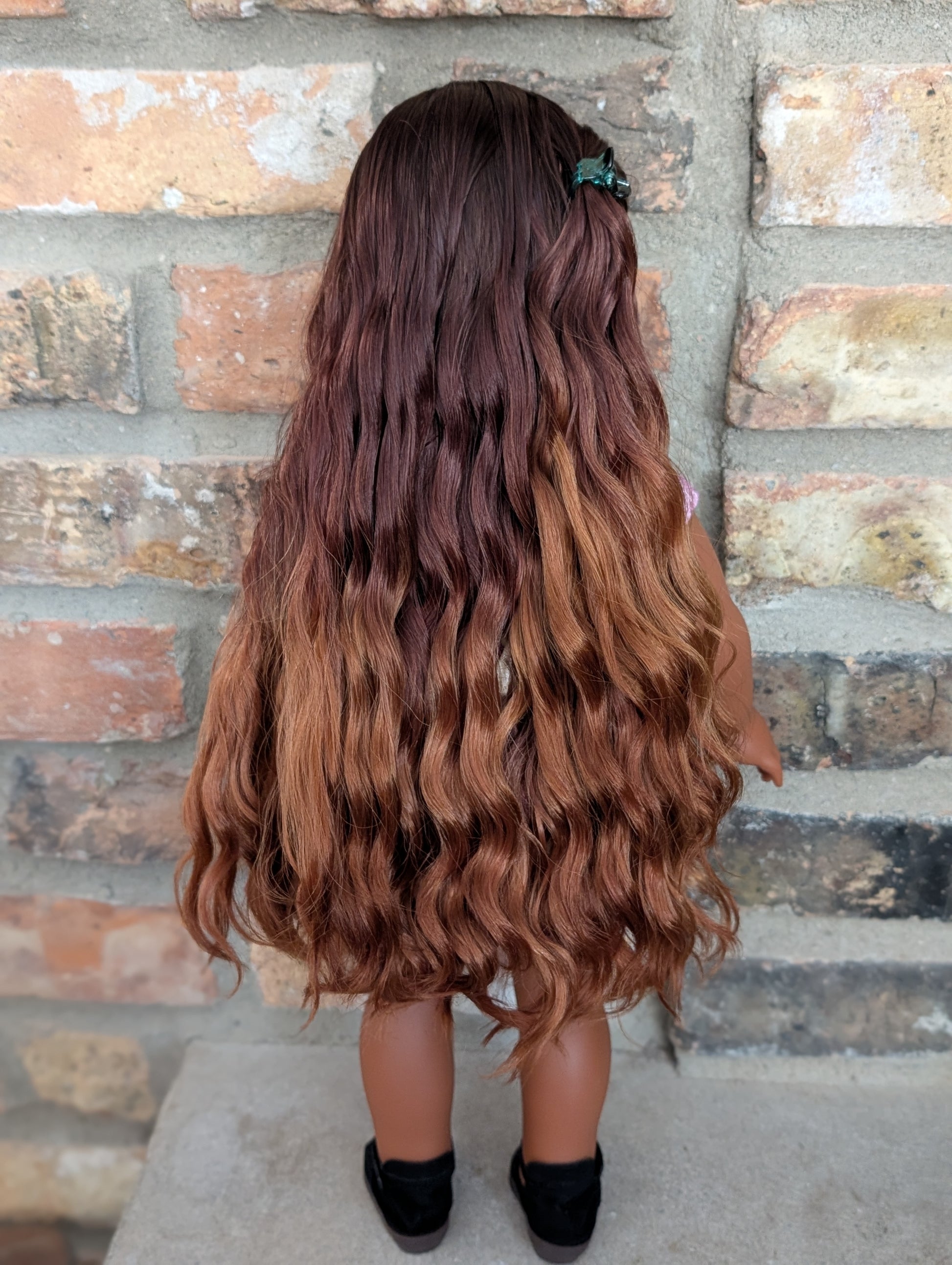 This one of a kind OOAK custom American Girl doll was created with a brand new Moana doll, a brown wig, and brown eyes. She has lip gloss that was hand painted and sealed. She may have some minor shine marks from handling. She comes with the outfit pictured.