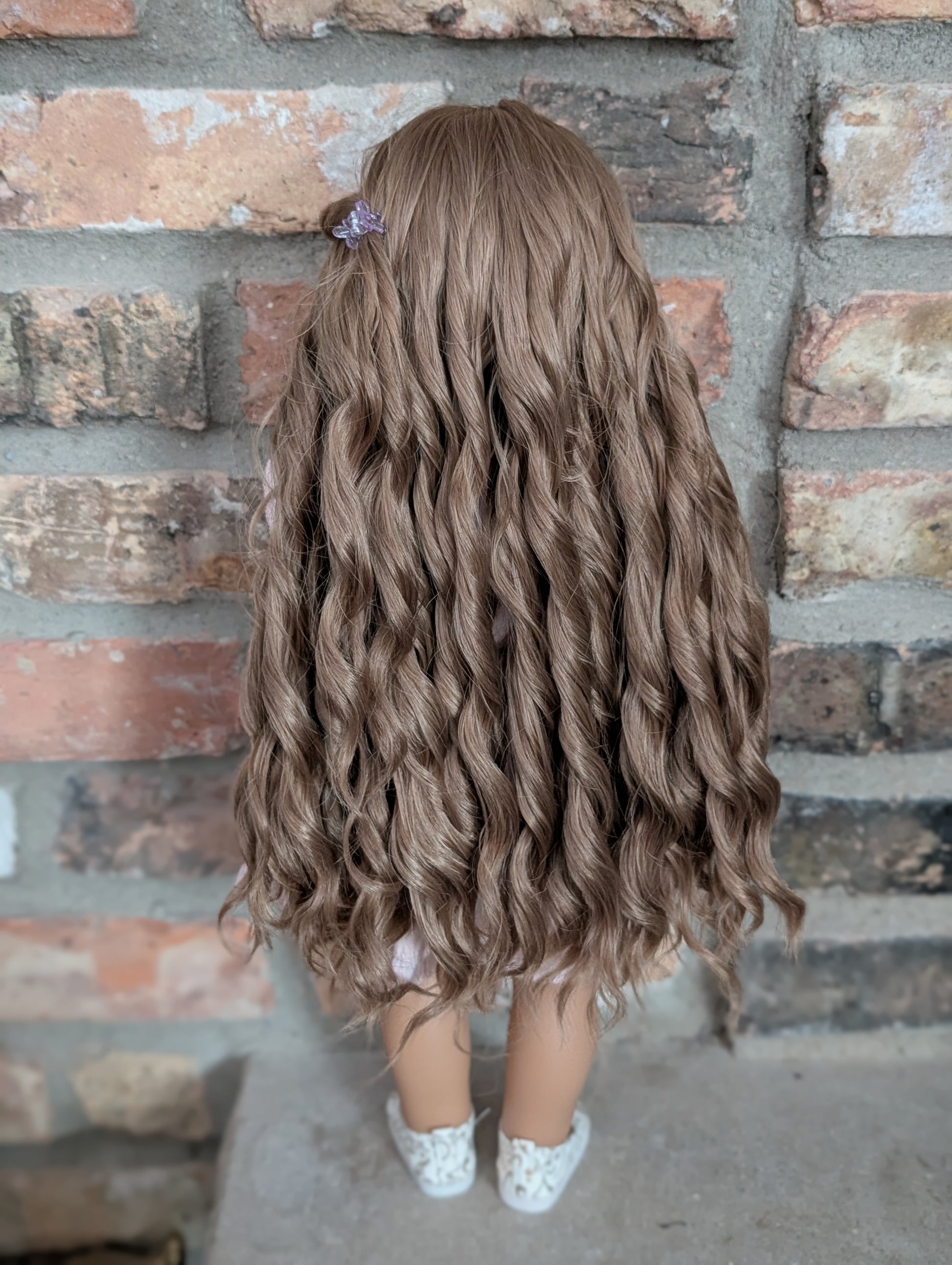 This one of a kind OOAK custom American Girl doll was created with a brand new doll, a brown wig, and dark blue eyes. She has lip gloss and freckles that were hand painted and sealed. She may have some minor shine marks from handling. She comes with the outfit pictured.