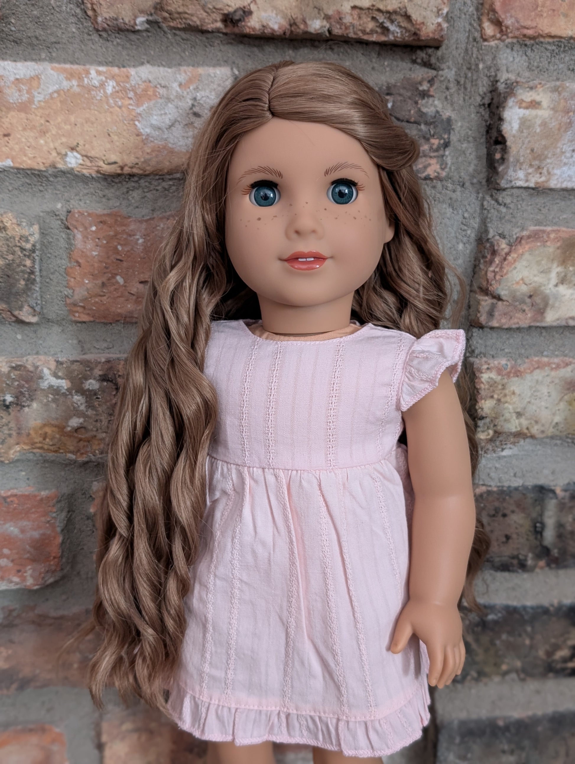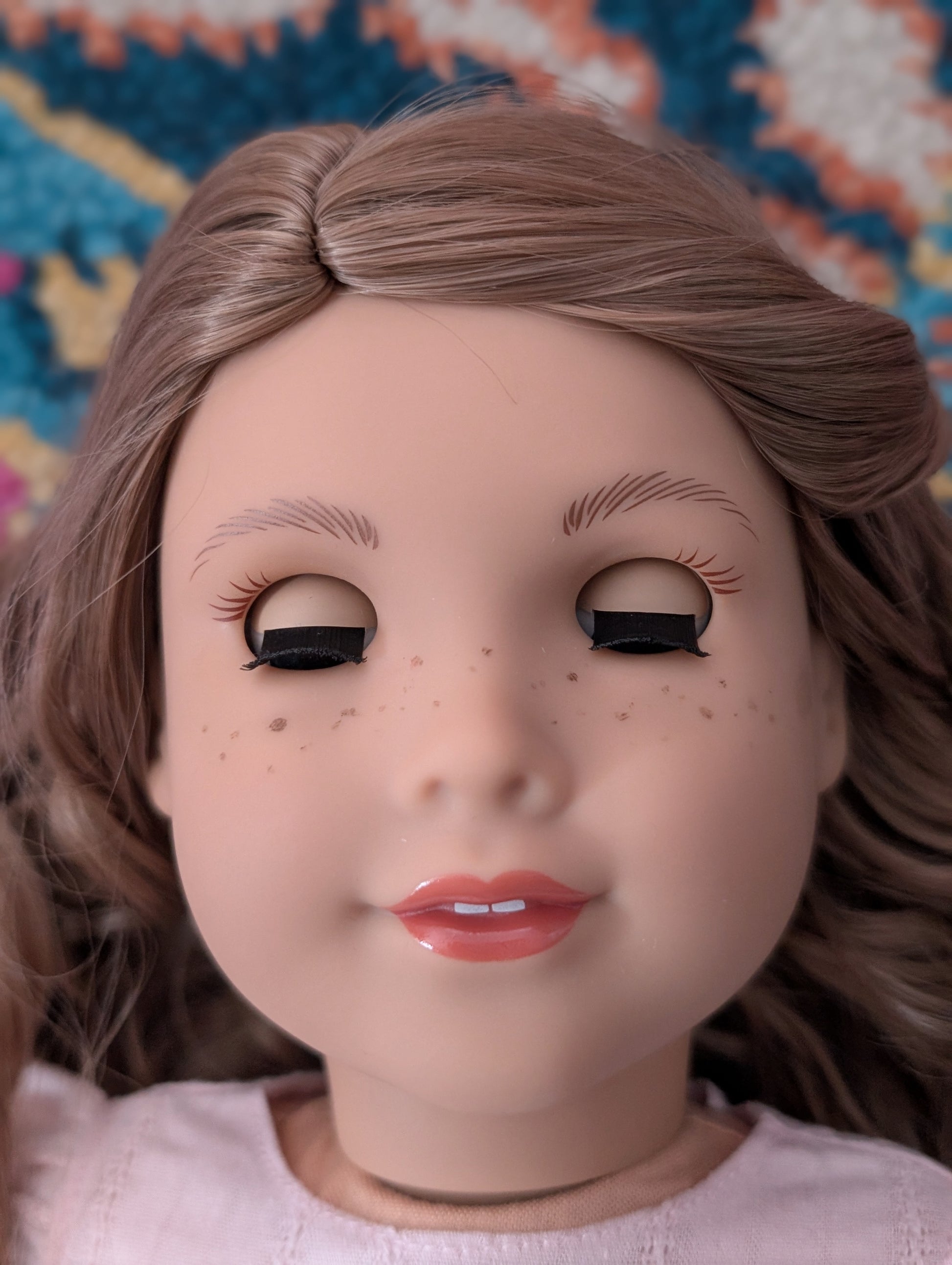 Lisette - brown hair, dark blue eyes, light skin tone, Josefina face mold, freckles
