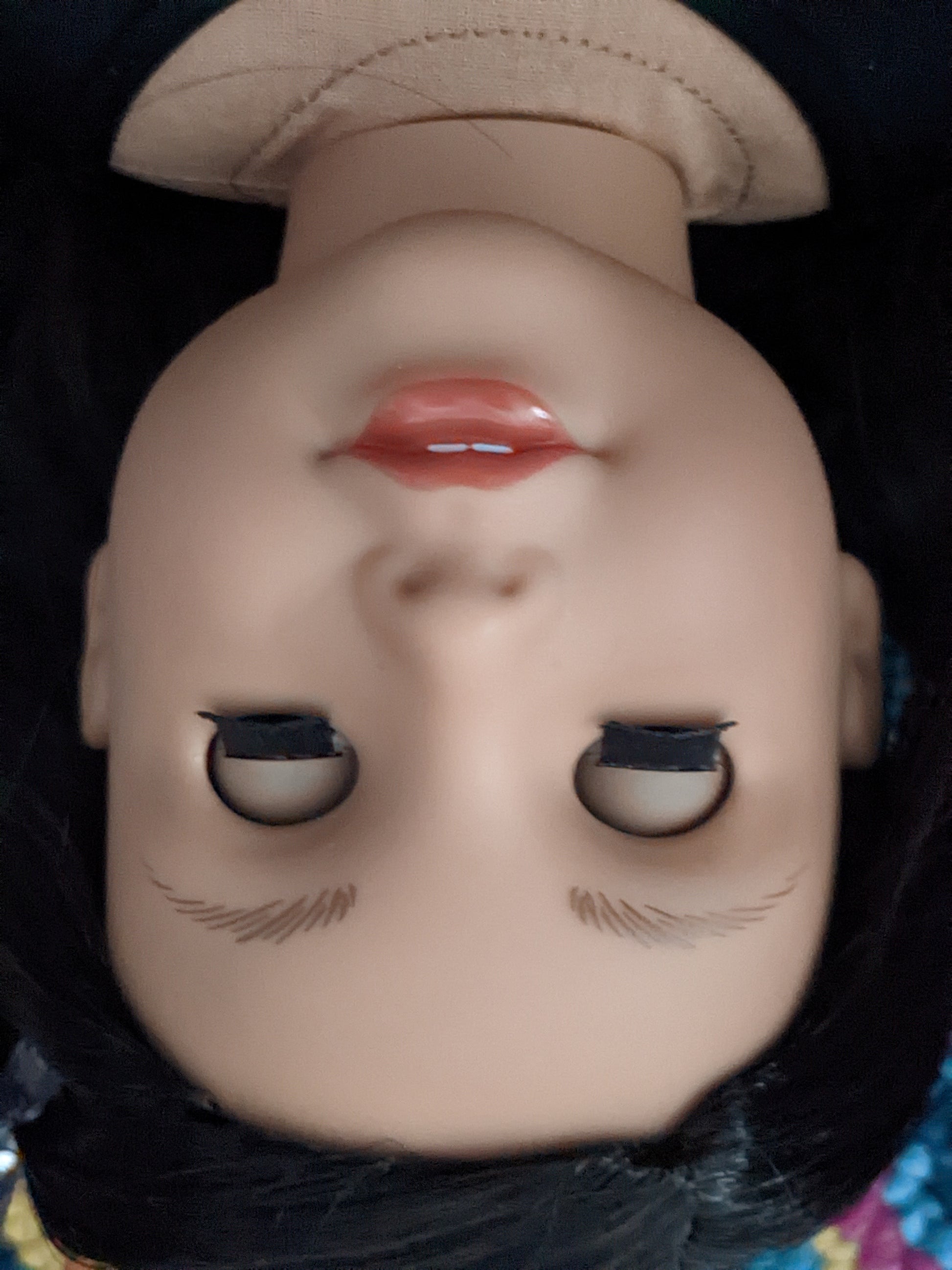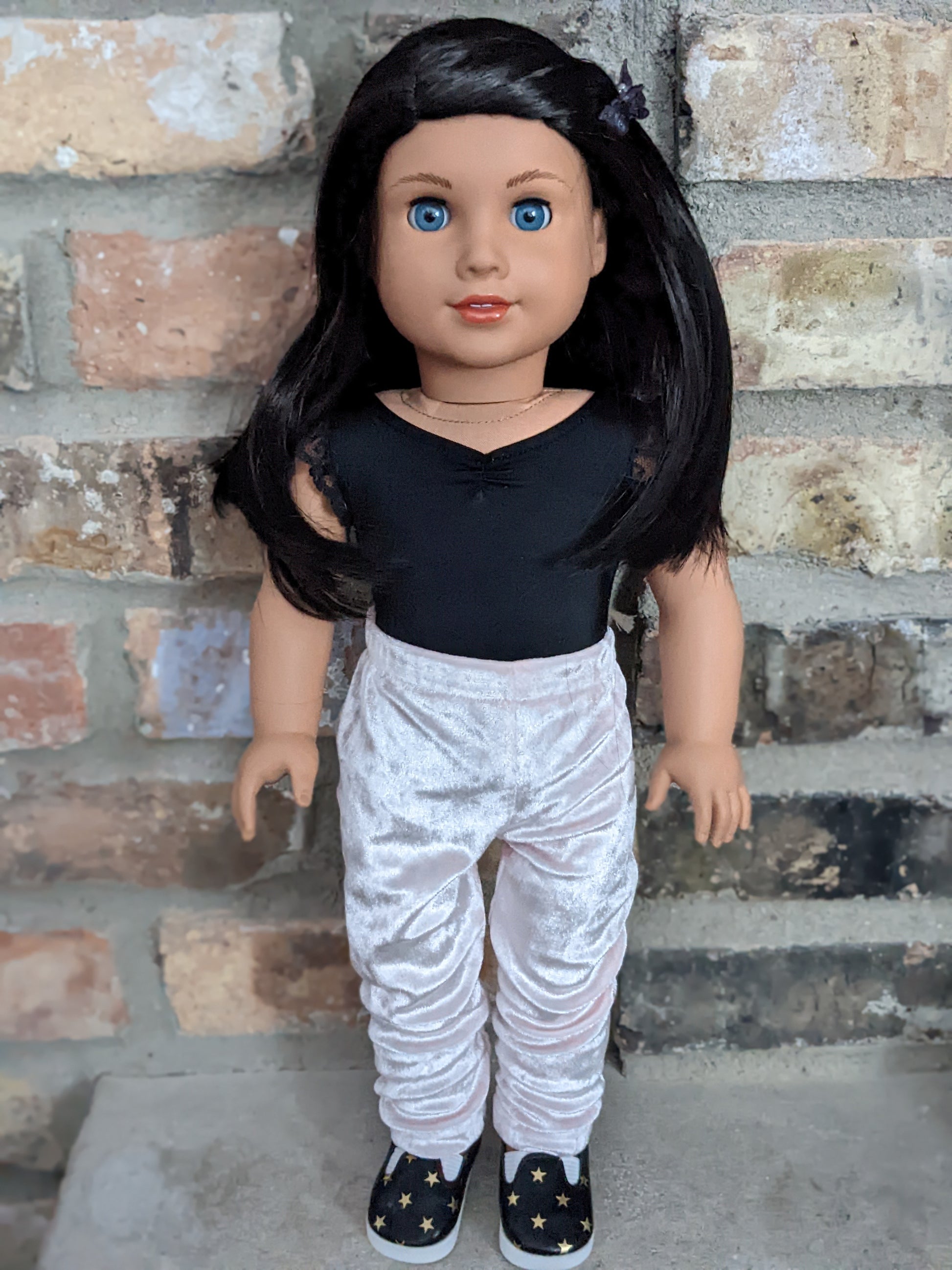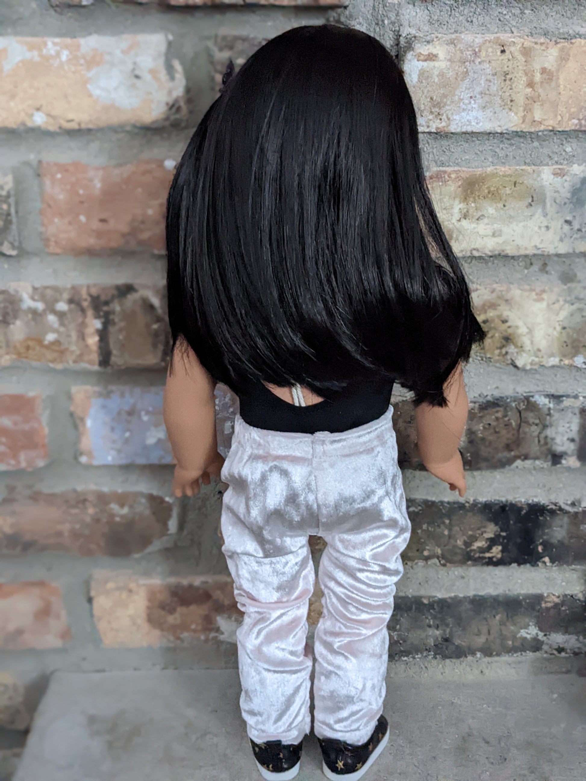This one of a kind OOAK custom American Girl doll was created with a brand new Maritza doll, a black wig from a new TM doll, and blue eyes. She has lip gloss that was hand painted and sealed. She may have some minor shine marks from handling. She comes with the outfit pictured. Her painted on eyelashes have been removed.