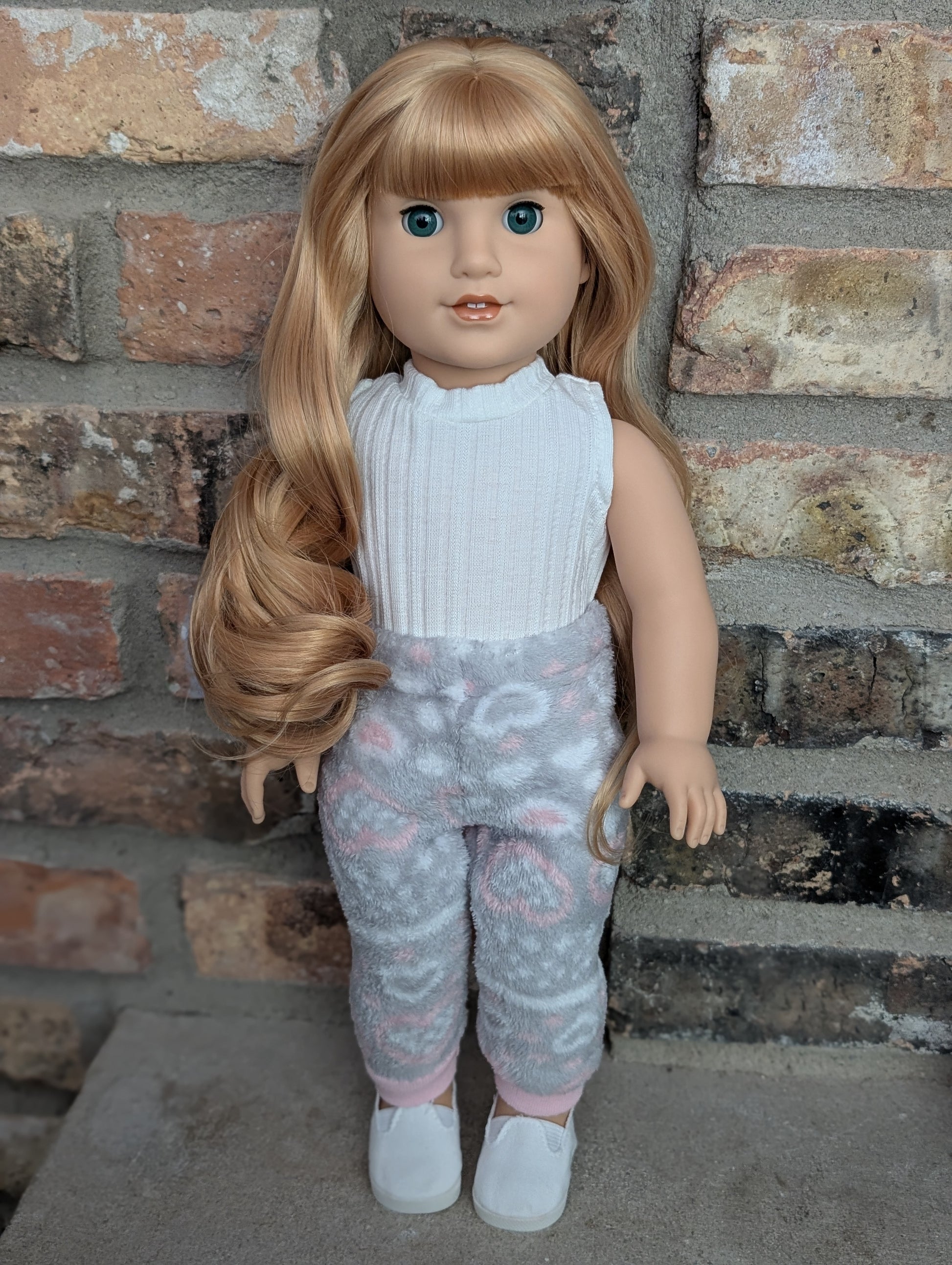 This one of a kind OOAK custom American Girl doll was created with a brand new doll, a light red wig, and aqua eyes from an Ariel doll. She has lip gloss that was hand painted and sealed. She may have some minor shine marks from handling. She comes with the outfit pictured.