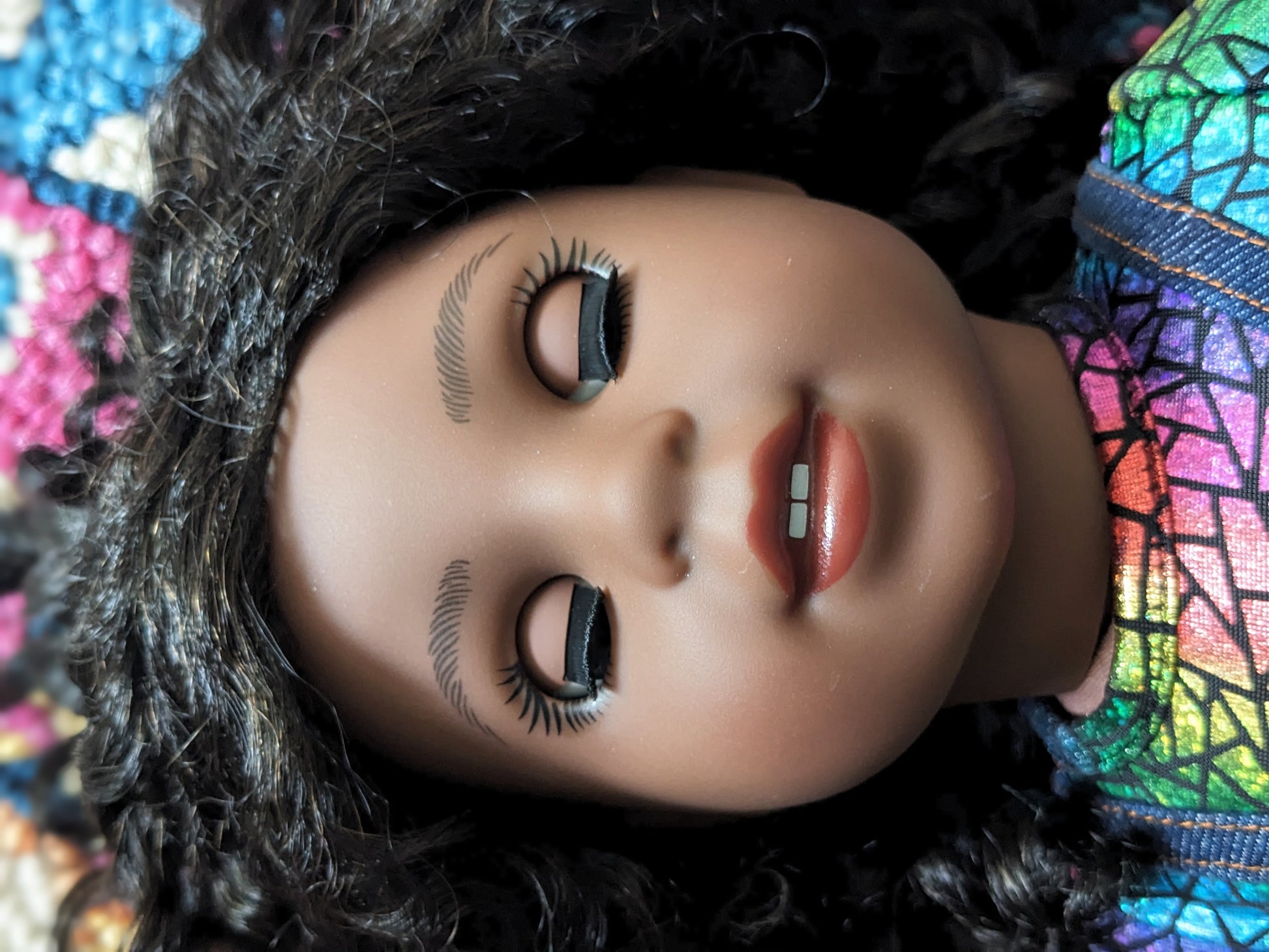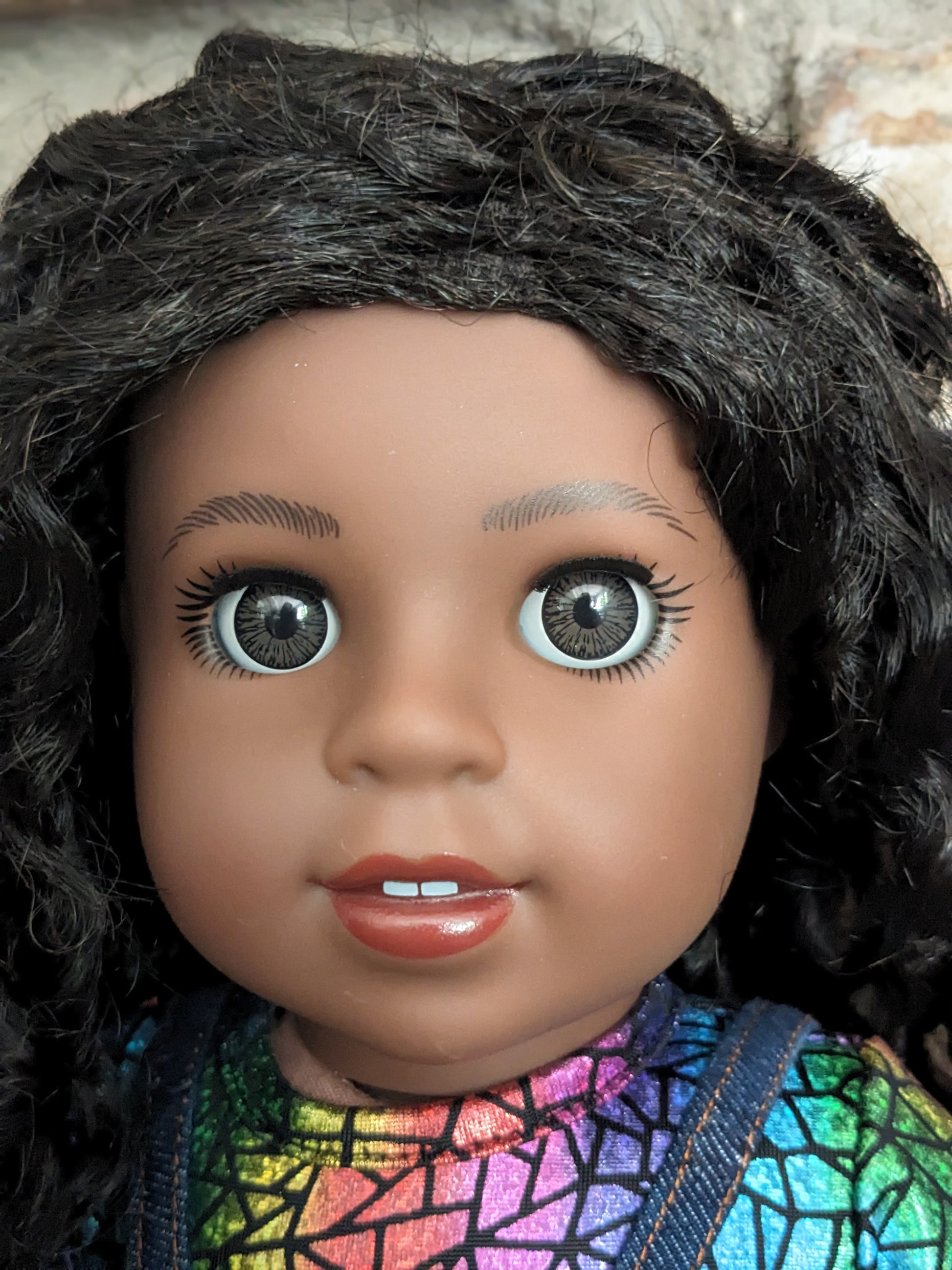 Nadine - black hair, brown decal eyes, darkest skin tone, Makena face mold