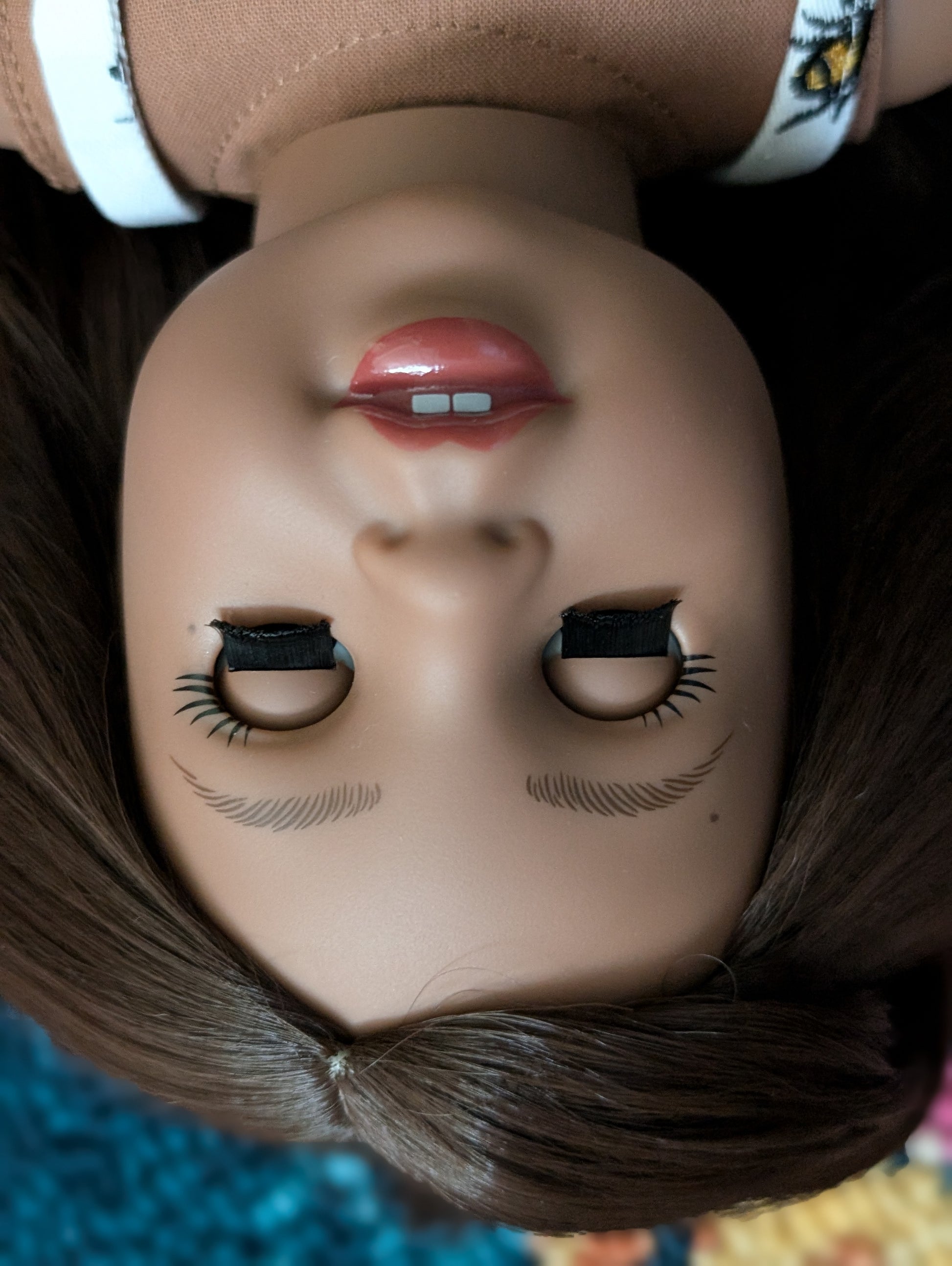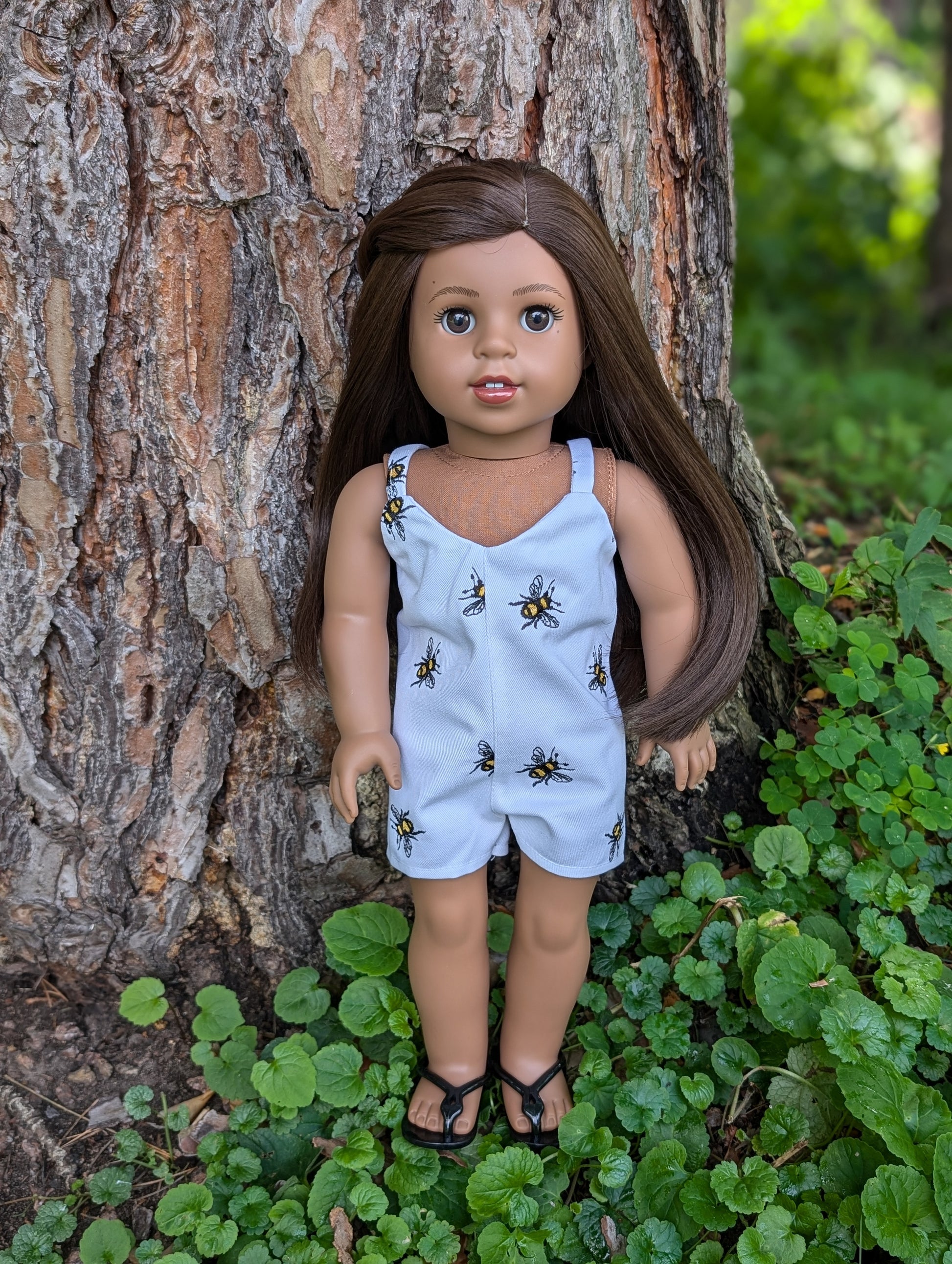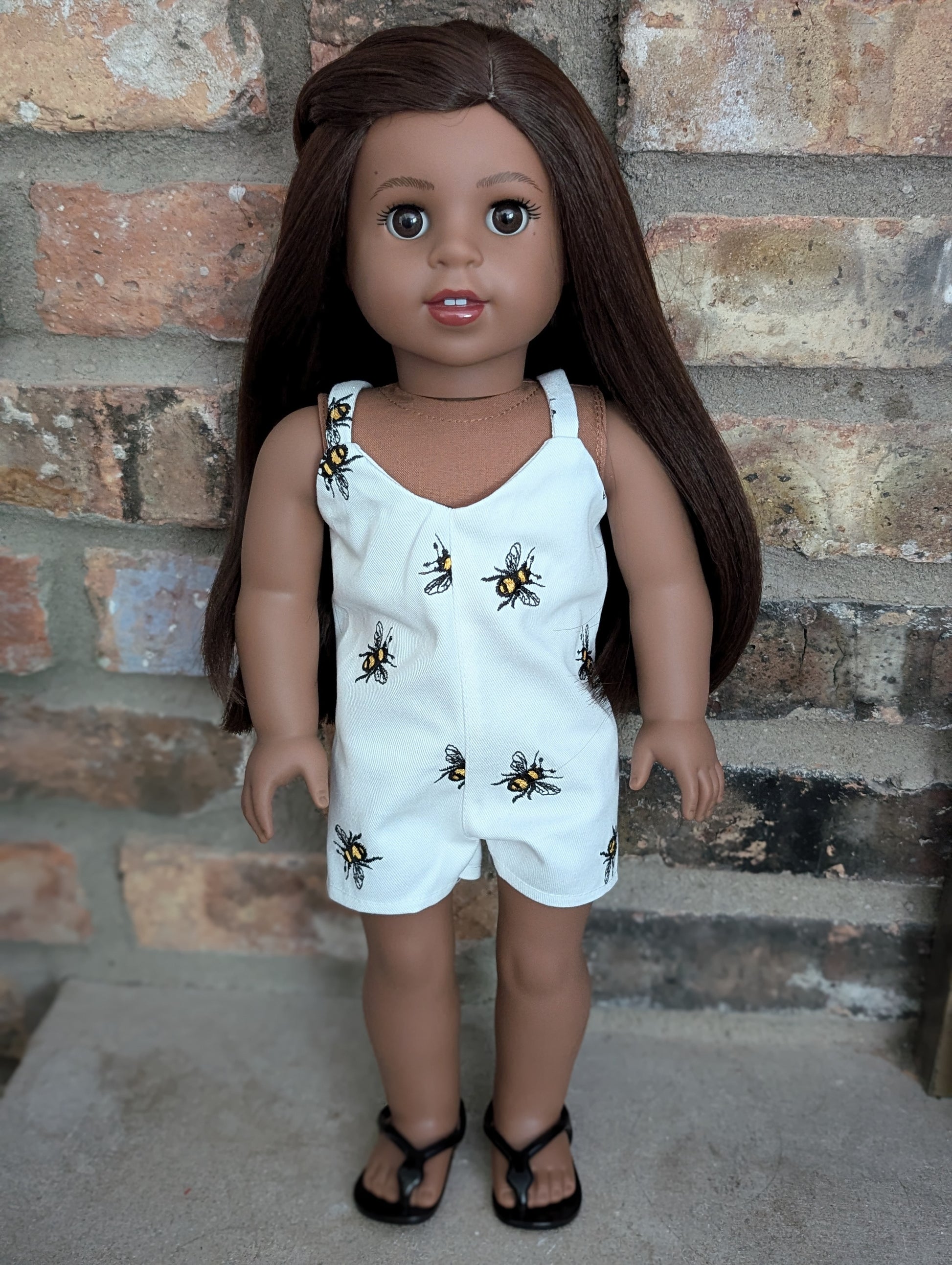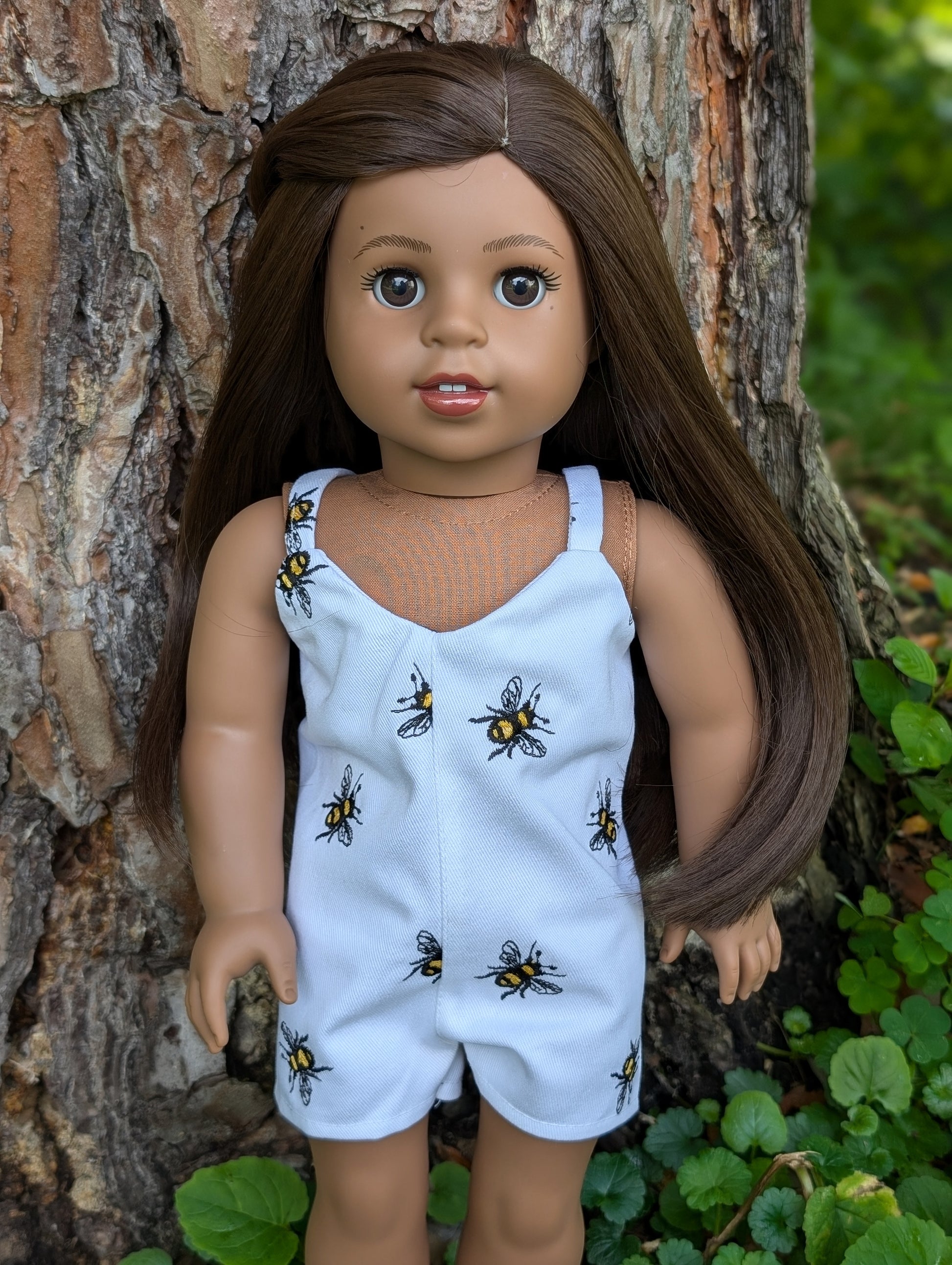 This one of a kind OOAK custom American Girl doll was created with a brand new Truly Me doll, a dark brown textured wig, and brown eyes. She has lip gloss and beauty marks that were hand painted and sealed. She may have some minor shine marks from handling. She comes with the outfit pictured.
