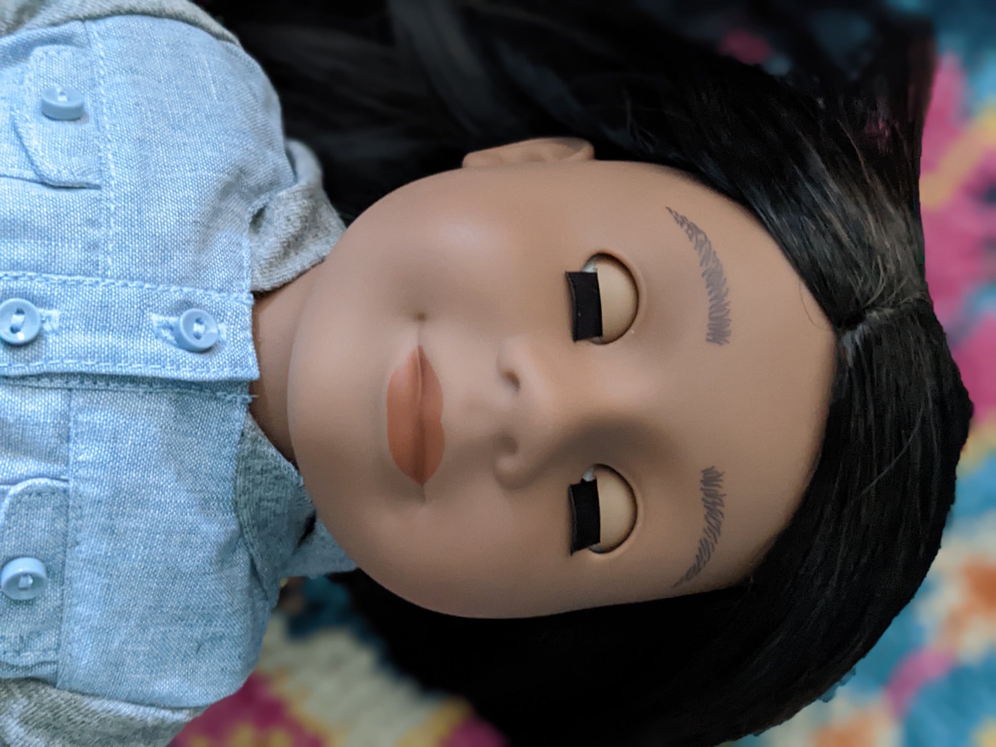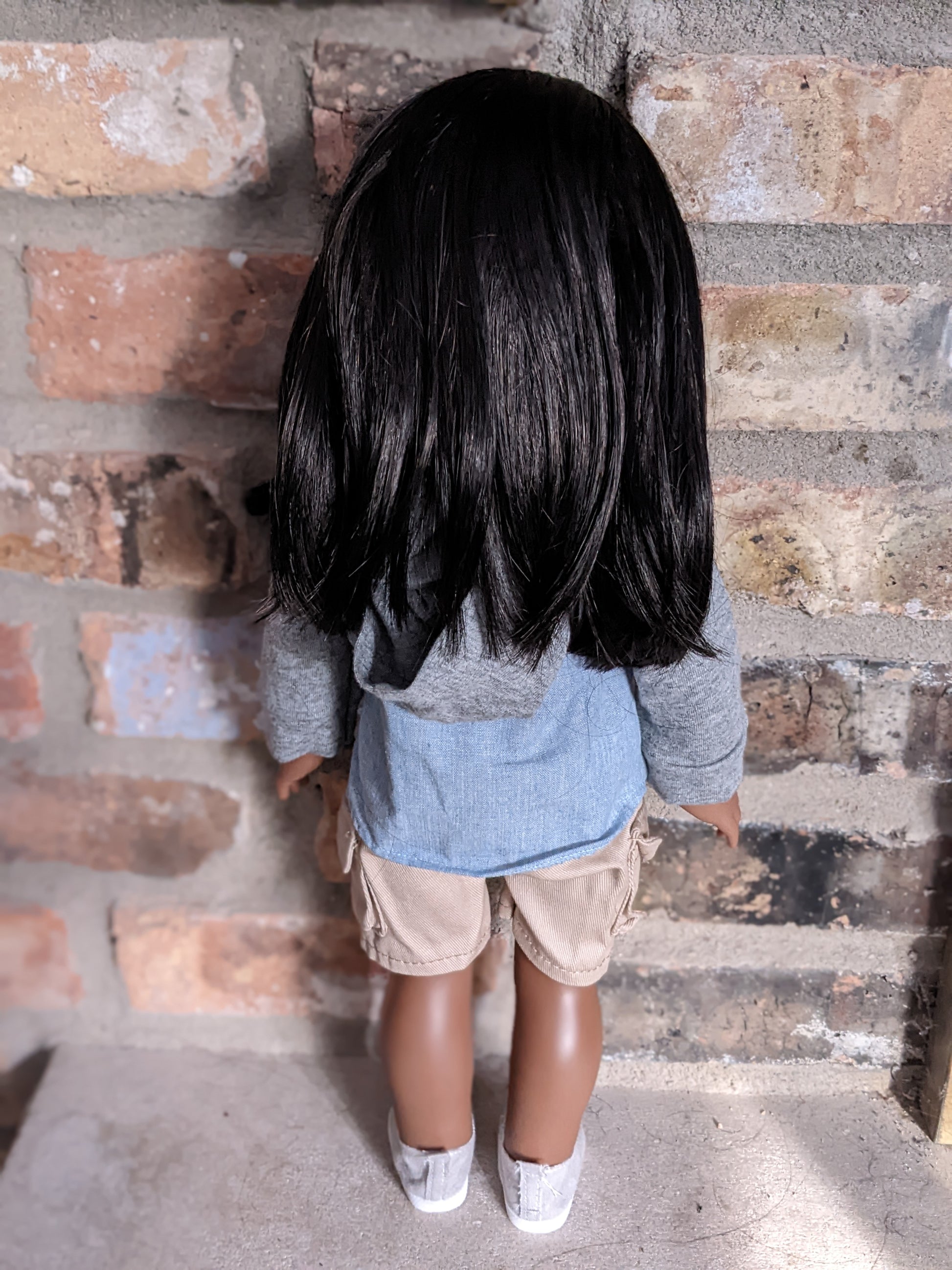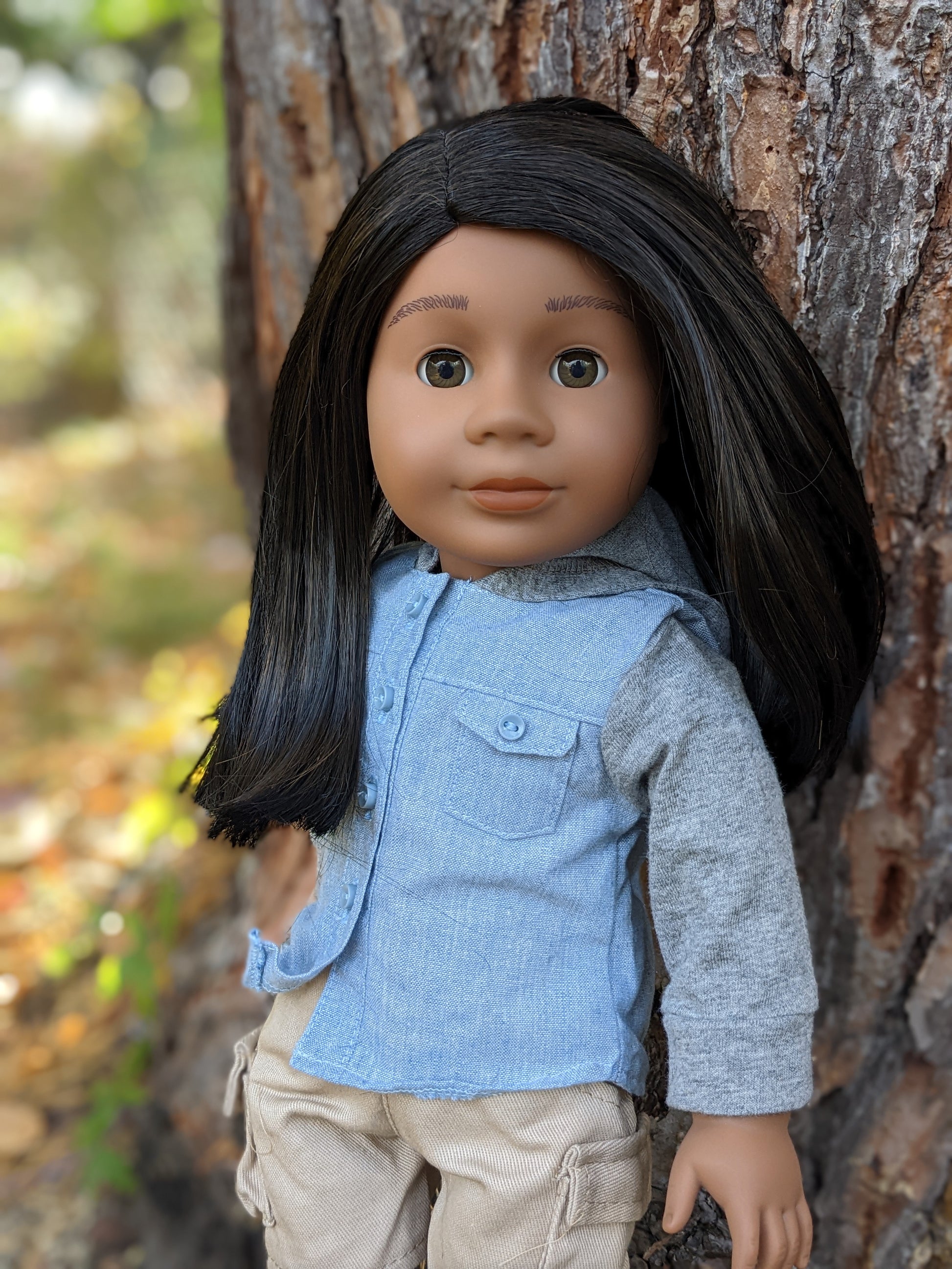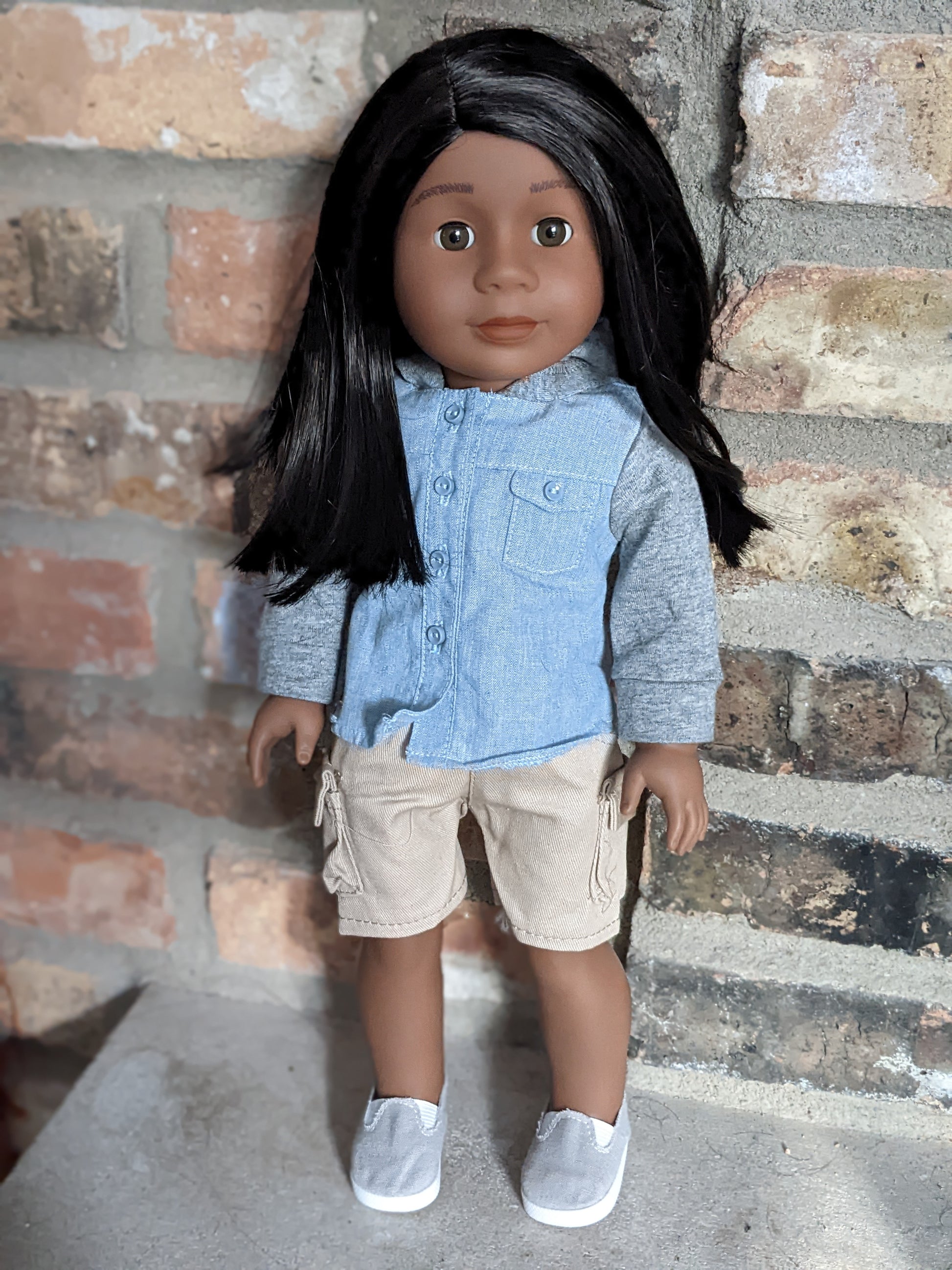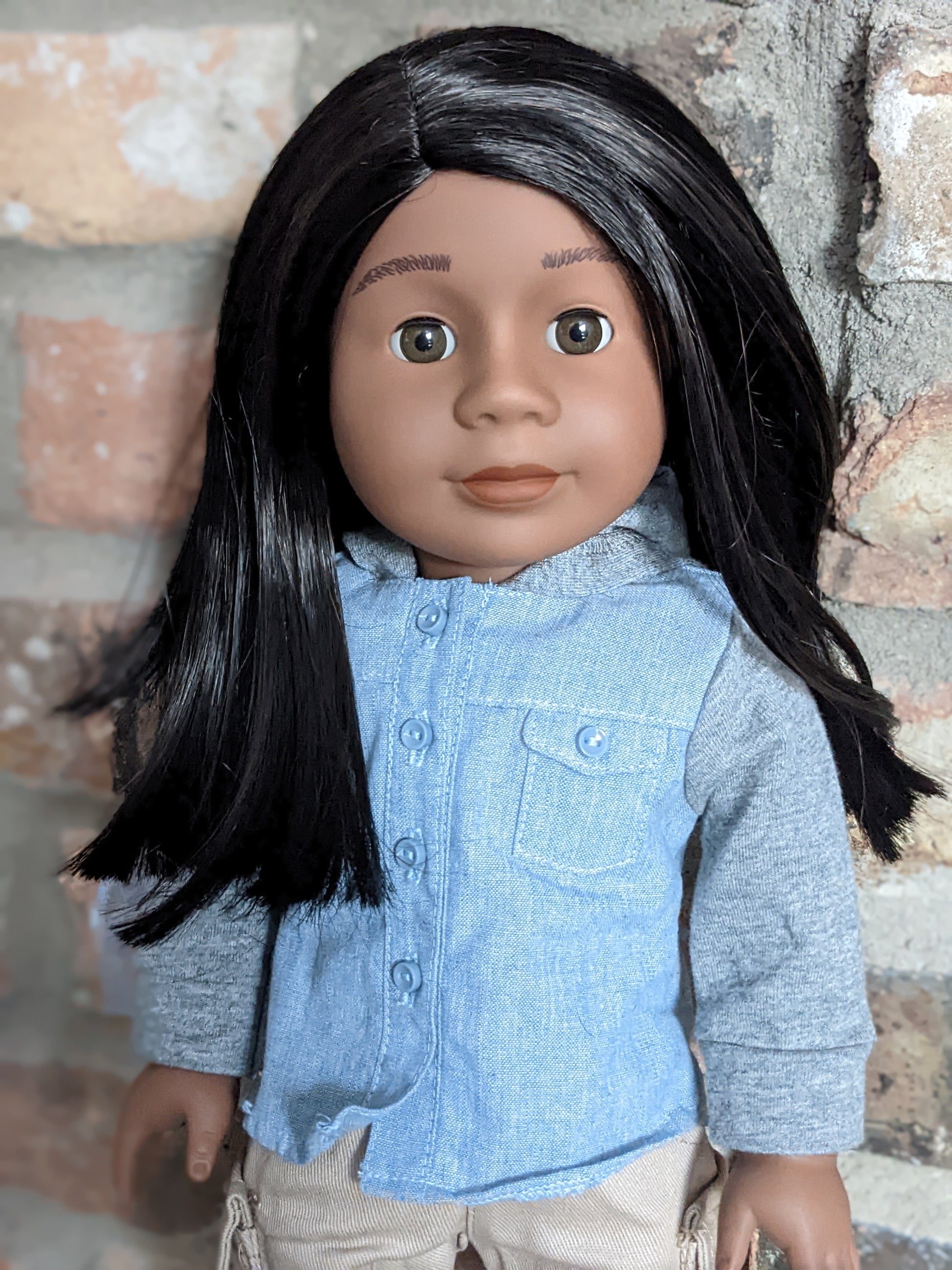 Custom - black hair, amber eyes, dark skin tone, modified boy Addy face mold
