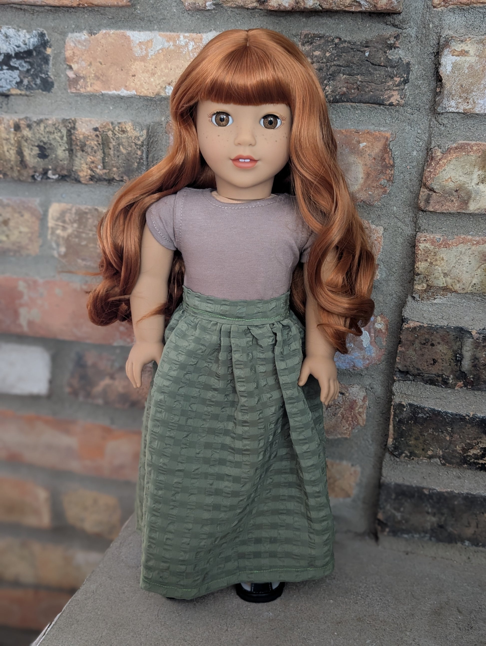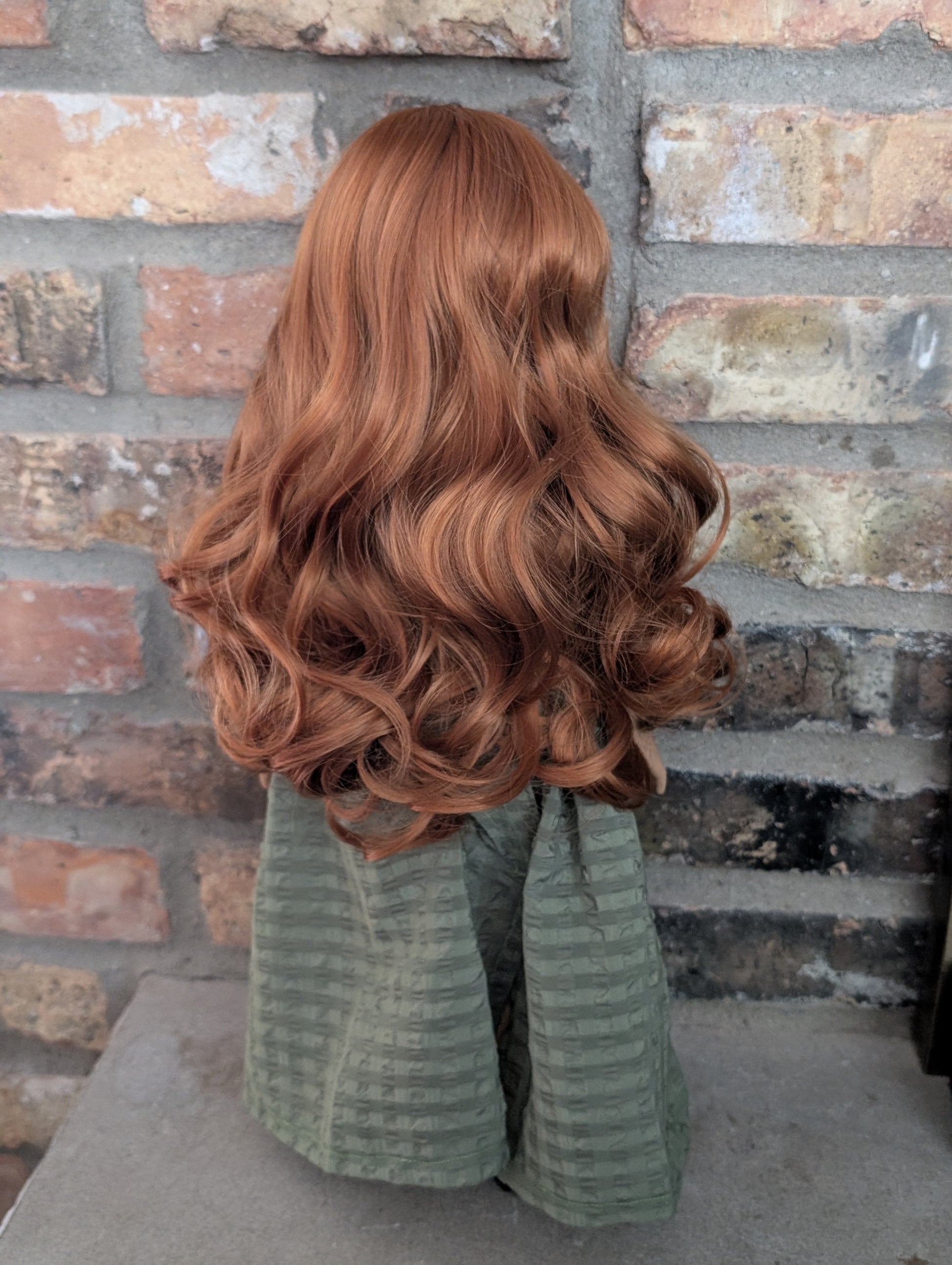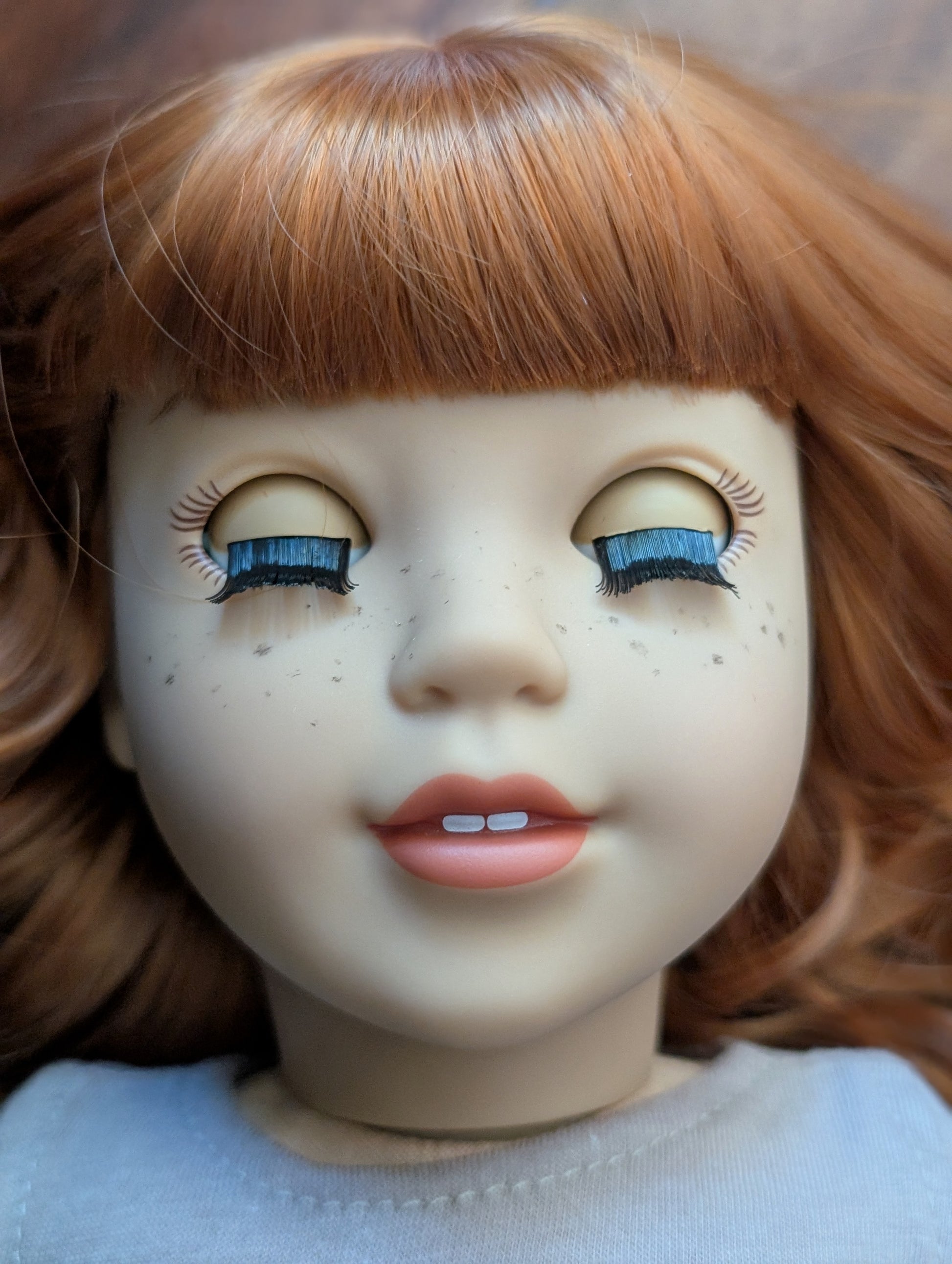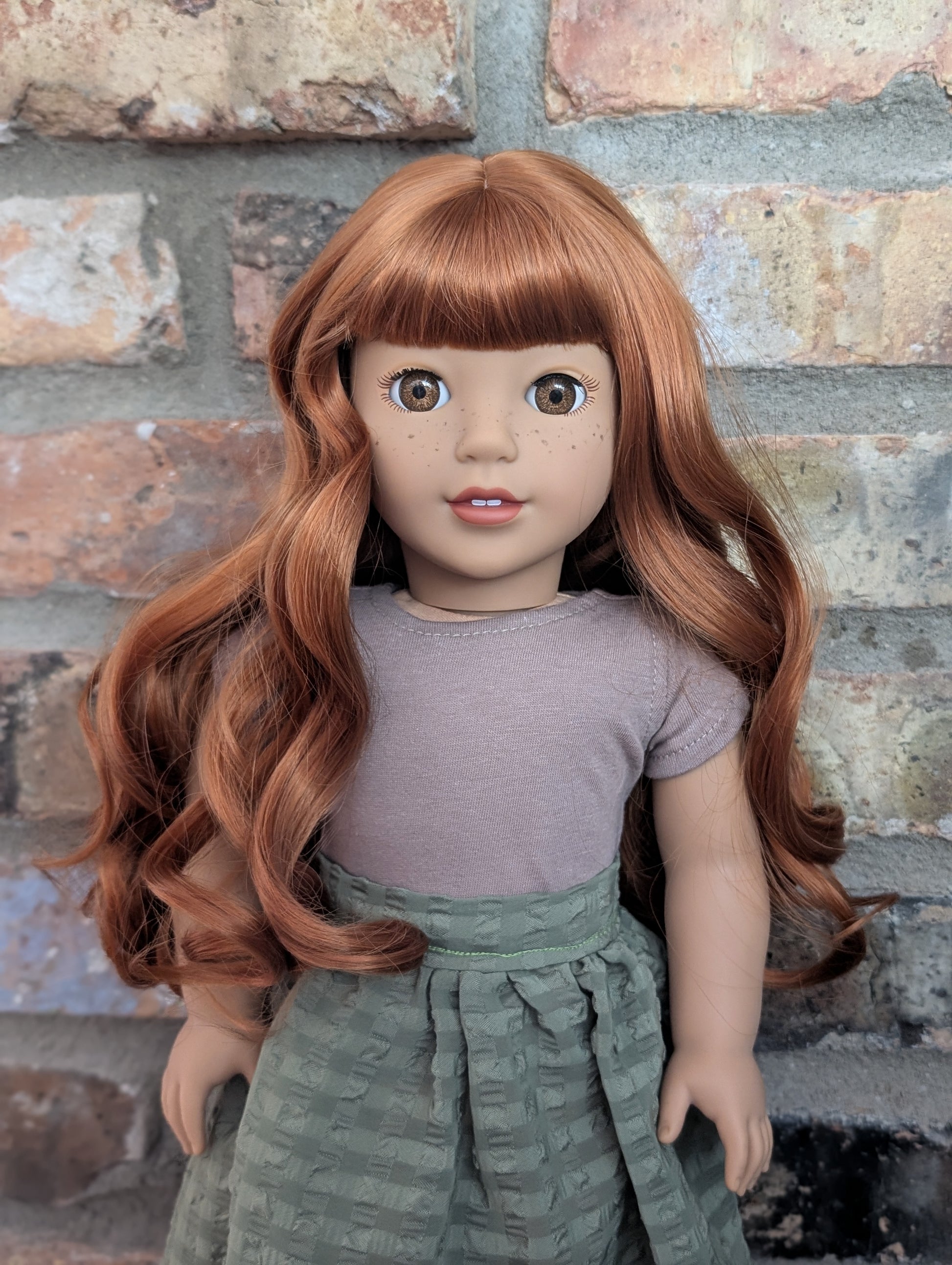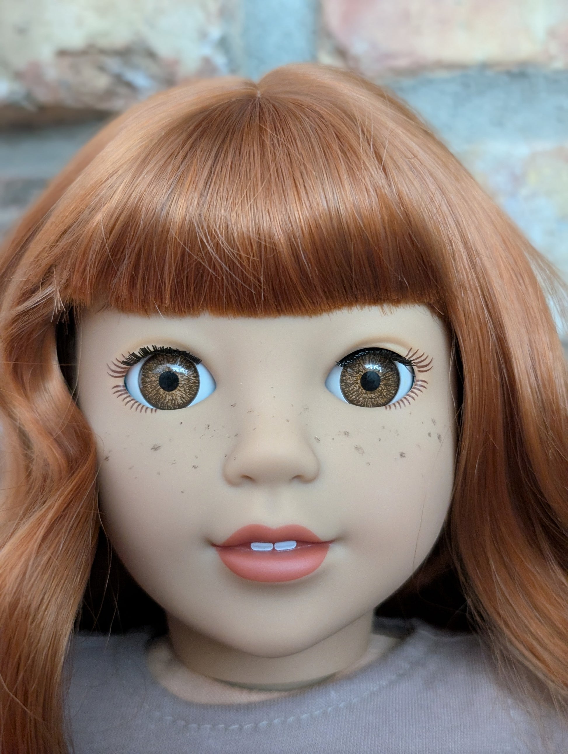 This one of a kind OOAK custom American Girl doll was created with a brand new doll, a red wig, and brown eyes from Etsy. She has freckles that were hand painted and sealed. She may have some minor shine marks from handling. She comes with the outfit pictured. Her ears are pierced with American Girl doll sized earrings.