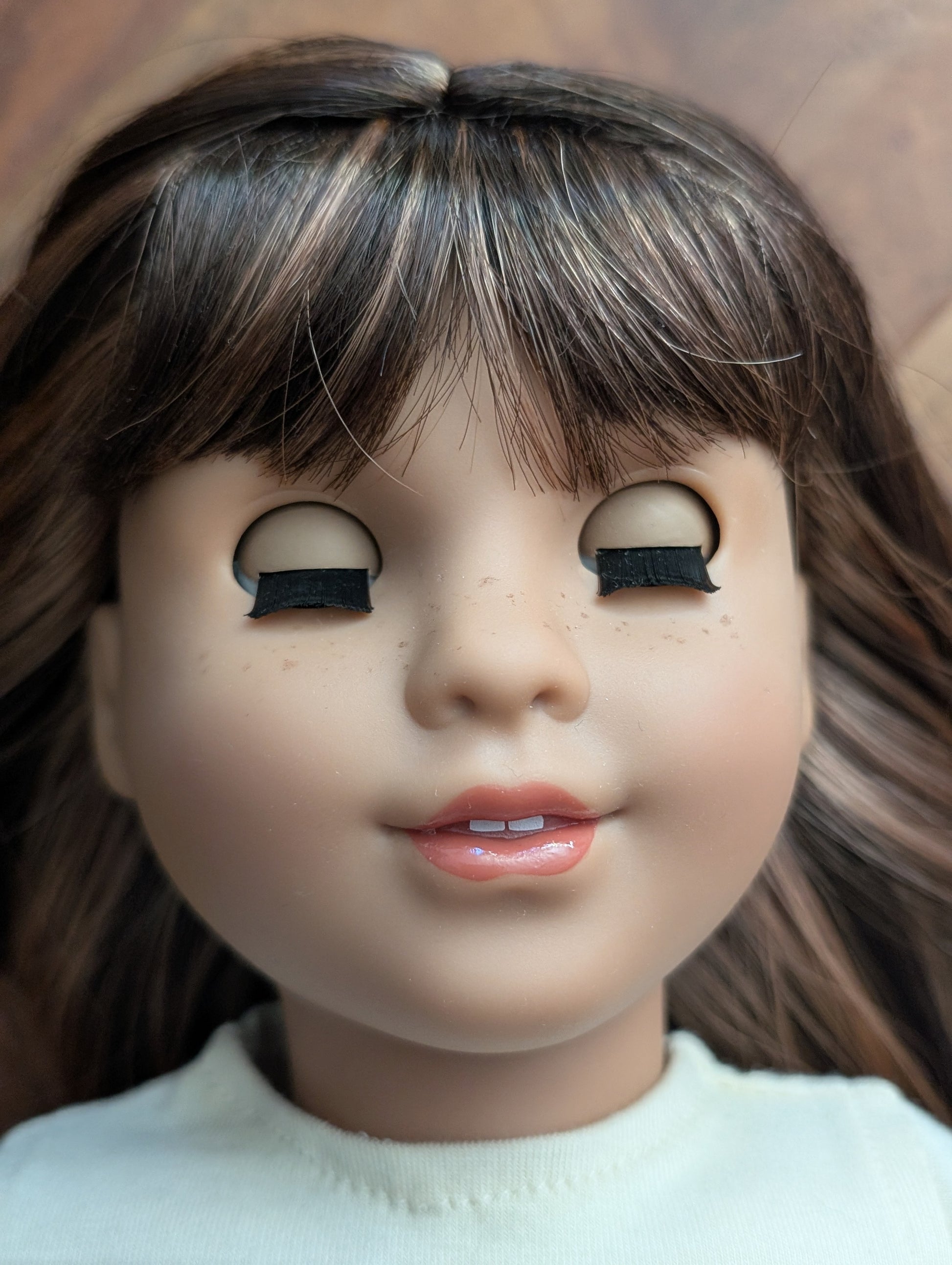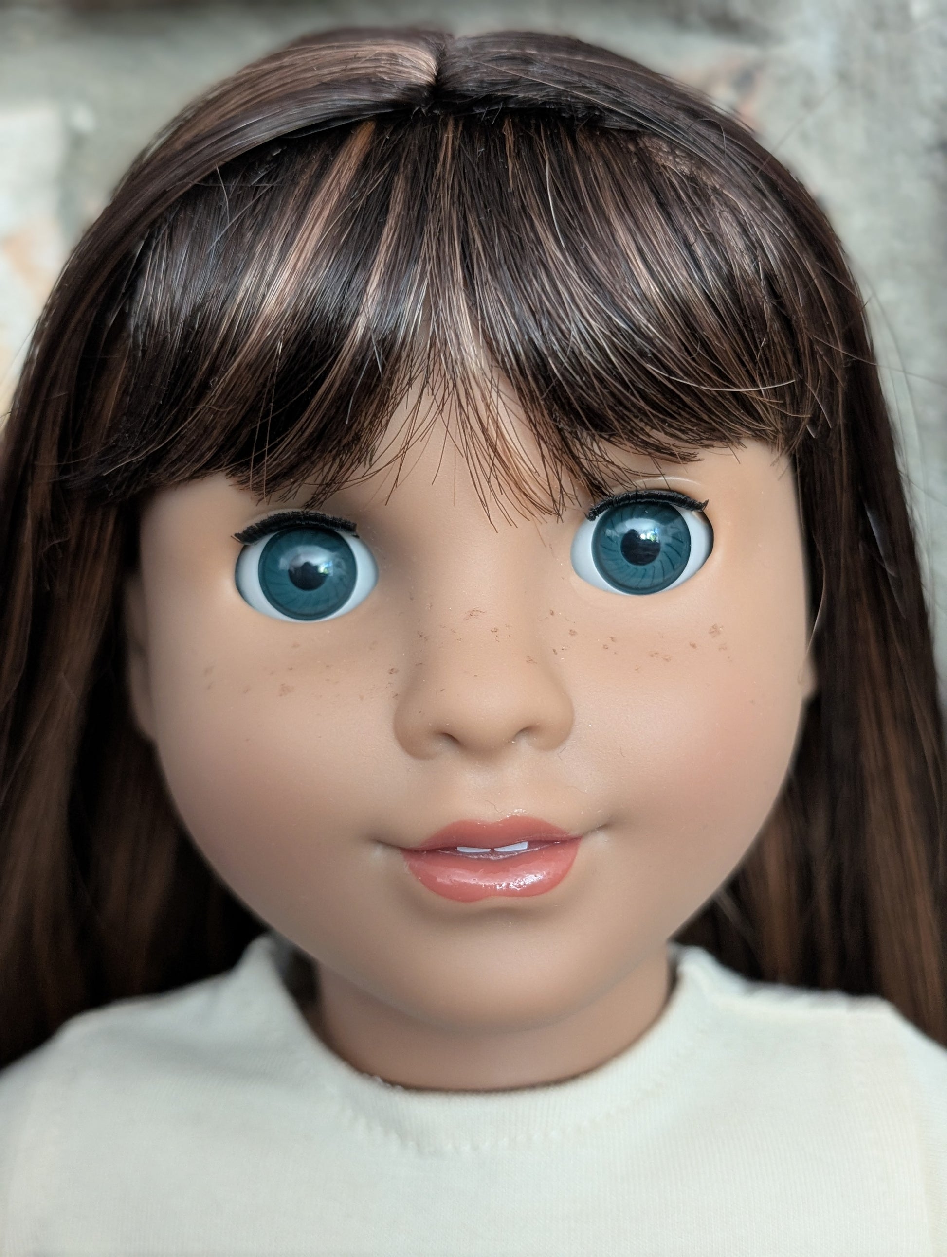 Reserved - brown hair, dark blue eyes, medium skin tone, Marie Grace face mold, freckles