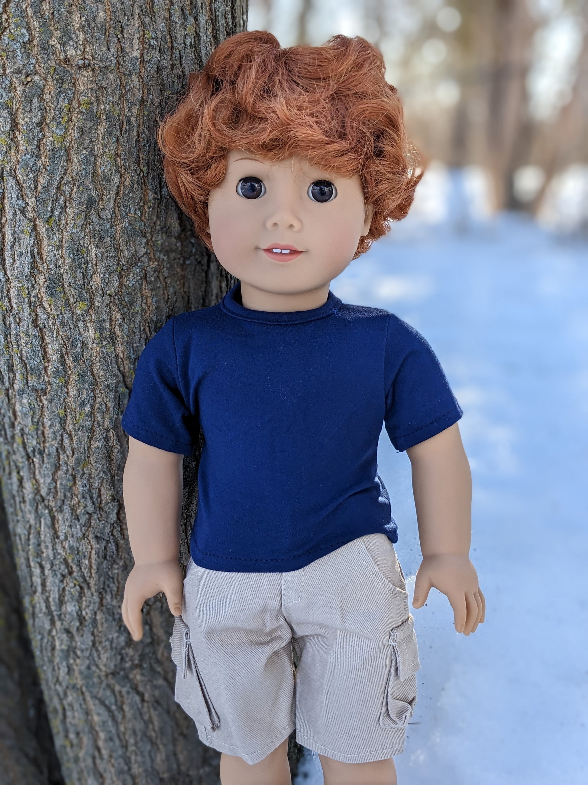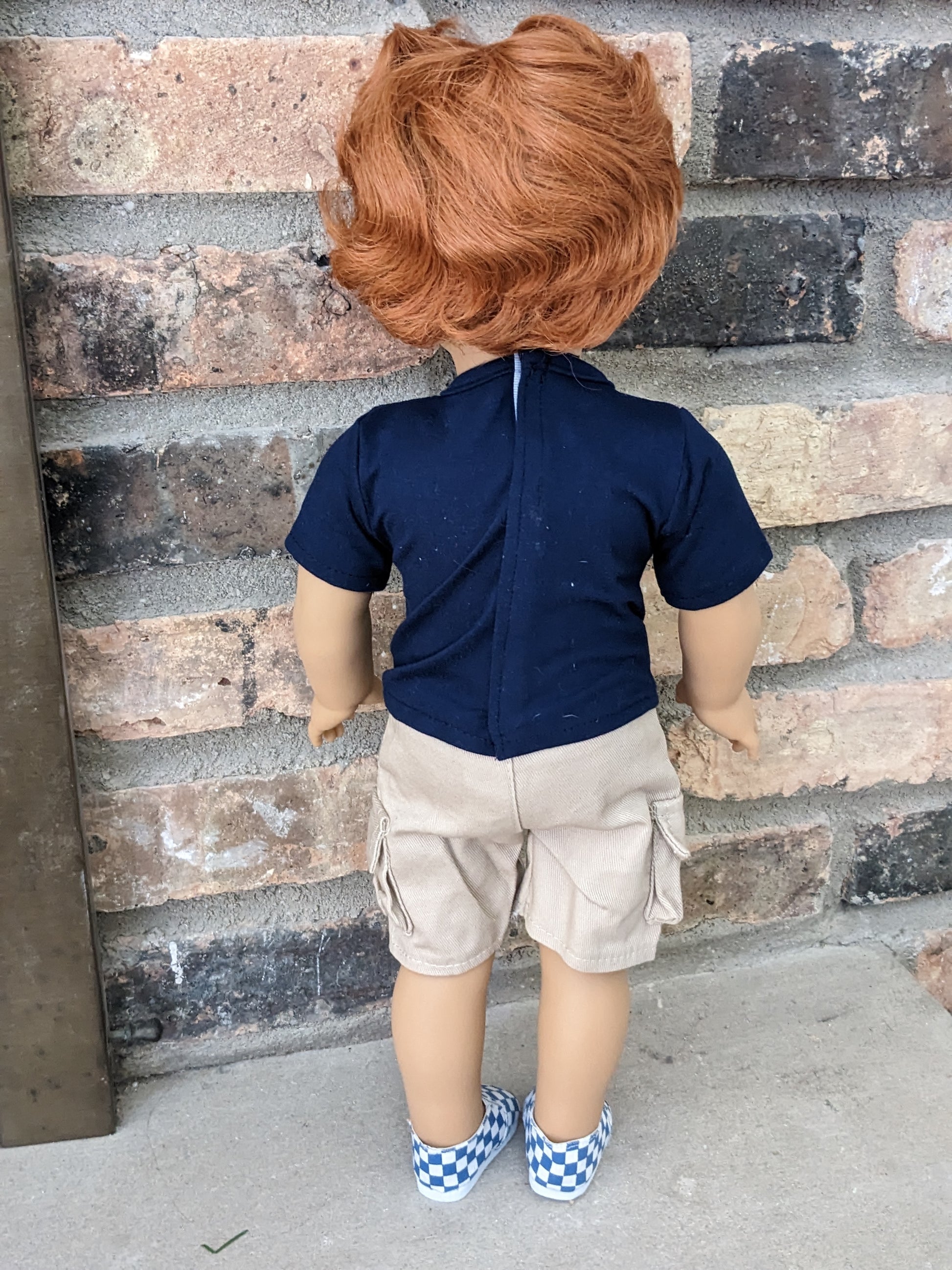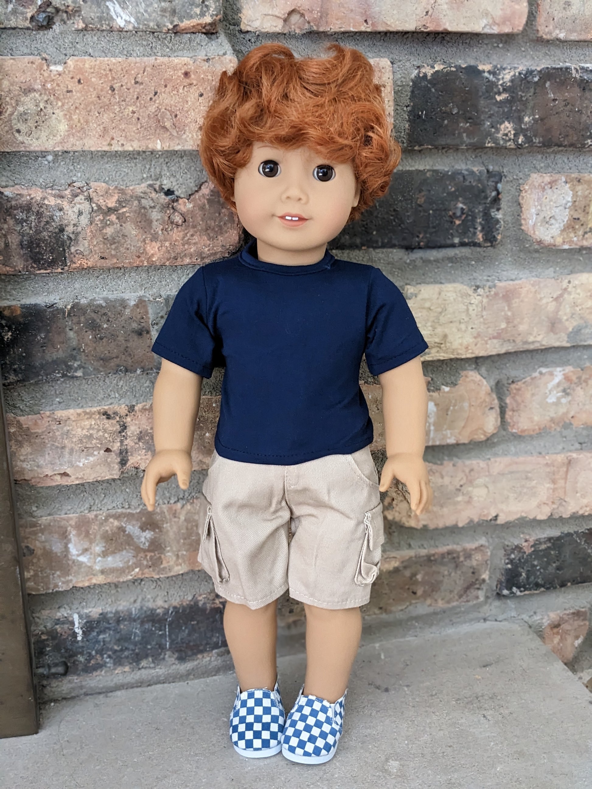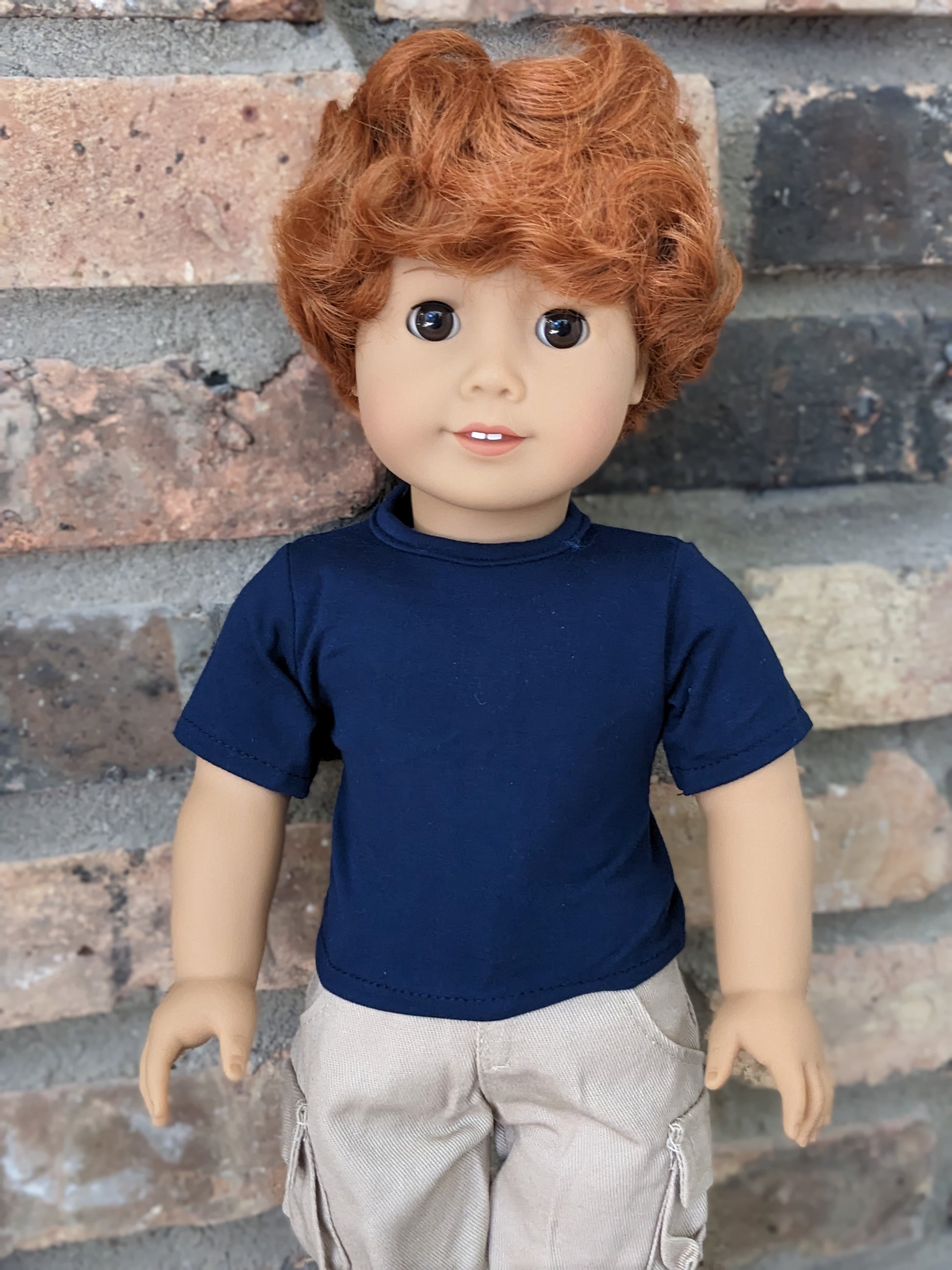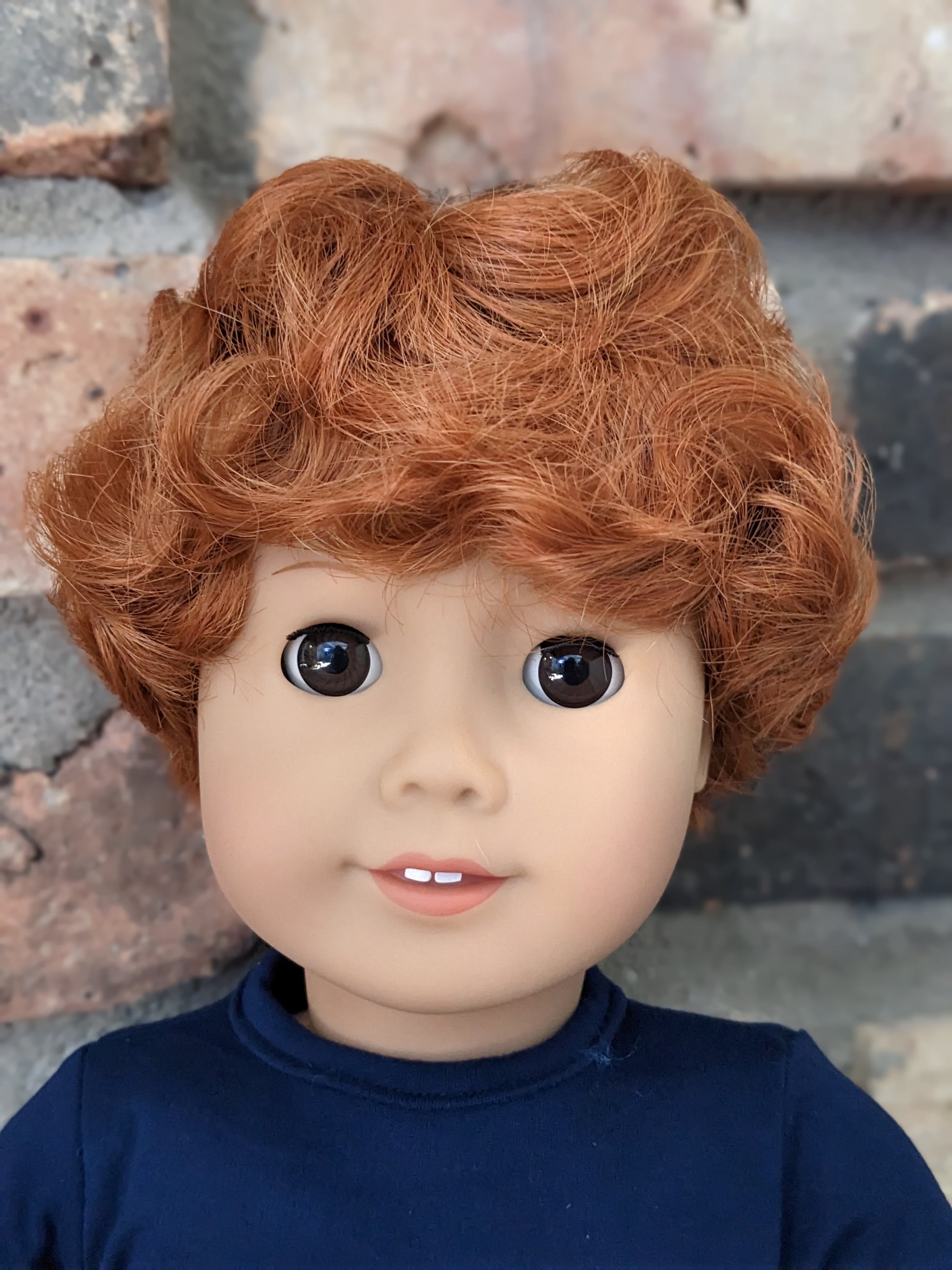 This one of a kind OOAK custom American Girl doll was created with a brand new Truly Me doll, a red wig, and brown eyes. He may have some minor shine marks from handling. He comes with the outfit pictured.