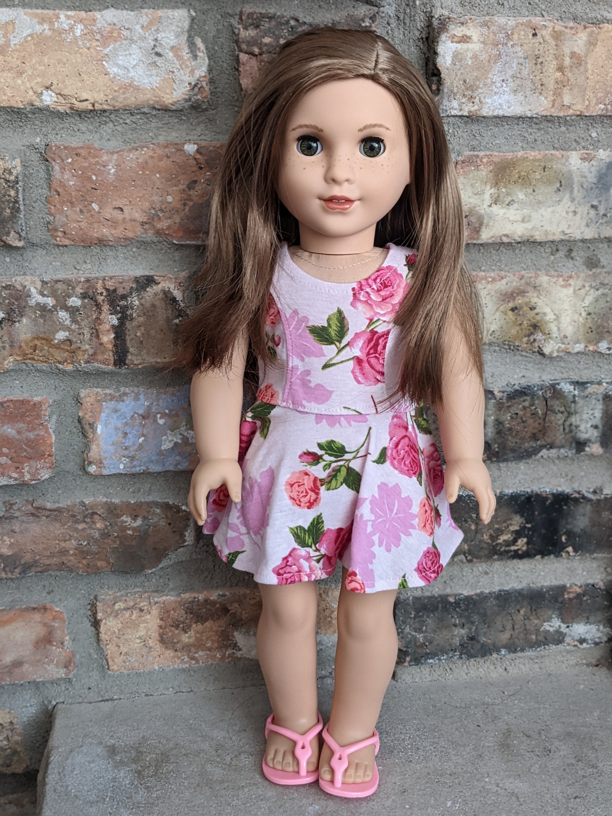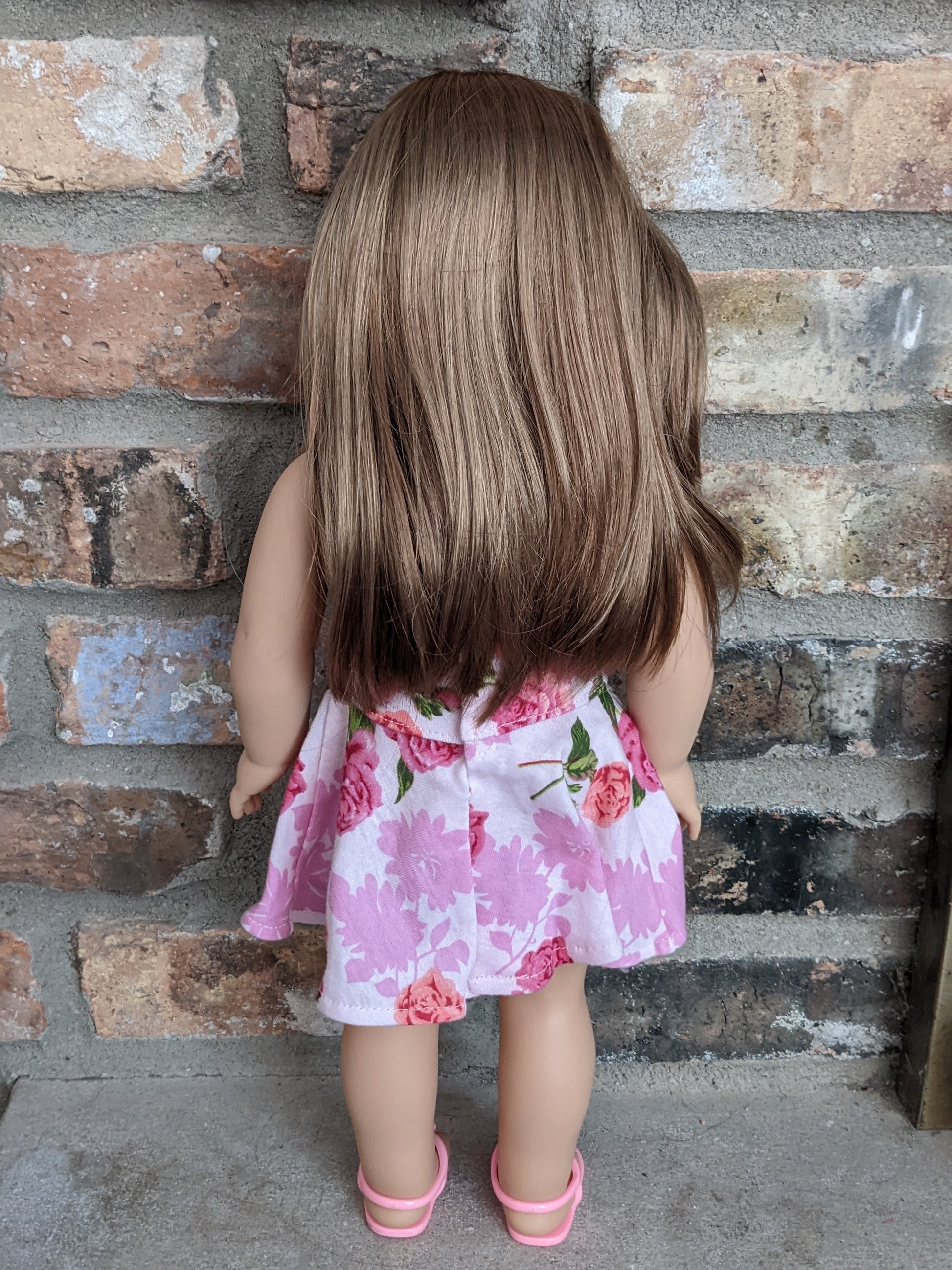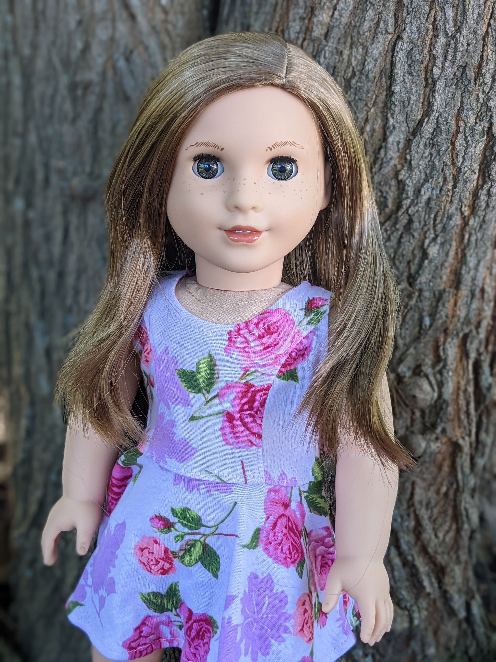 This one of a kind OOAK custom American Girl doll was created with a brand new Truly Me doll, a caramel brown wig, and hazel eyes. She has lip gloss and freckles that were hand painted and sealed. She may have some minor shine marks from handling. She comes with the outfit pictured.
