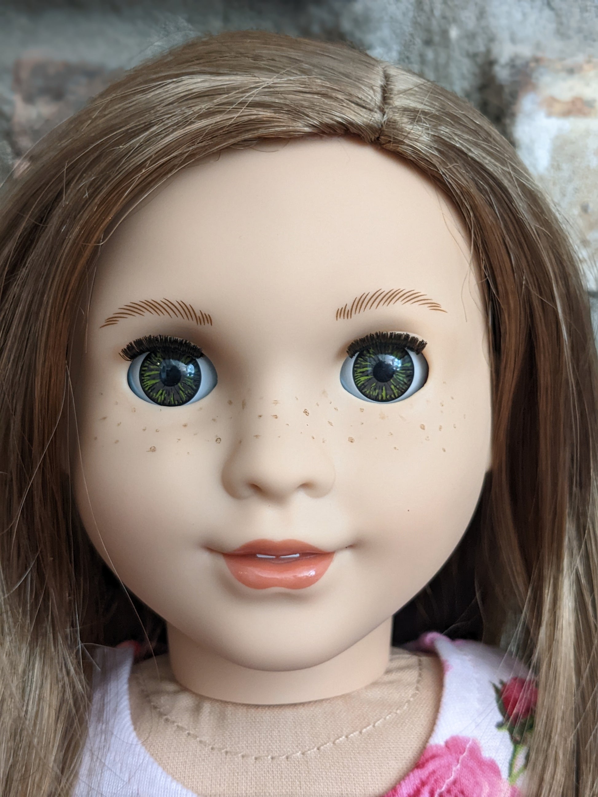 Custom - caramel brown hair, hazel eyes, lightest skin tone, Marie Grace face mold