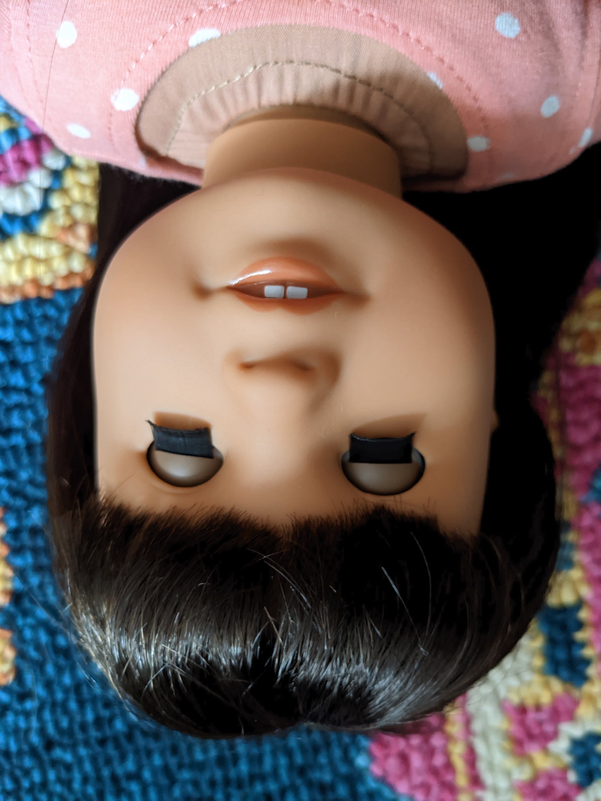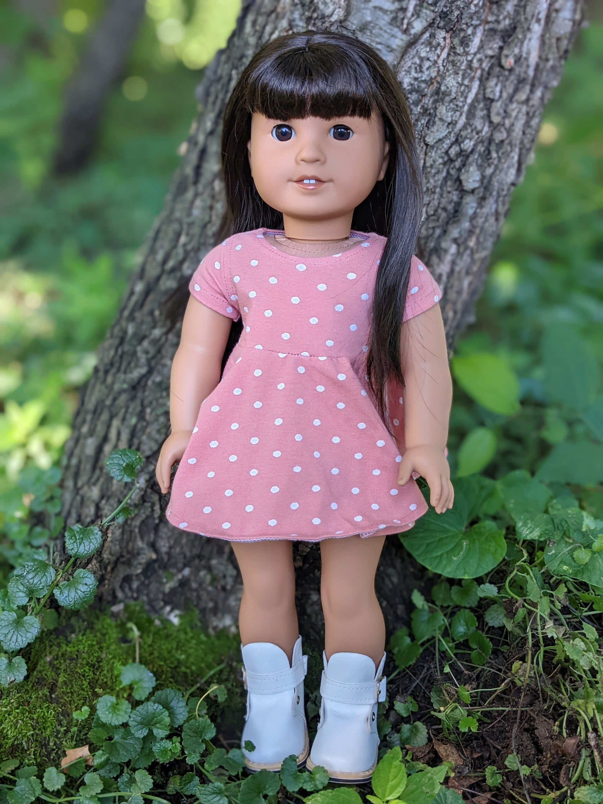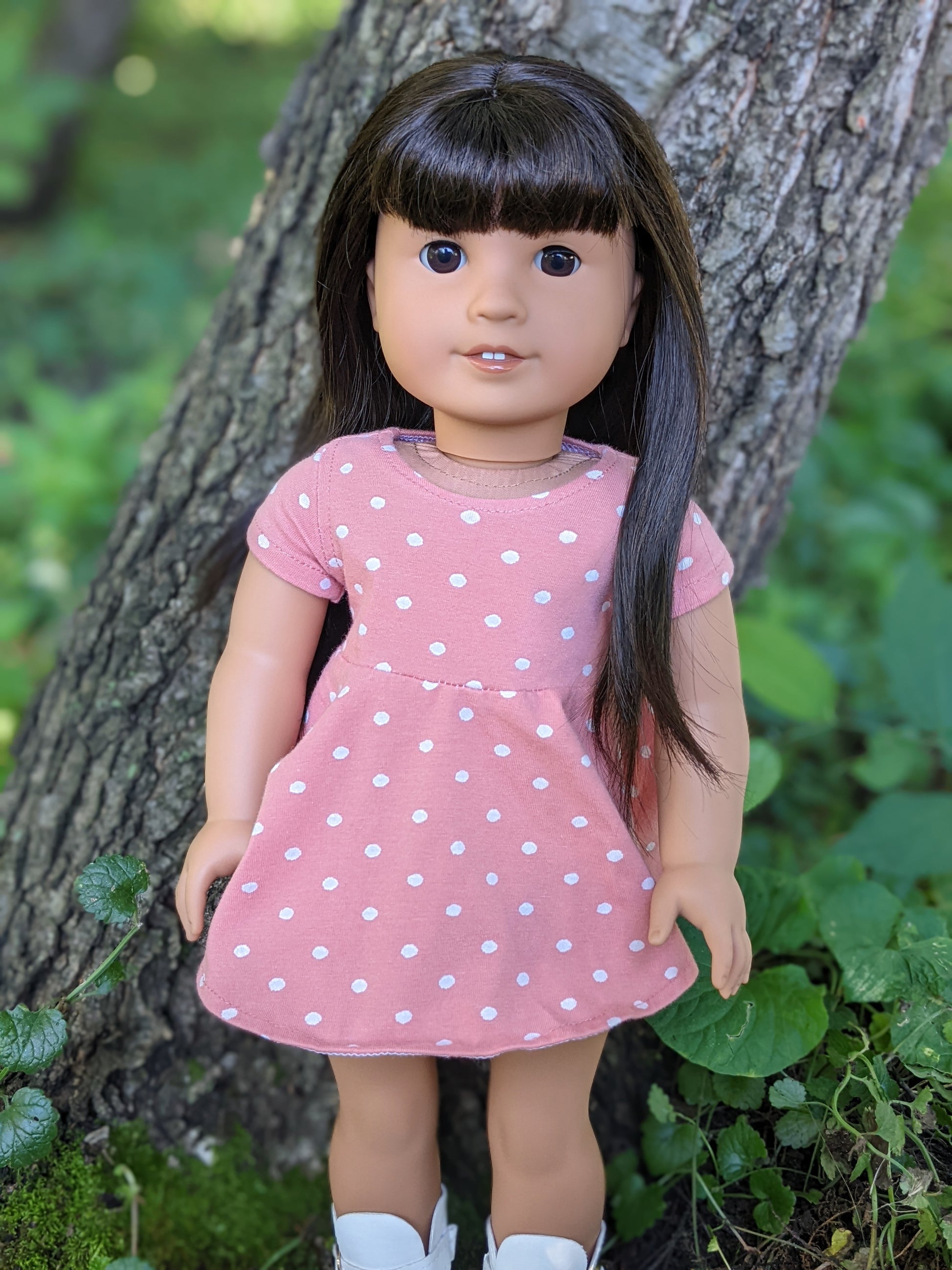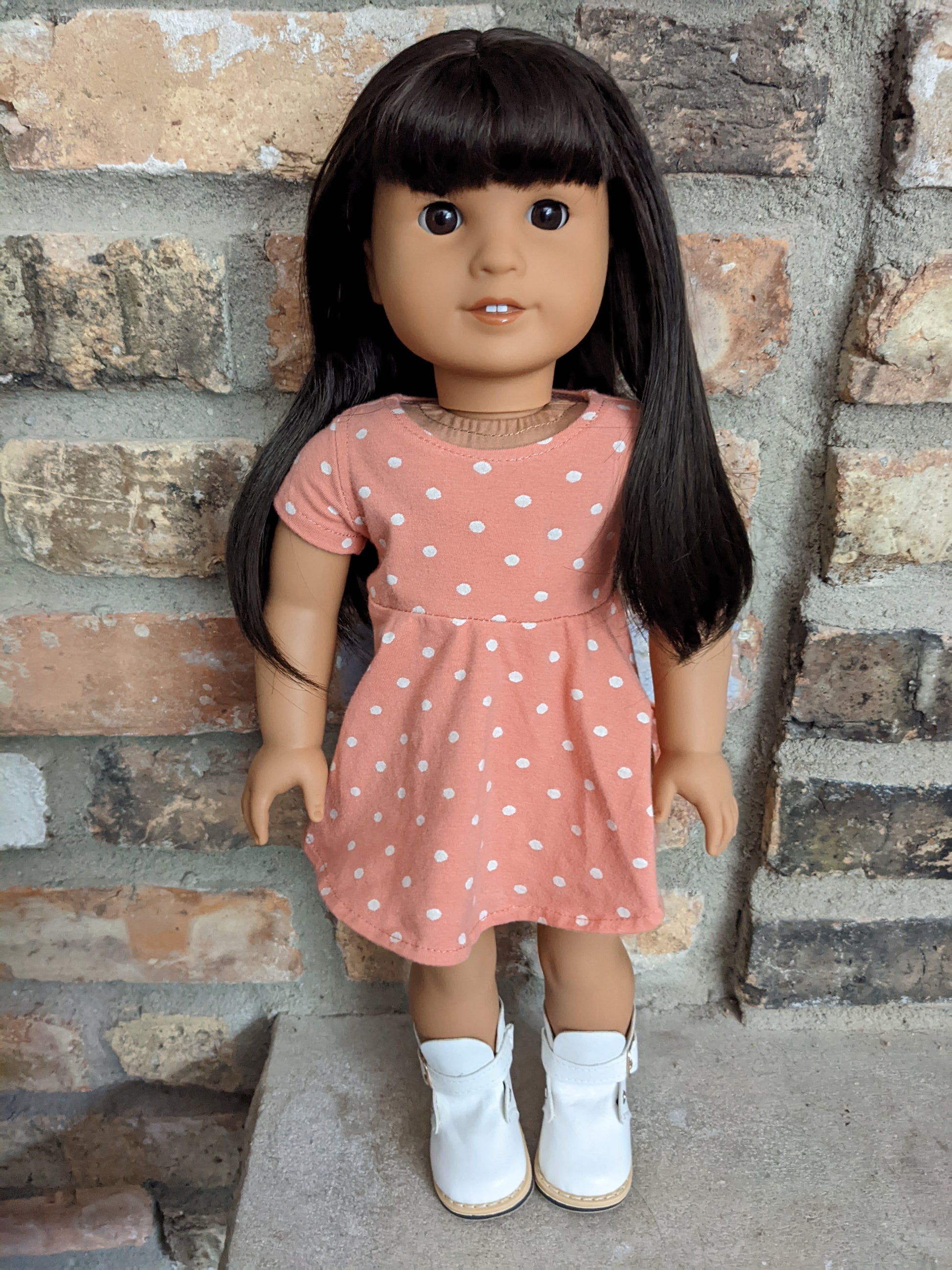 This one of a kind OOAK custom American Girl doll was created with a brand new Truly Me doll, a dark brown wig from a new TM doll, and brown eyes. She has lip gloss that was hand painted and sealed. She may have some minor shine marks from handling. She comes with the outfit pictured. She has a microfiber cloth body.