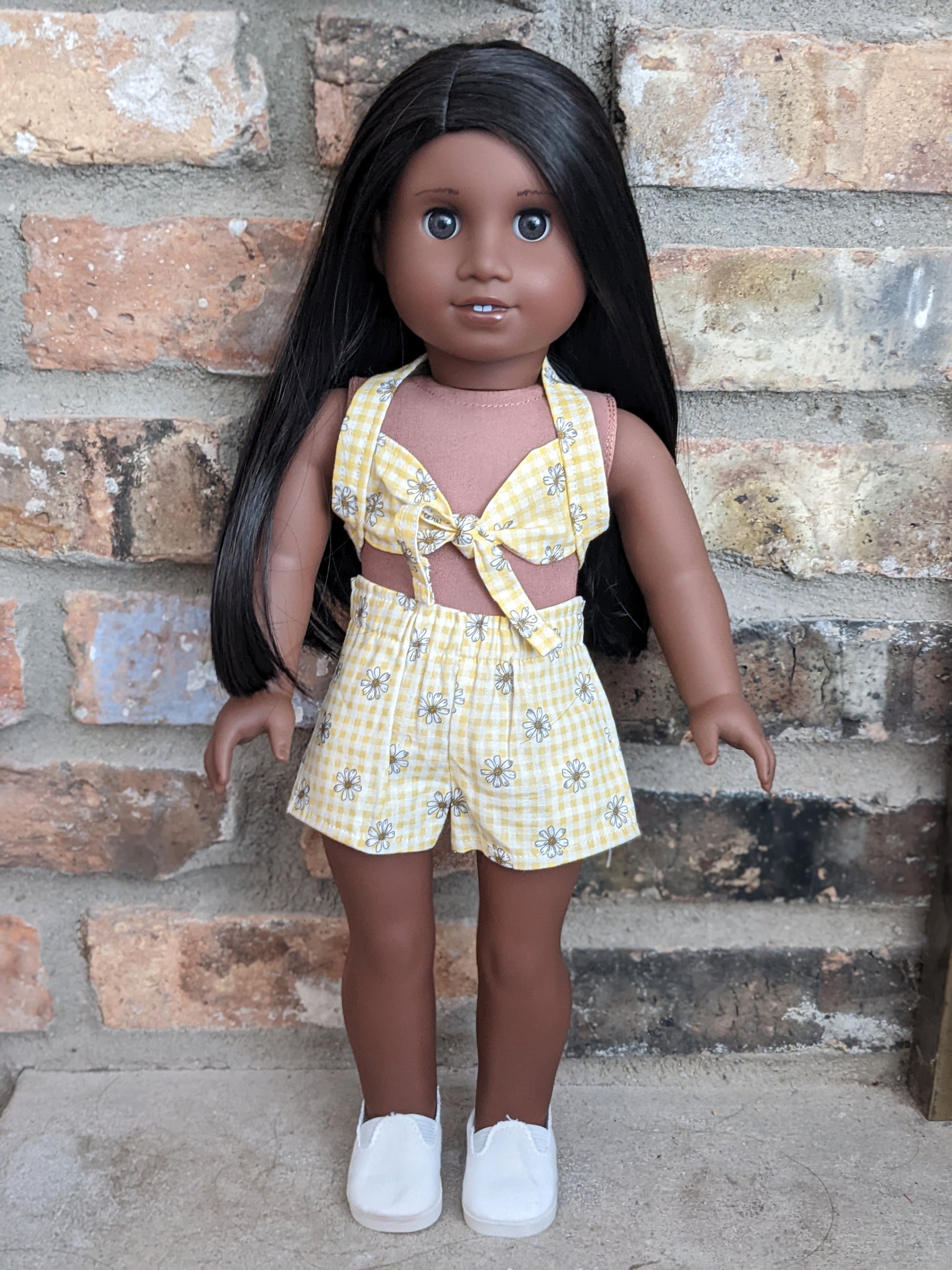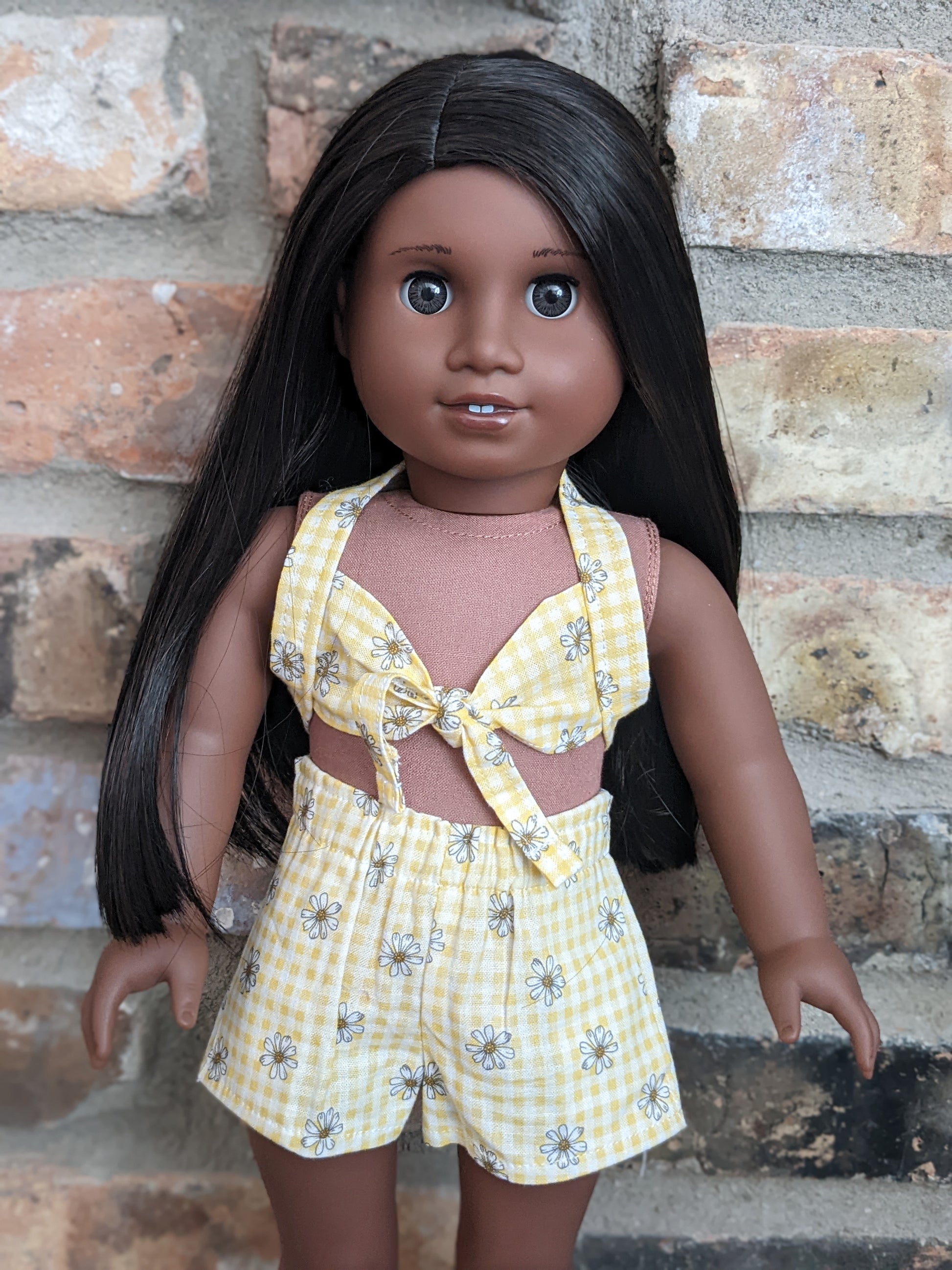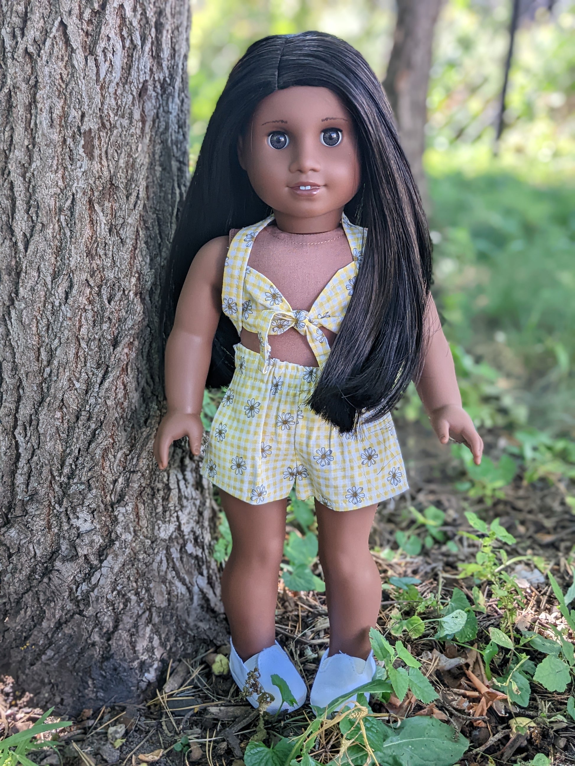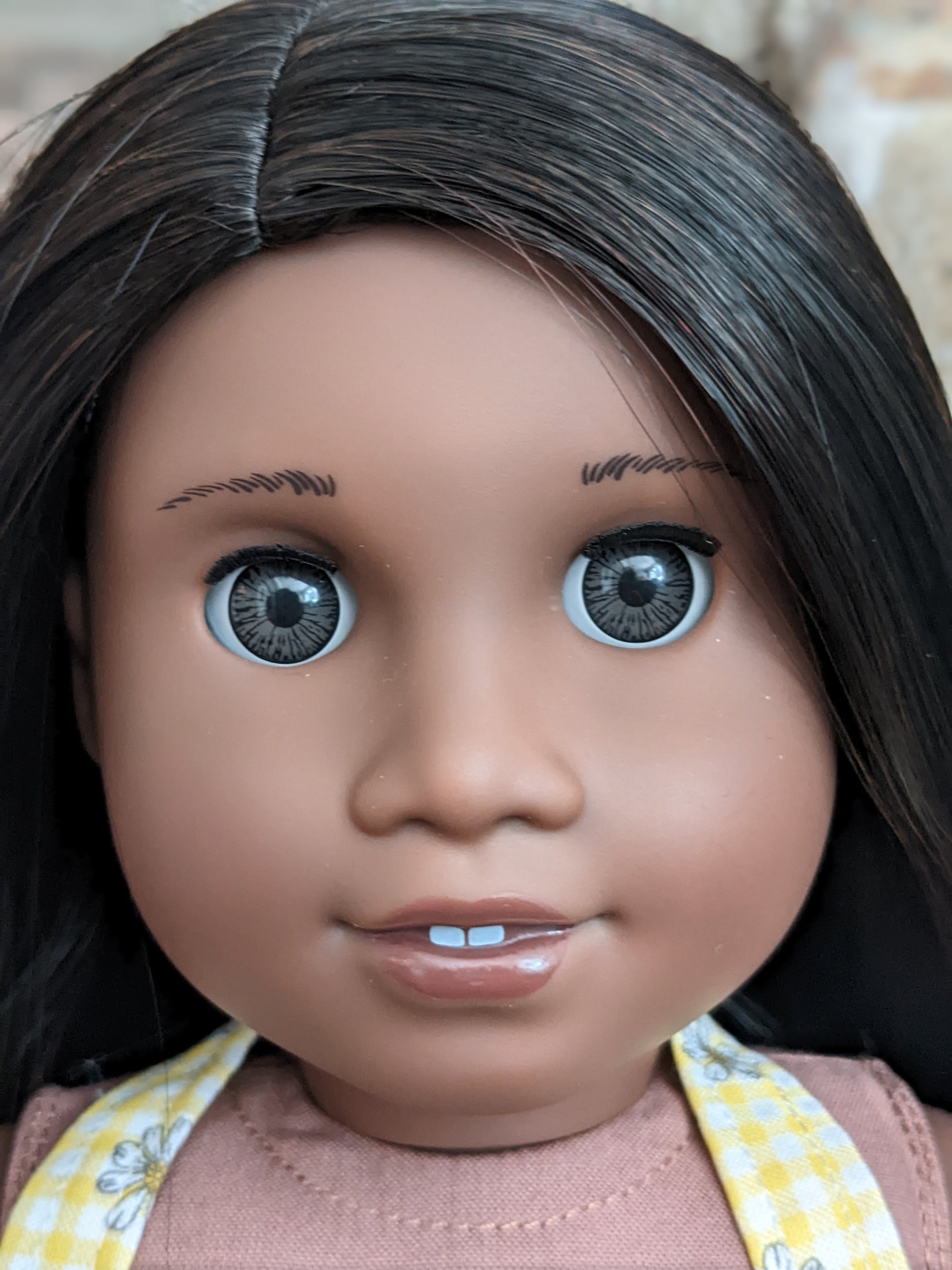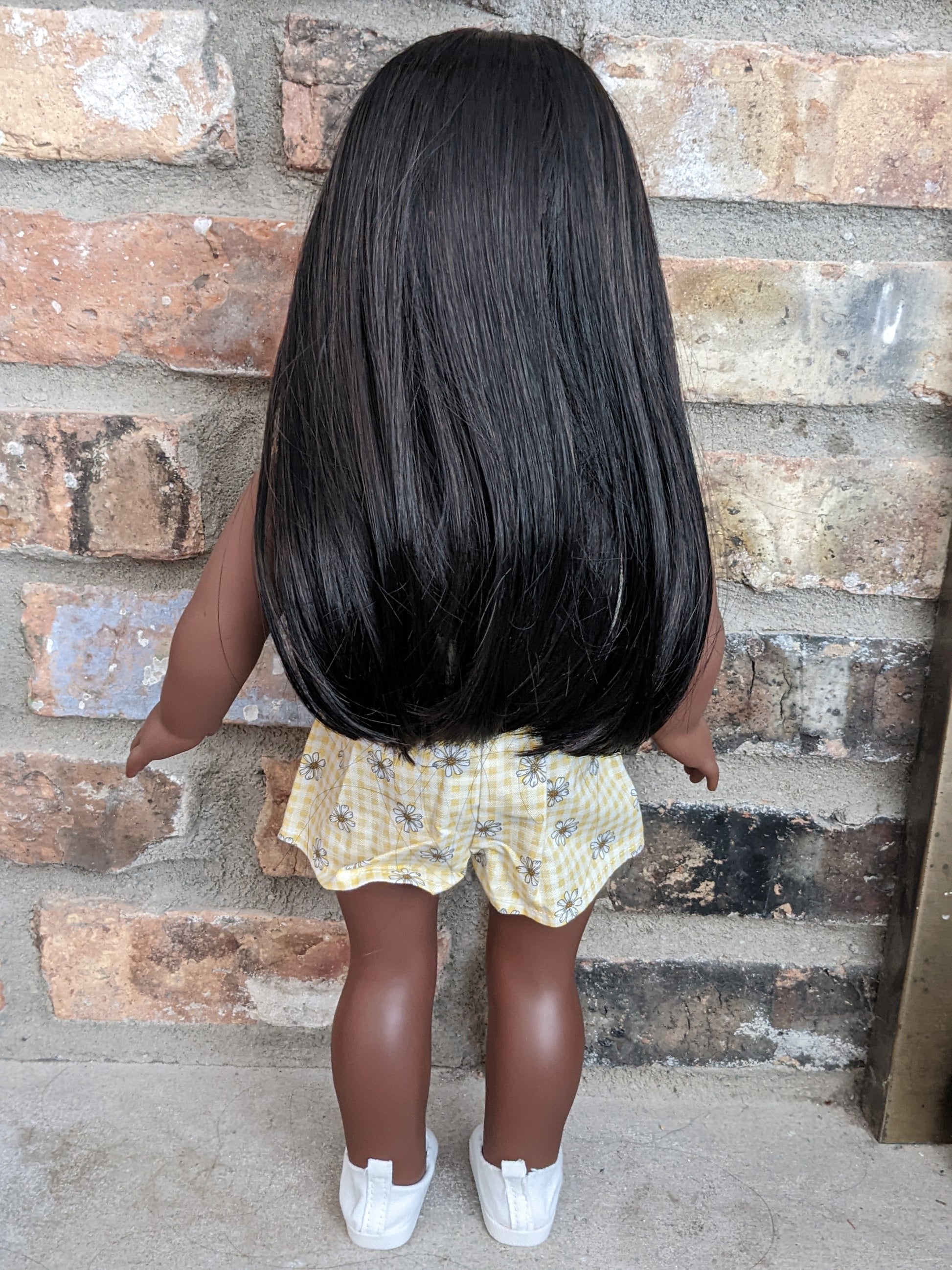 This one of a kind OOAK custom American Girl doll was created with a brand new Truly Me doll, a wig from a new TM doll, and brown decal eyes. She has lip gloss that was hand painted and sealed. She may have some minor shine marks from handling. She comes with the outfit pictured.