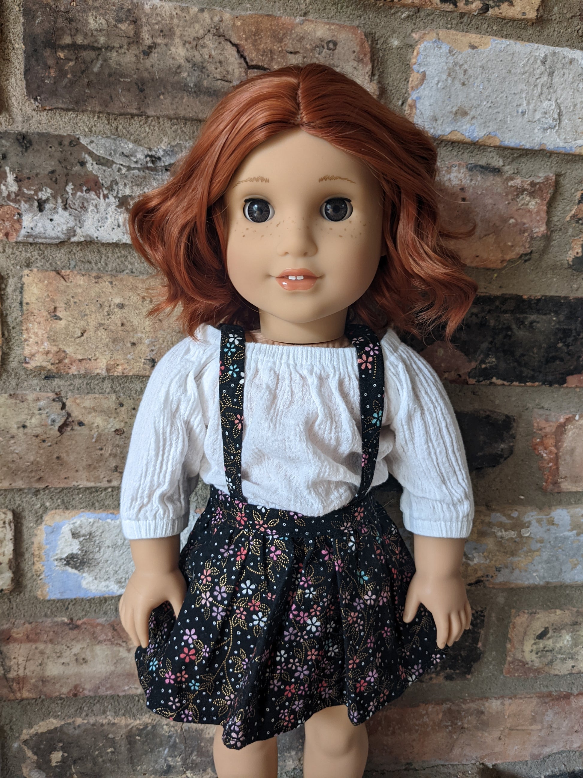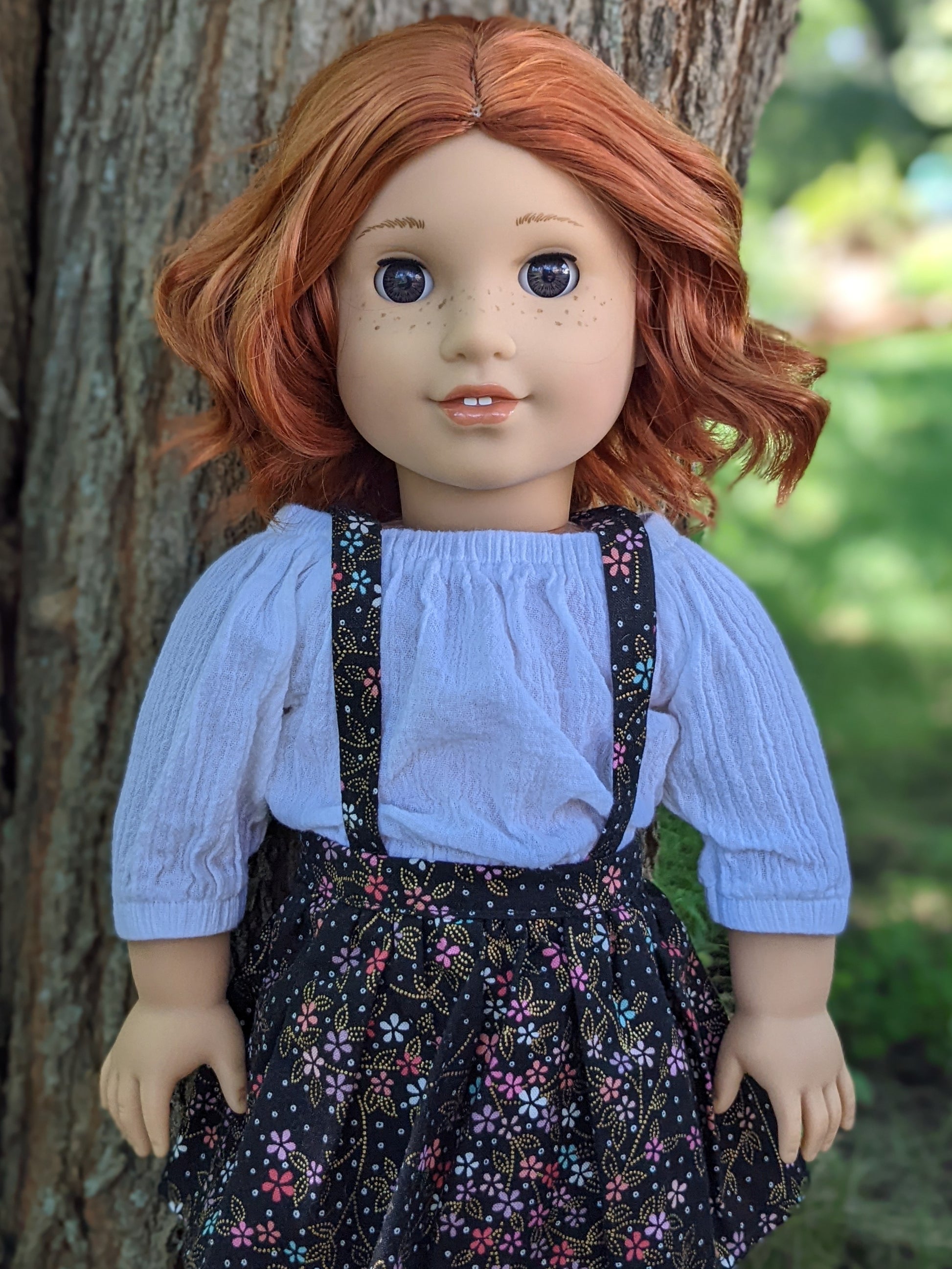 This one of a kind OOAK custom American Girl doll was created with a brand new Rebecca doll, a red wavy wig, and brown decal eyes from a Samantha doll. She has lip gloss and freckles that were hand painted and sealed. She may have some minor shine marks from handling. She comes with the outfit pictured. She has the microfiber cloth body.