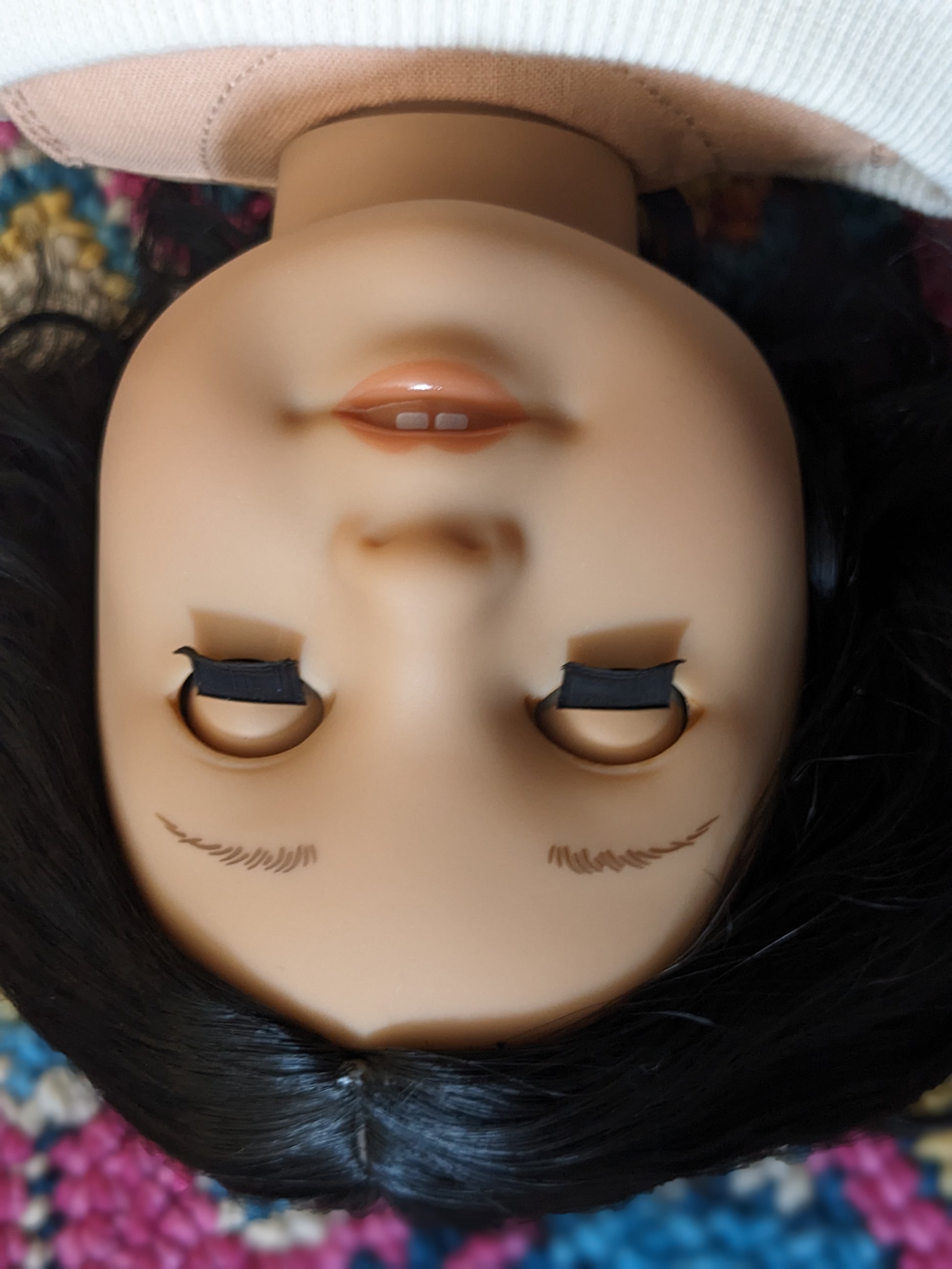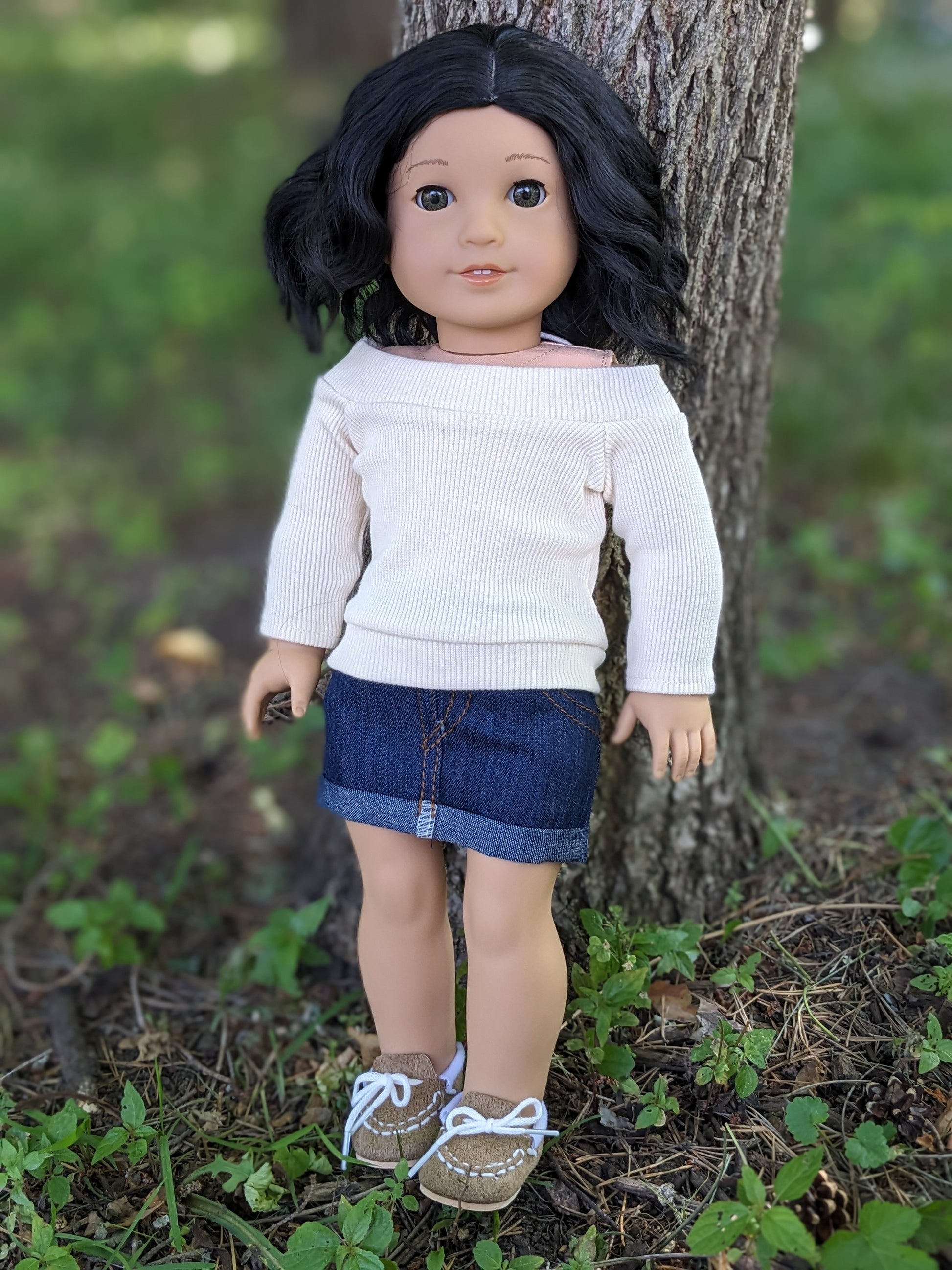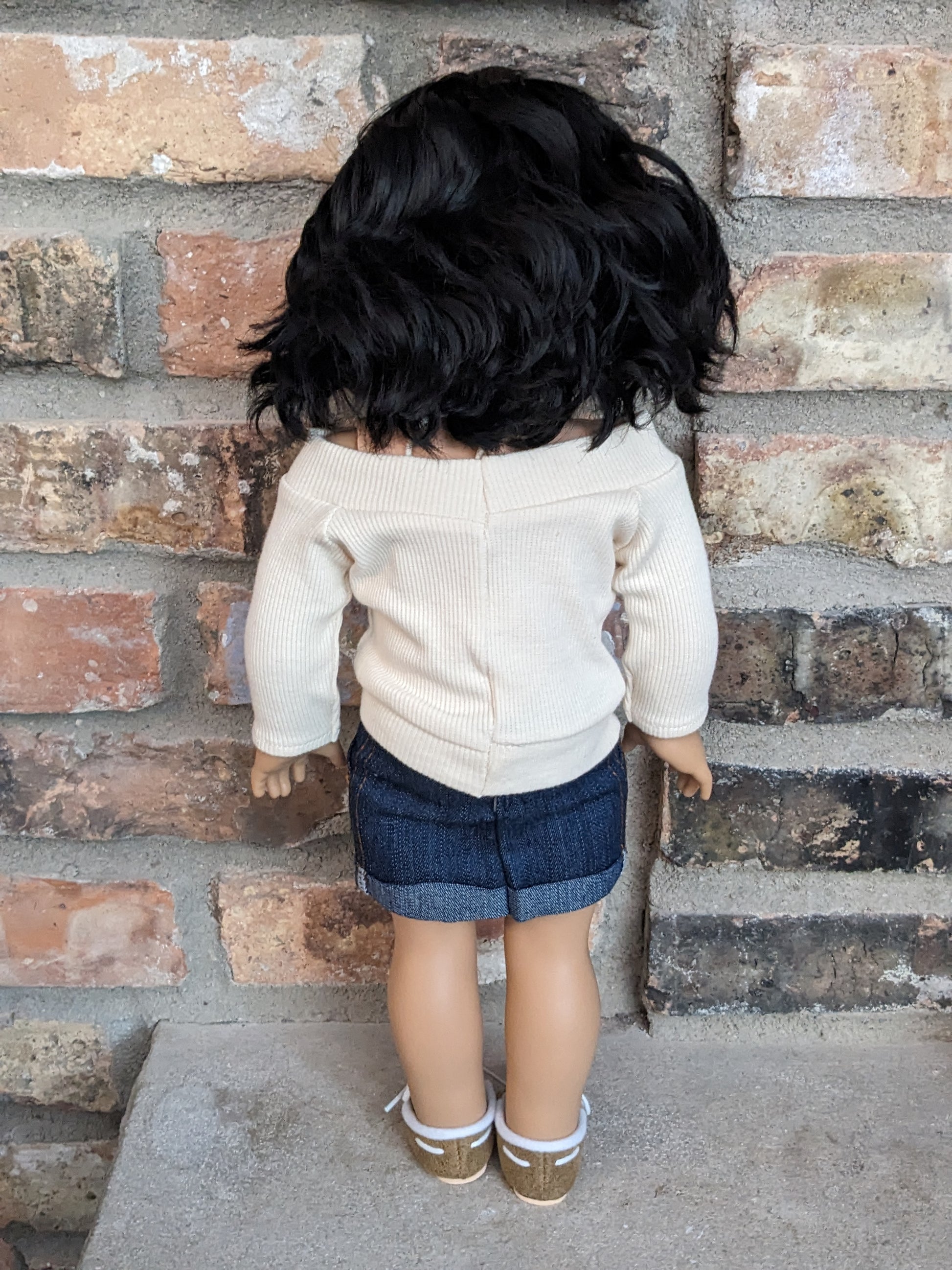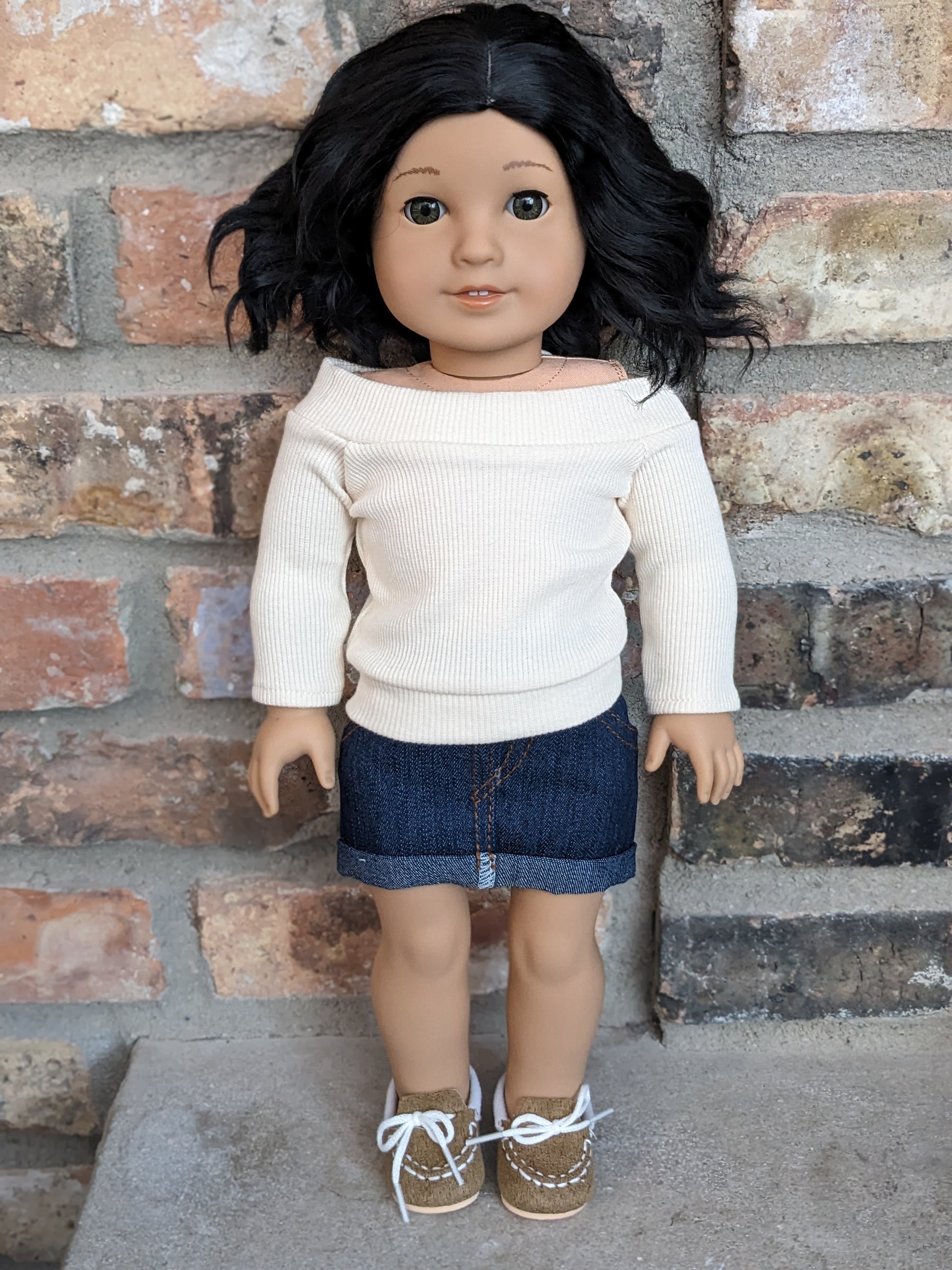 This one of a kind OOAK custom American Girl doll was created with a brand new Truly Me doll, a black wig, and hazel eyes. She has lip gloss that was hand painted and sealed. She may have some minor shine marks from handling. She comes with the outfit pictured. She has a microfiber cloth body.