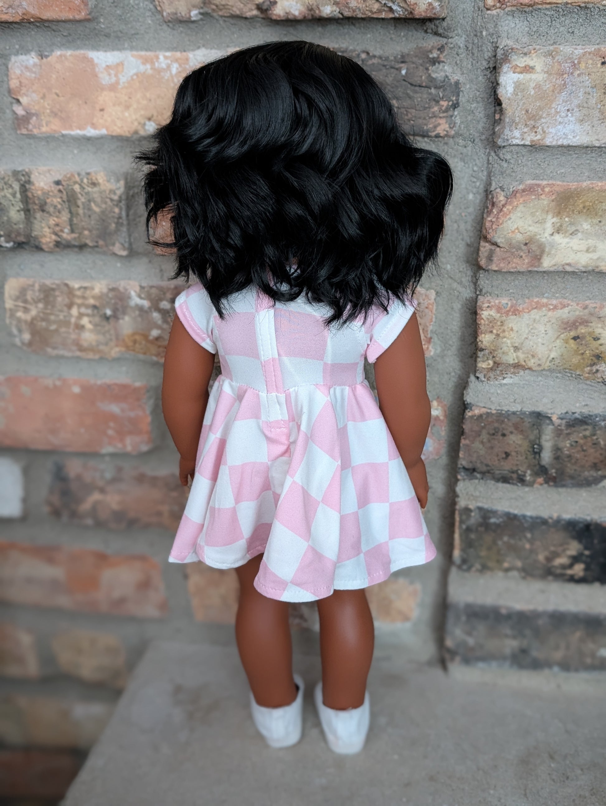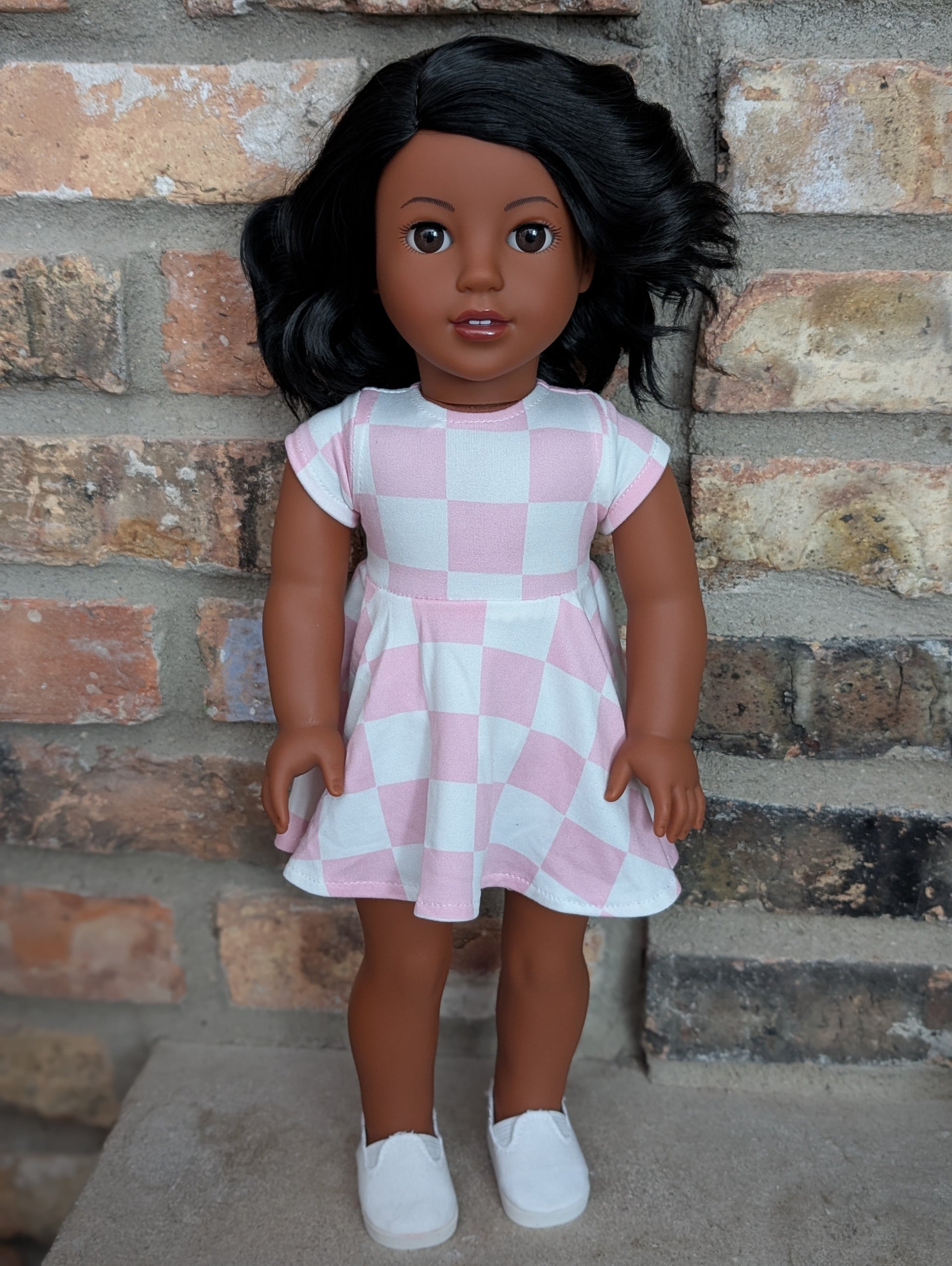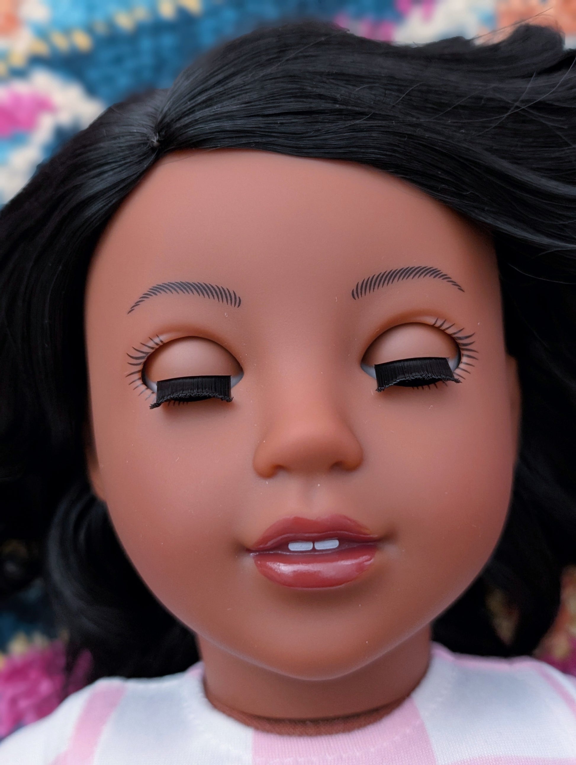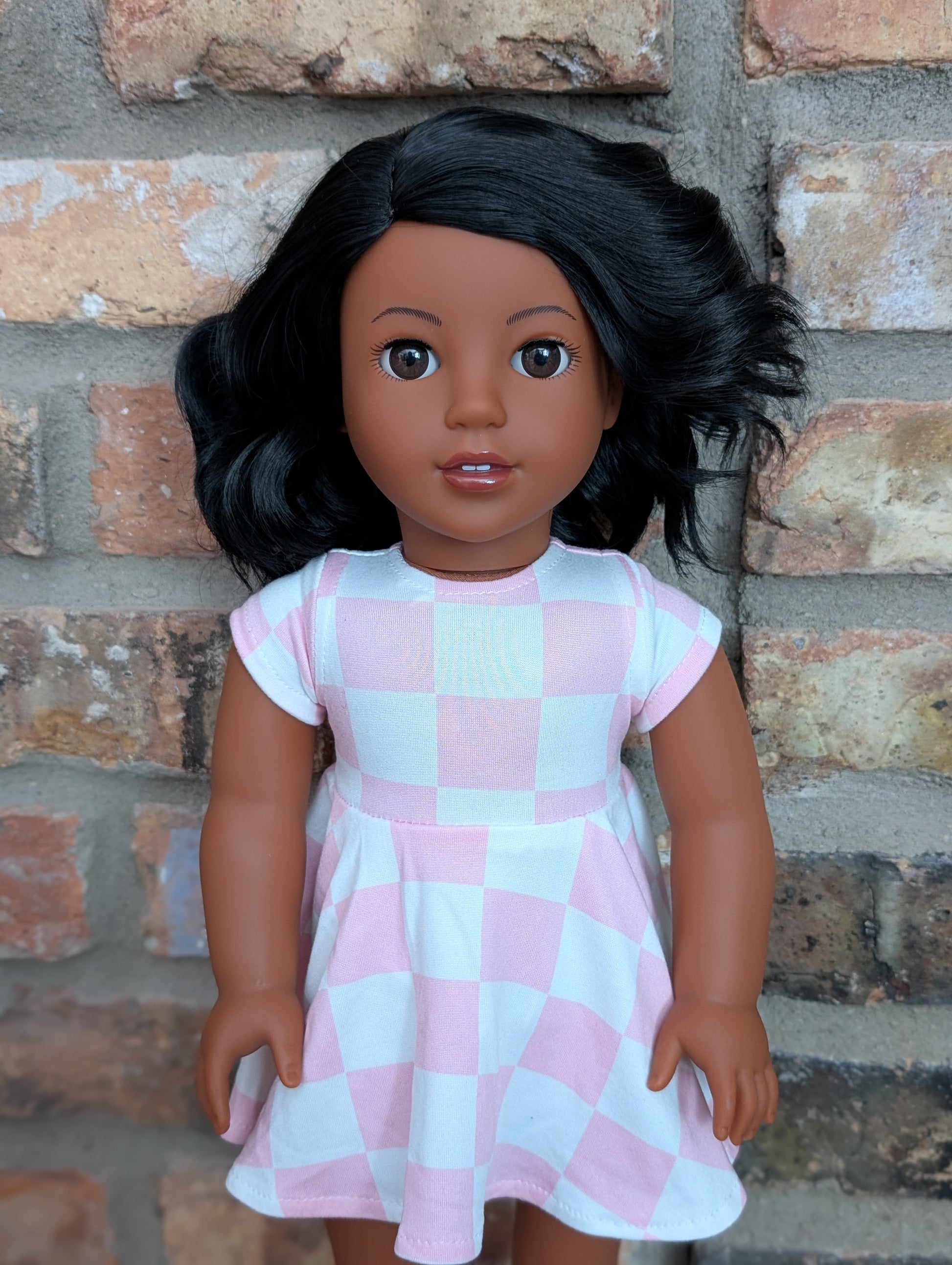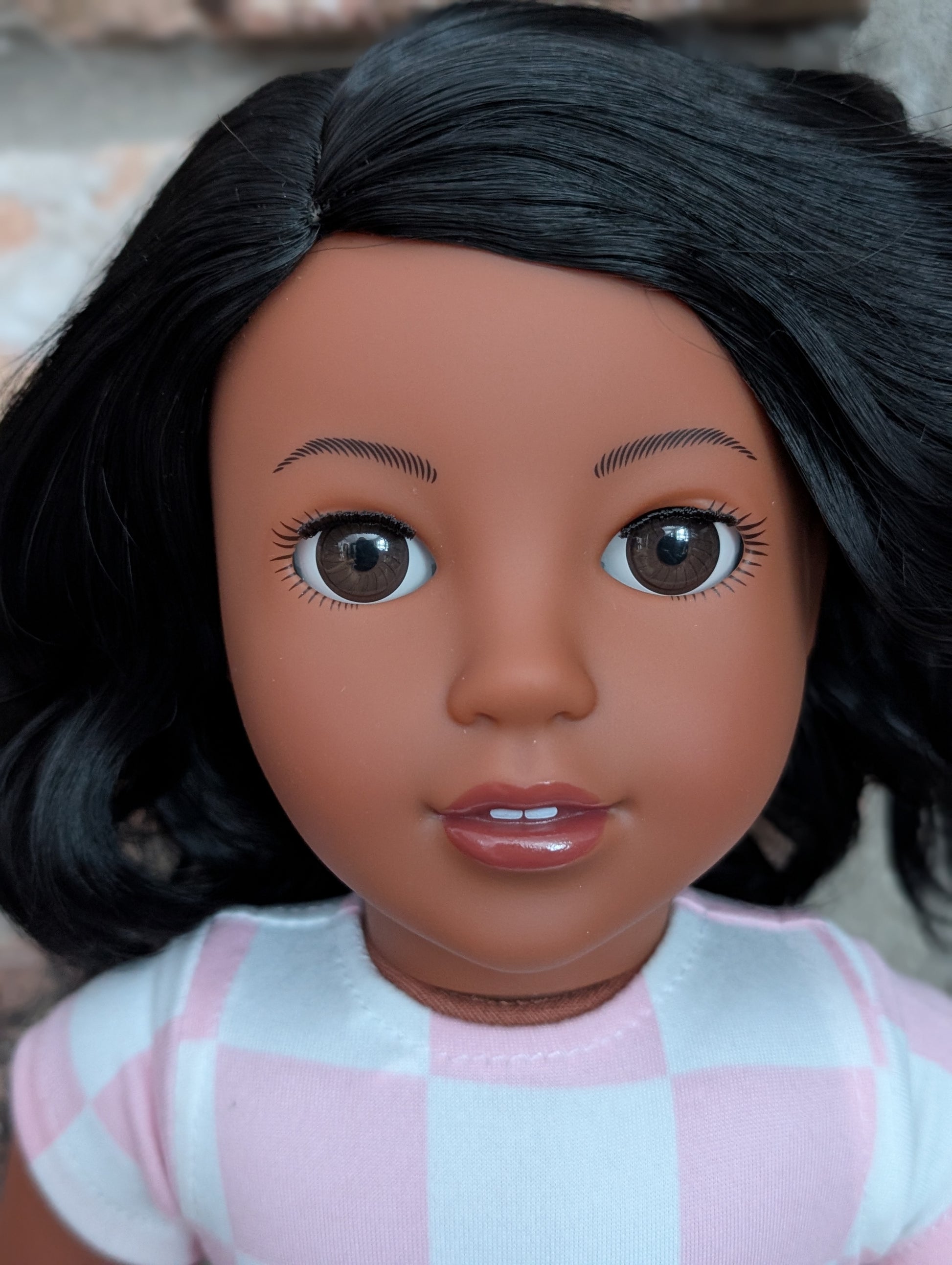 This one of a kind OOAK custom American Girl doll was created with a brand new Moana doll, a black wig, and brown eyes. She has lip gloss that was hand painted and sealed. She may have some minor shine marks from handling. She comes with the outfit pictured.