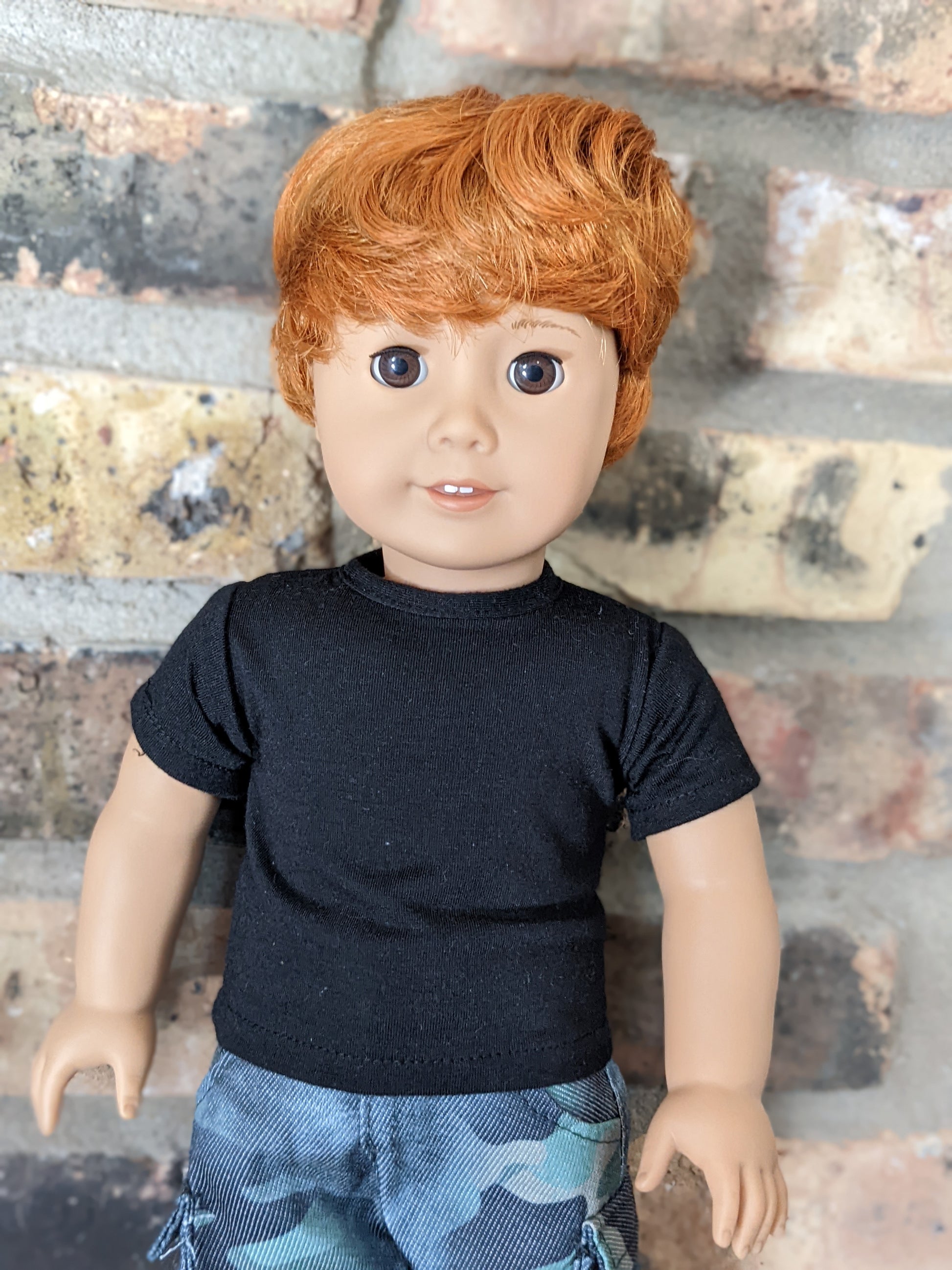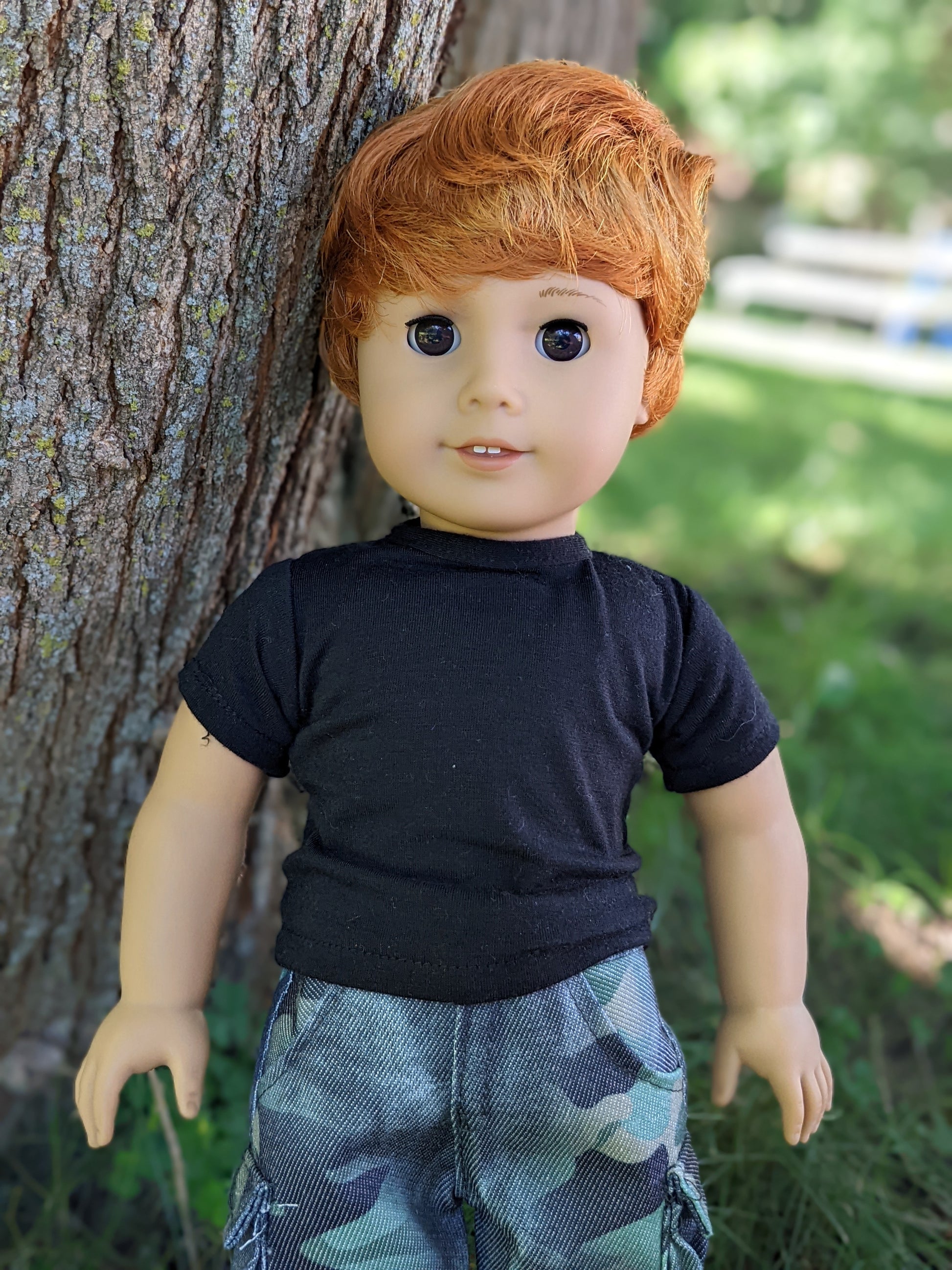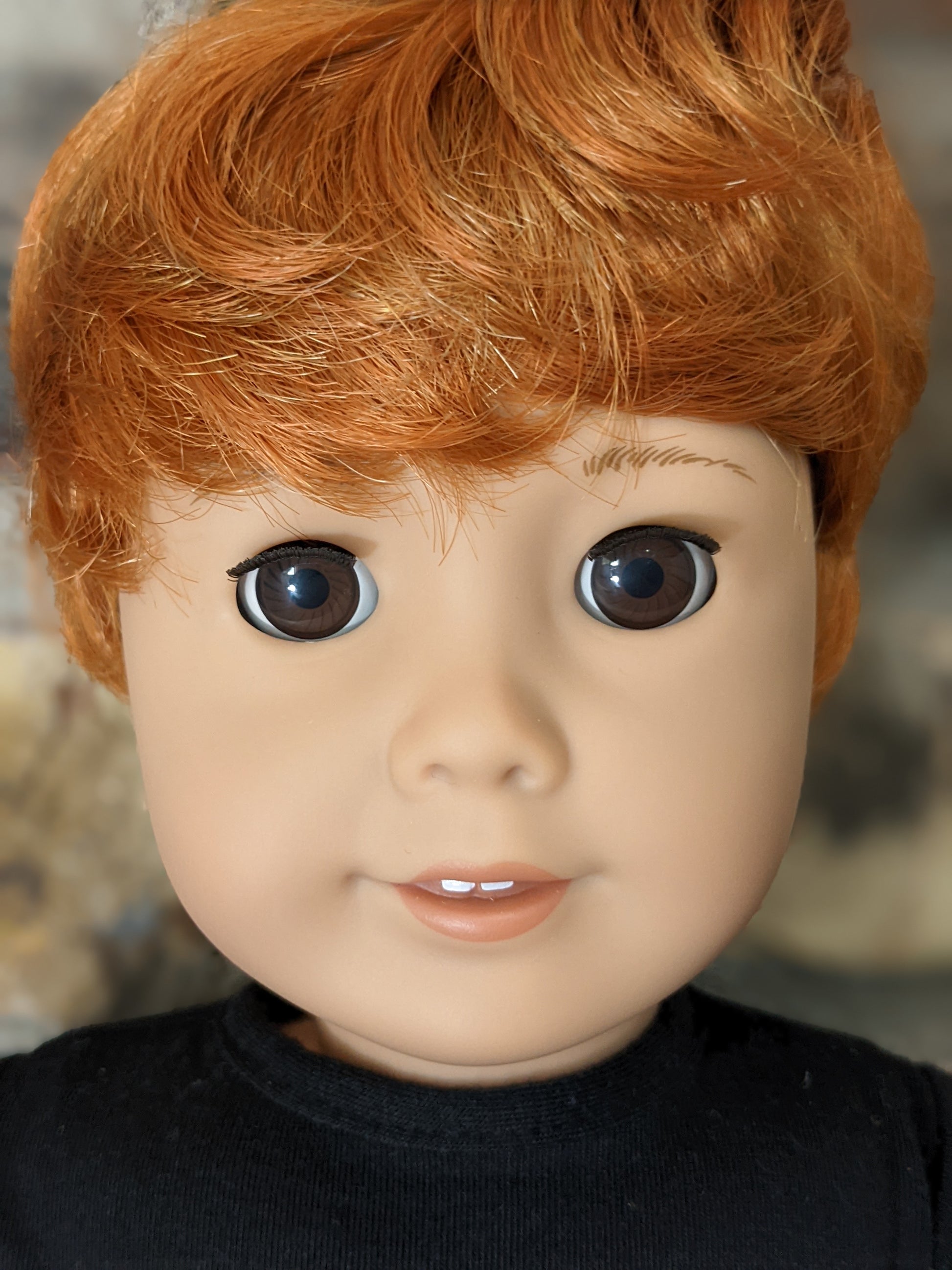 This one of a kind OOAK custom American Girl doll was created with a brand new Truly Me doll, a red wig, and brown eyes. He may have some minor shine marks from handling. He comes with the outfit pictured.