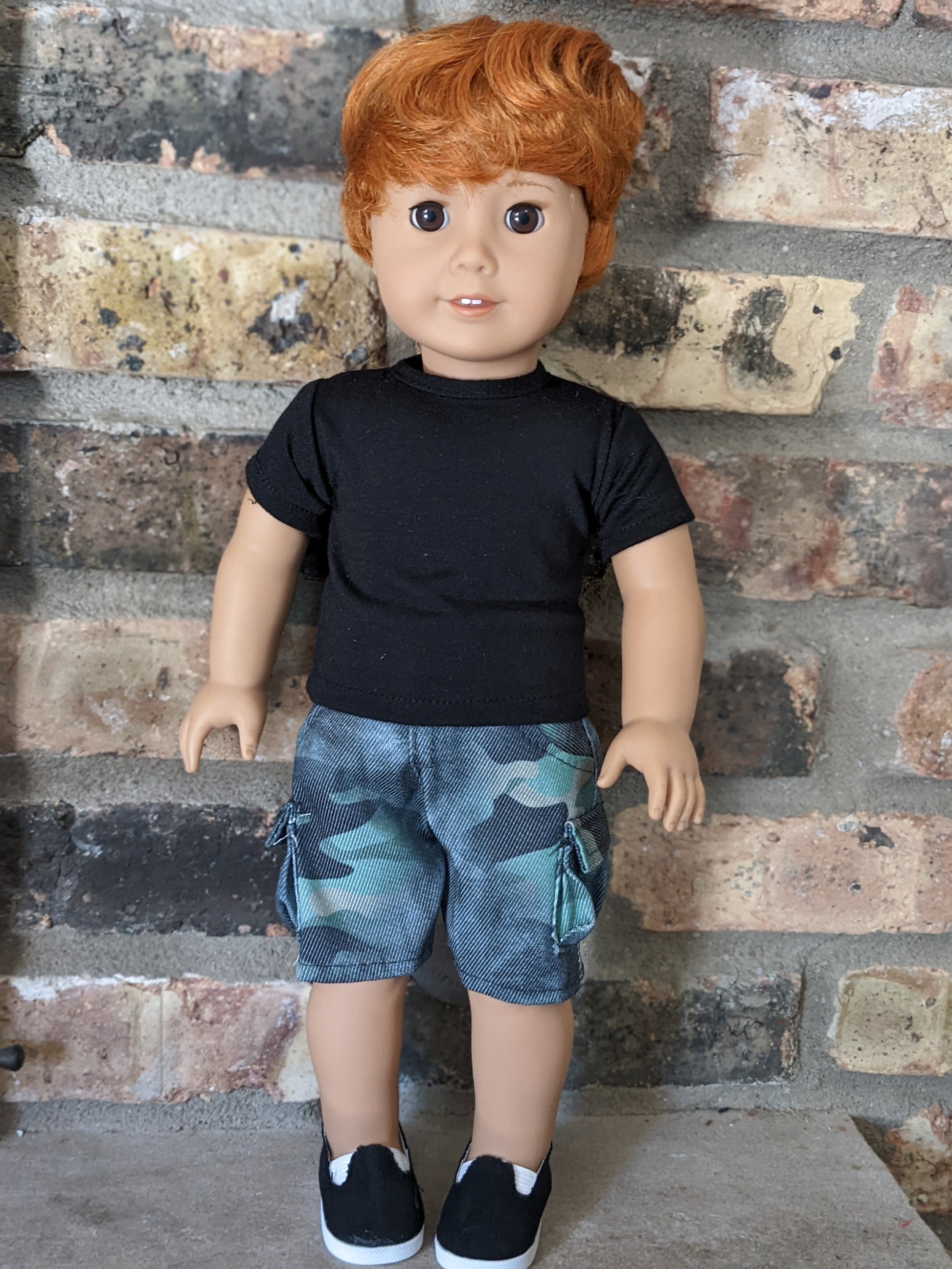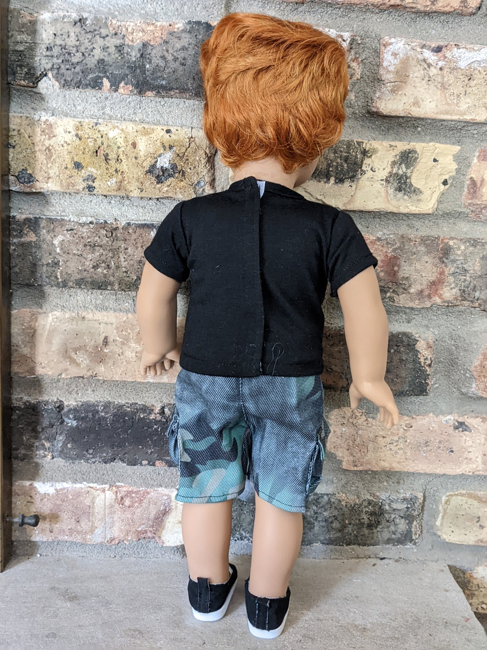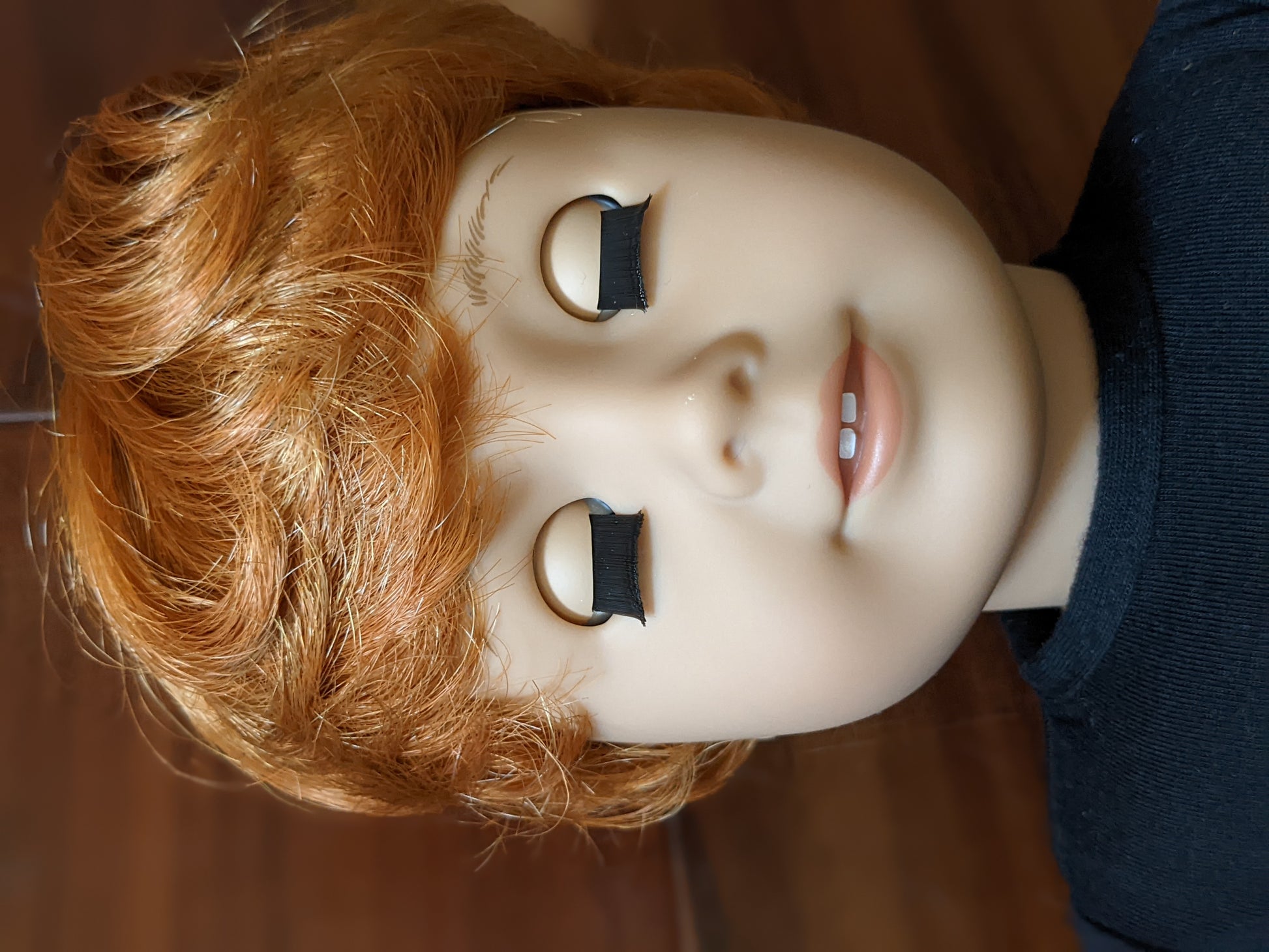 This one of a kind OOAK custom American Girl doll was created with a brand new Truly Me doll, a red wig, and brown eyes. He may have some minor shine marks from handling. He comes with the outfit pictured.