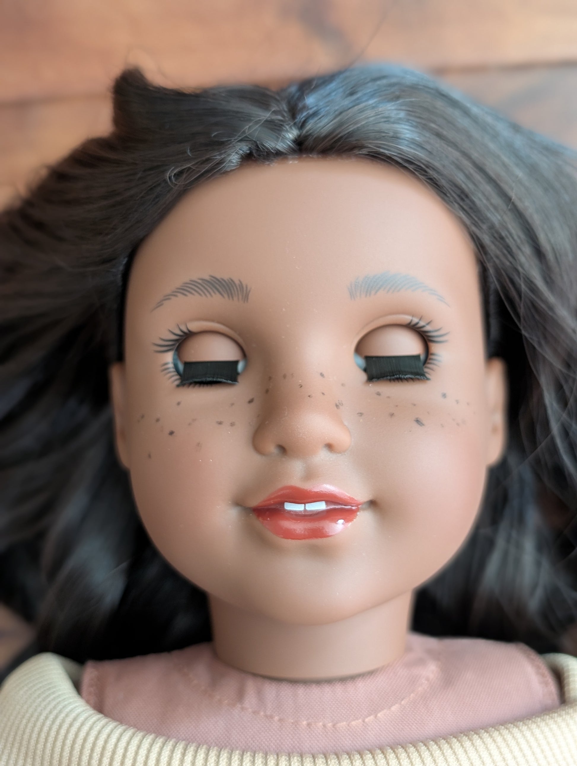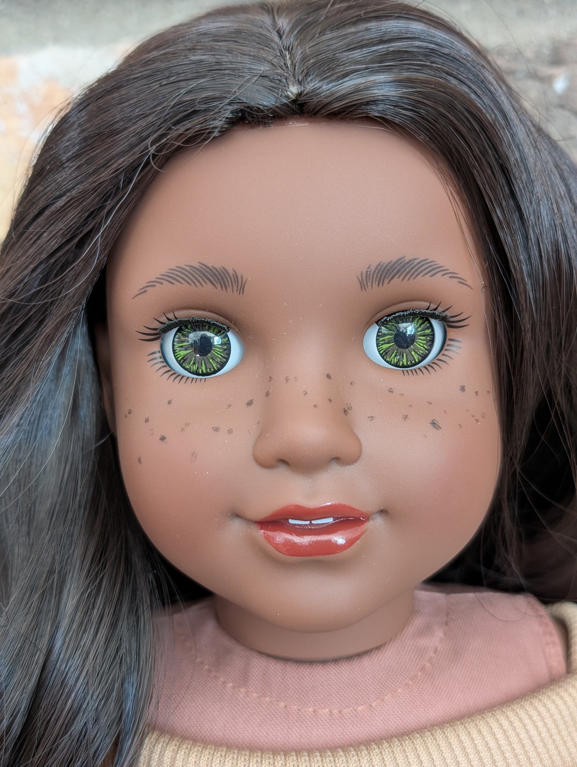 Toccara - dark brown hair, hazel eyes, darkest skin tone, Josefina face mold, freckles