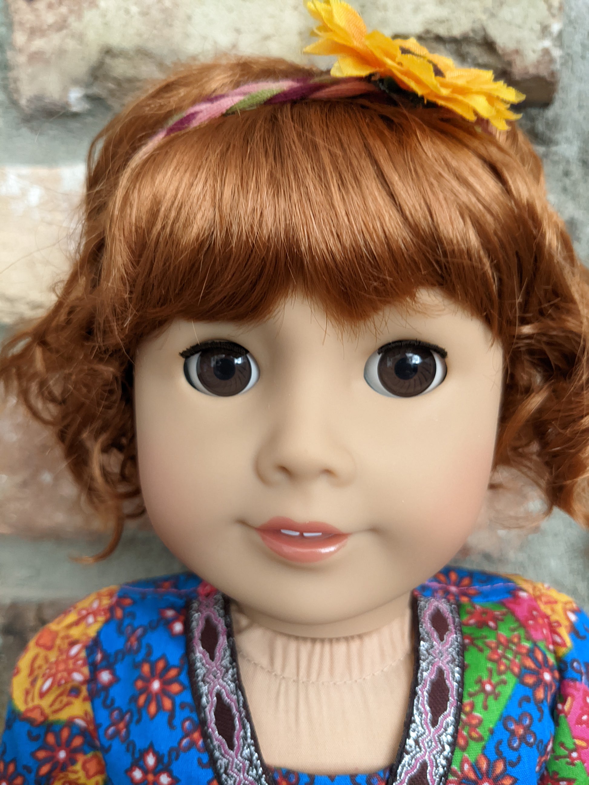 This one of a kind OOAK custom American Girl doll was created with a new Truly Me doll, a red wig, and brown eyes. She has lip gloss that was hand painted and sealed. She may have some minor shine marks from handling. She comes with the outfit pictured. She has a microfiber cloth body with permapanties and a tiny x on her bum.