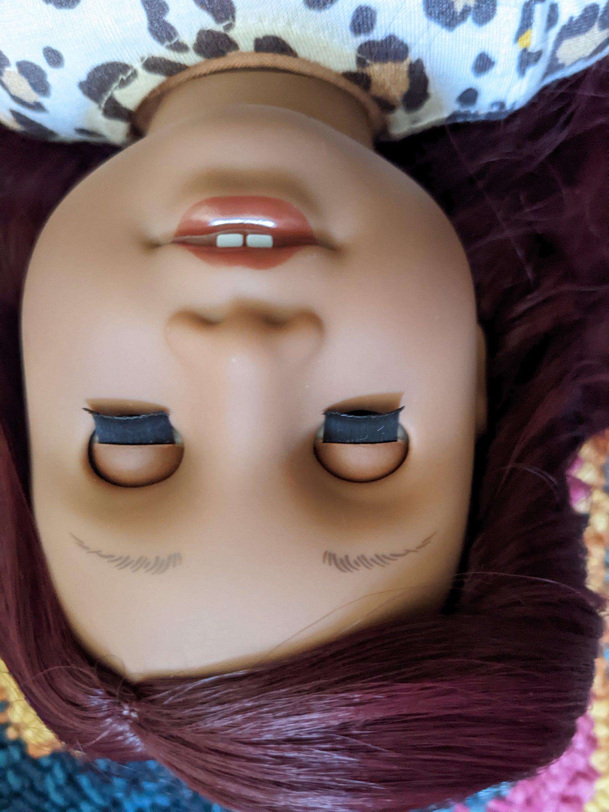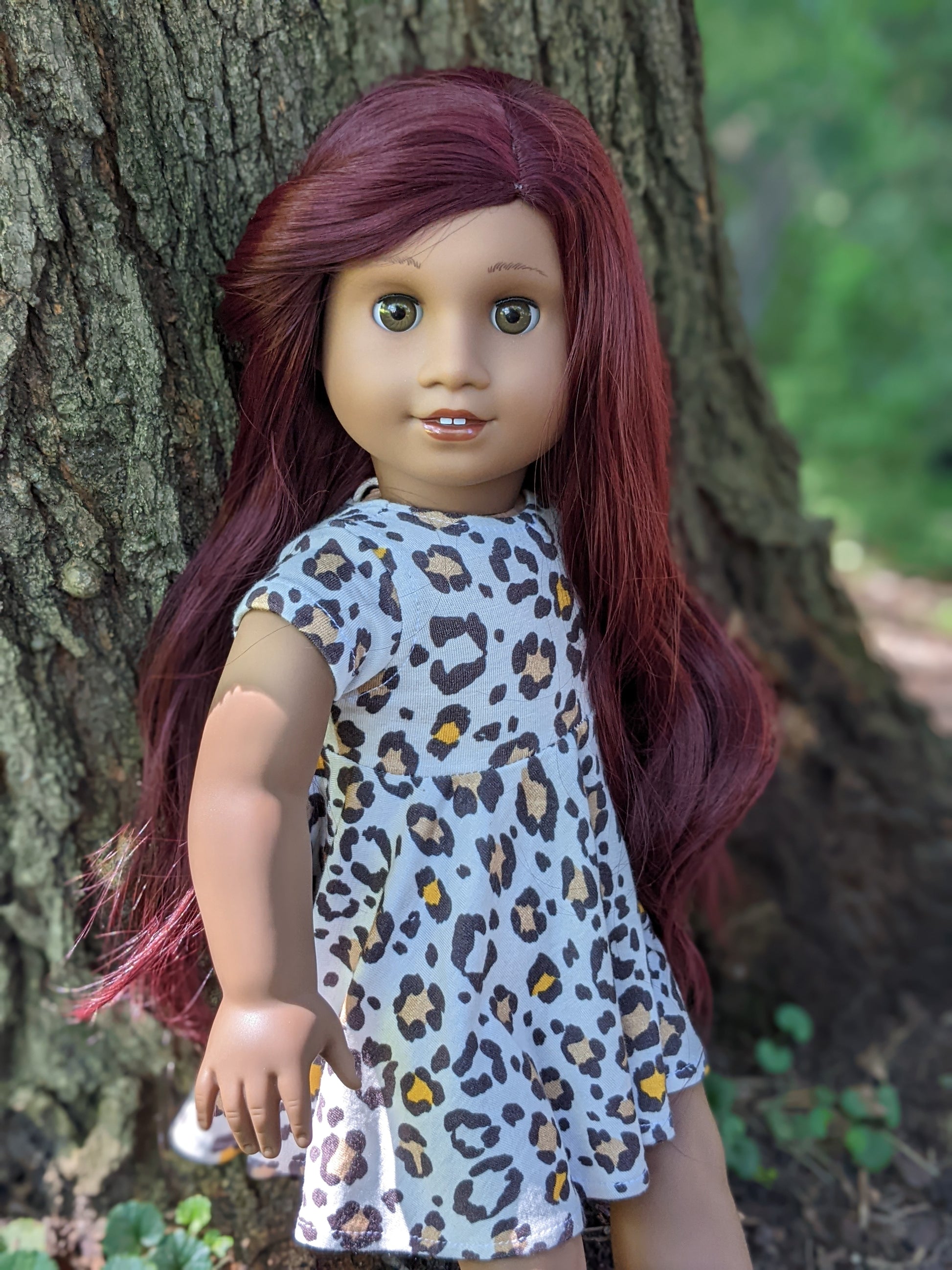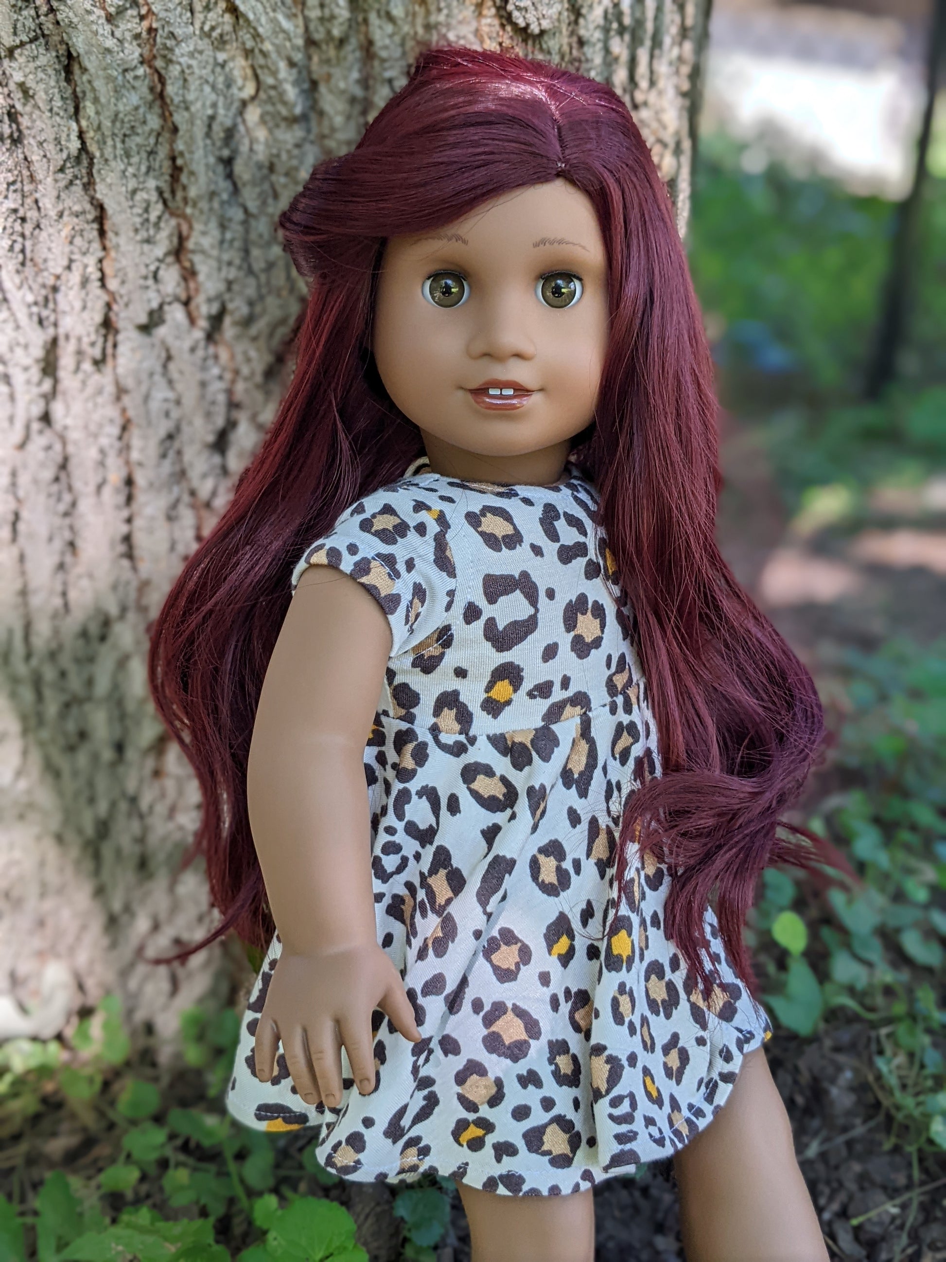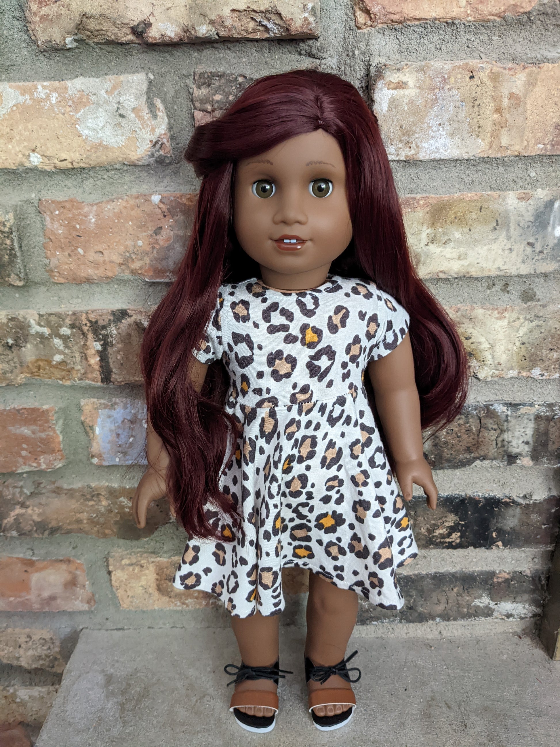 This one of a kind OOAK custom American Girl doll was created with a brand new Sparkling Ballerina doll, a burgundy wig, and amber eyes. She has lip gloss that was hand painted and sealed. She may have some minor shine marks from handling. She comes with the outfit pictured.