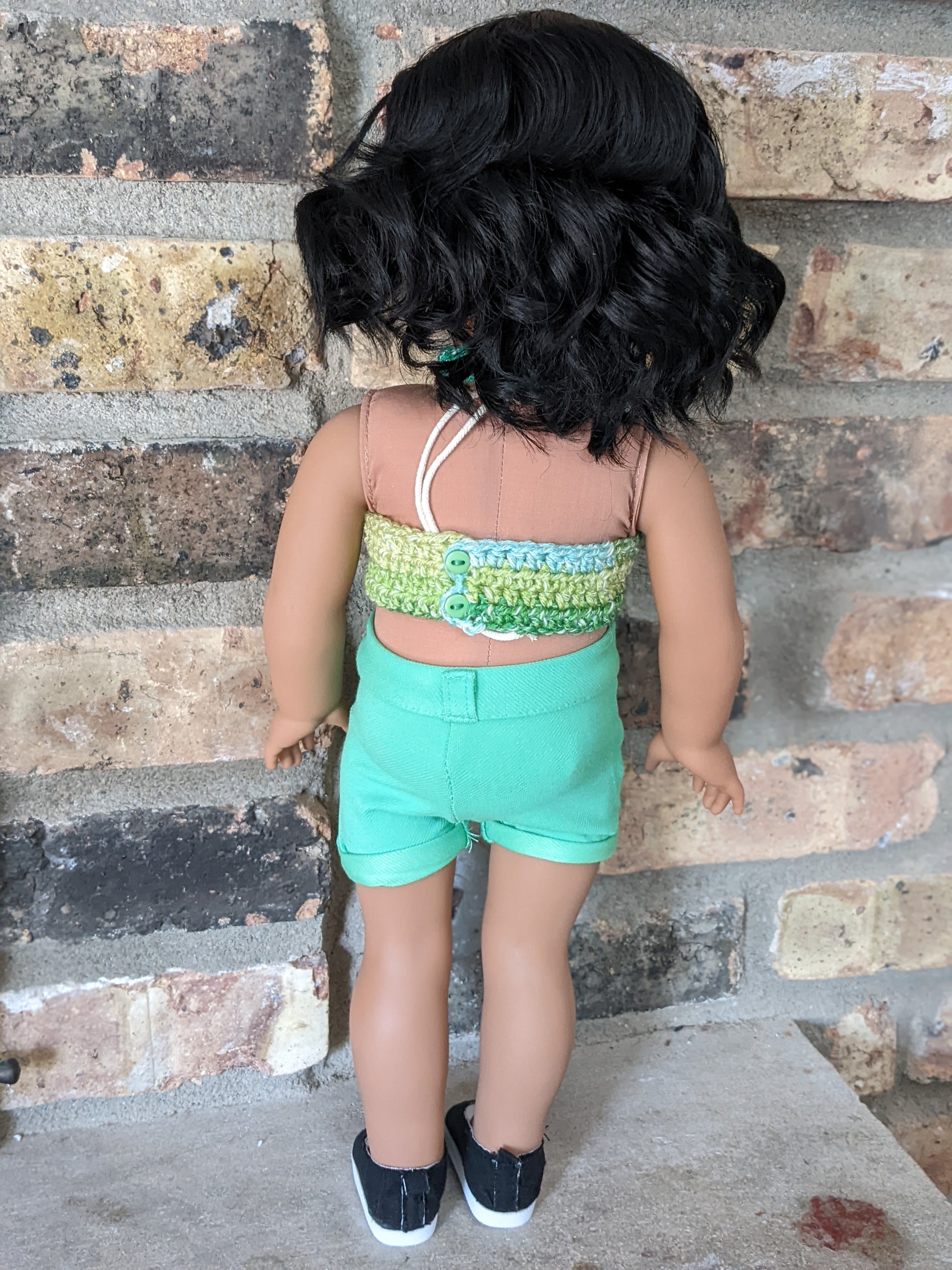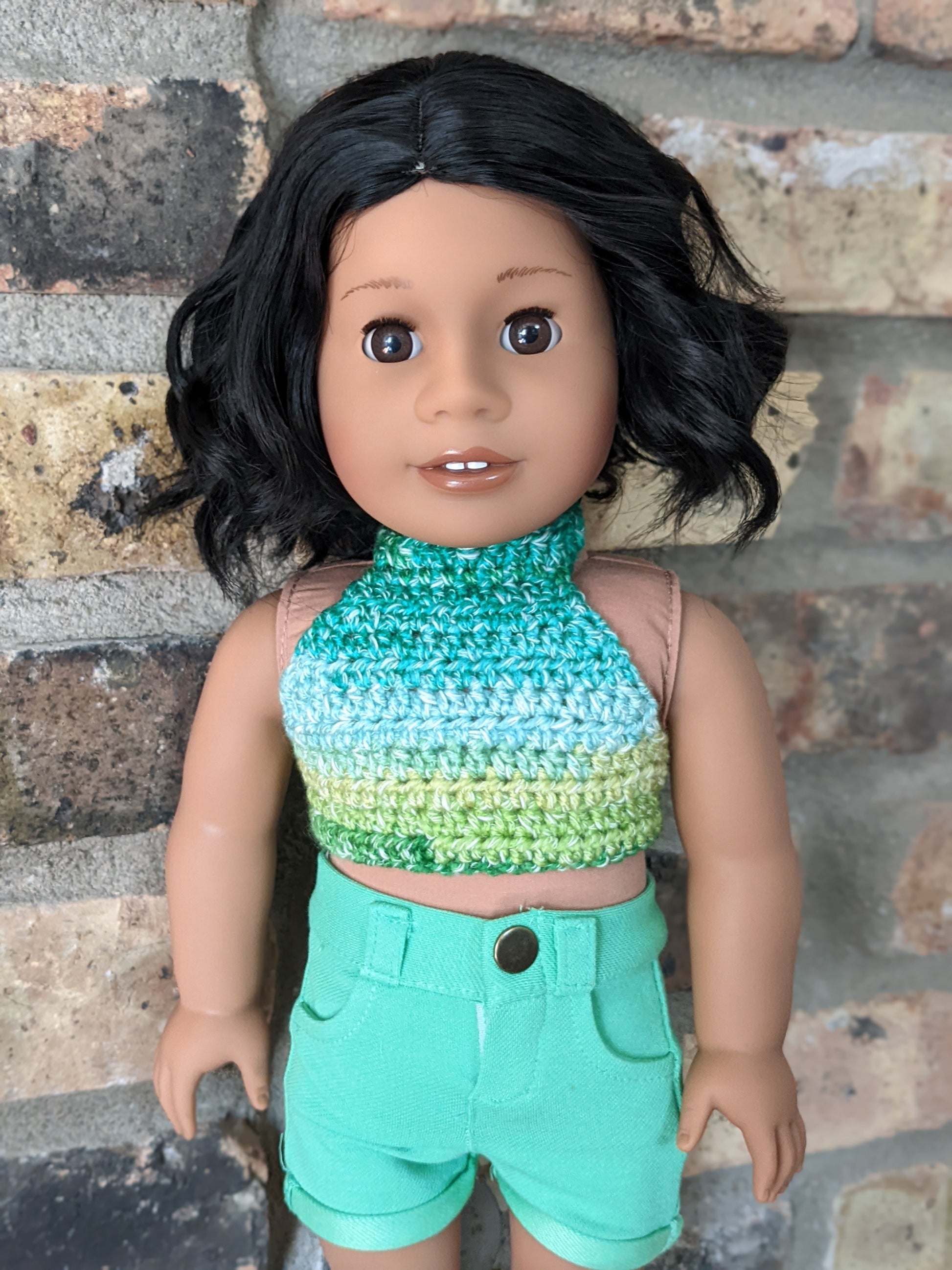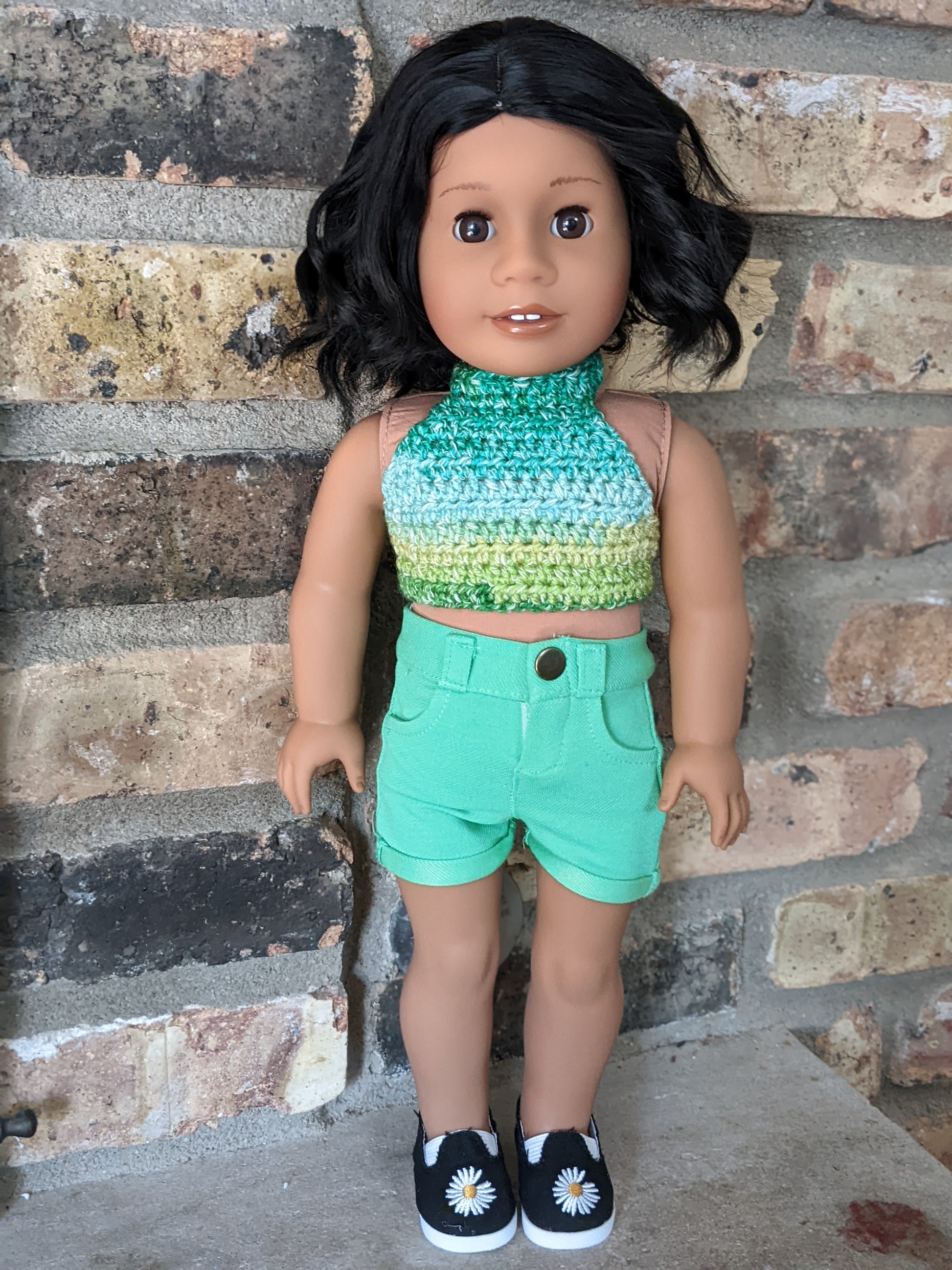 This one of a kind OOAK custom American Girl doll was created with a brand new Truly Me doll, a black wig, and brown eyes. She has lip gloss that was hand painted and sealed. She may have some minor shine marks from handling. She comes with the outfit pictured. She has the microfiber cloth body with permapanties and a tiny x on her bum. Her ears are pierced with normal earrings and the tiny diamond look studs are included.
