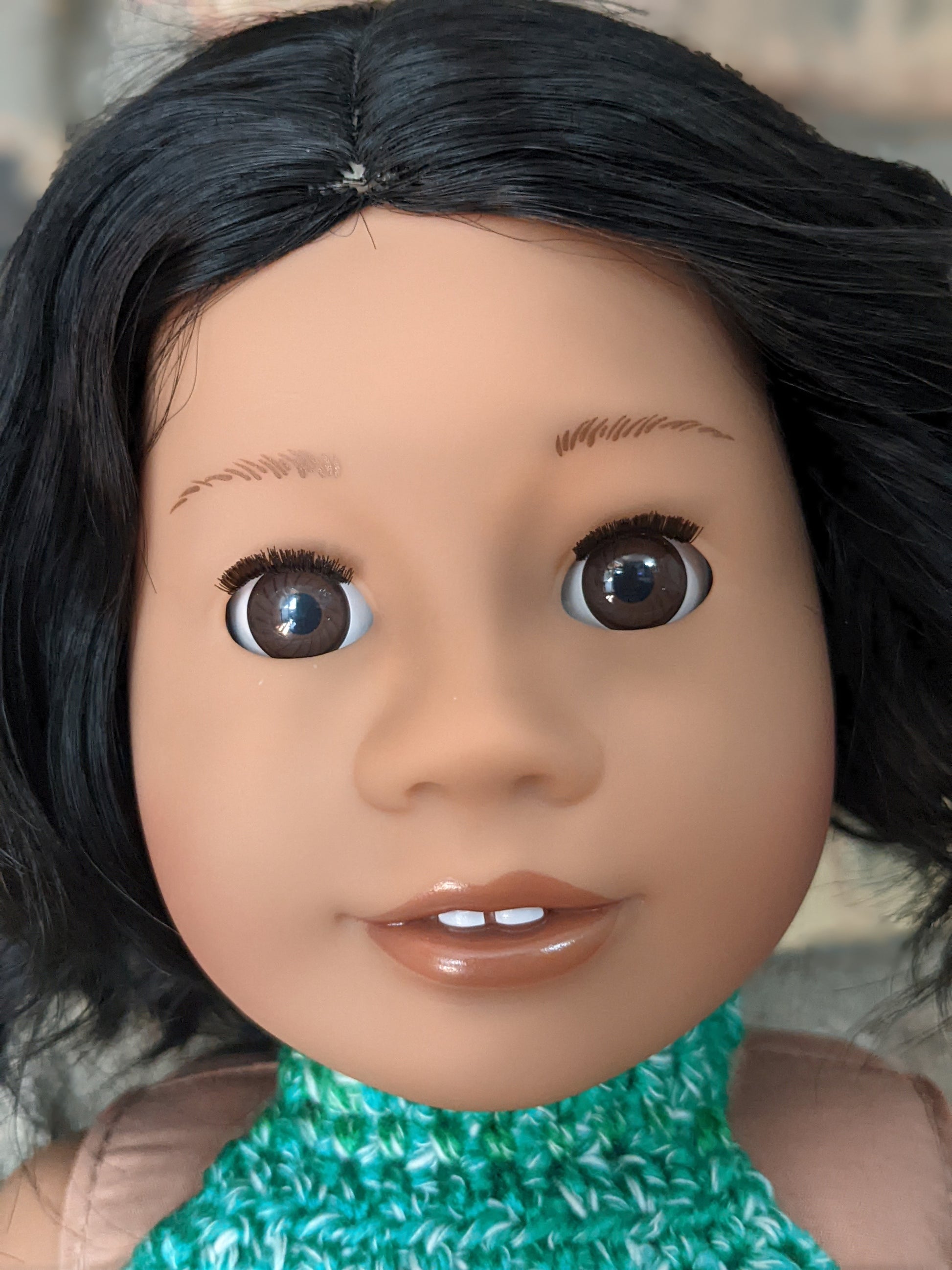 Veronika - black hair, brown eyes, medium skin tone, Addy face mold